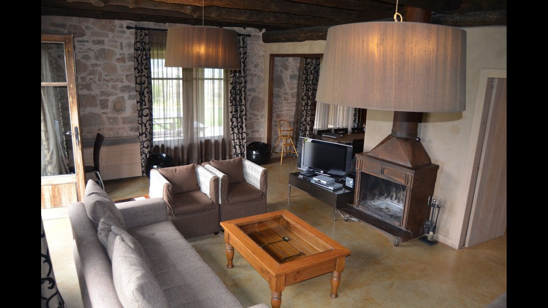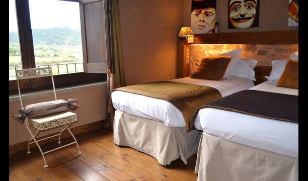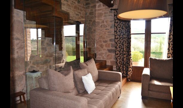 Los grandes ventanales del comedor permiten admirar las vistas de los Pirineos Catalanes, el amanecer y el atardecer, mientras se disfruta de comidas y largas conversaciones. Especialmente fuera de temporada, esto es muy apreciado por nuestros huéspedes. El salón dispone de chimenea, TV LCD con antena parabólica, ordenador con acceso a Internet vía ADSL, PS2 y zona WIFI.