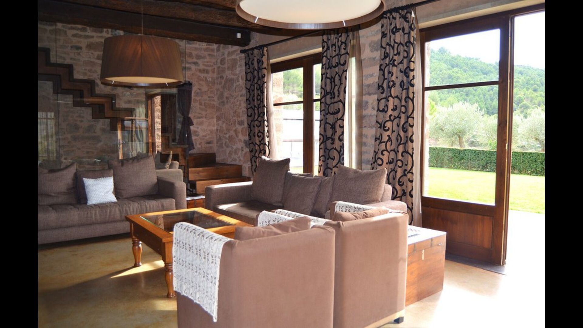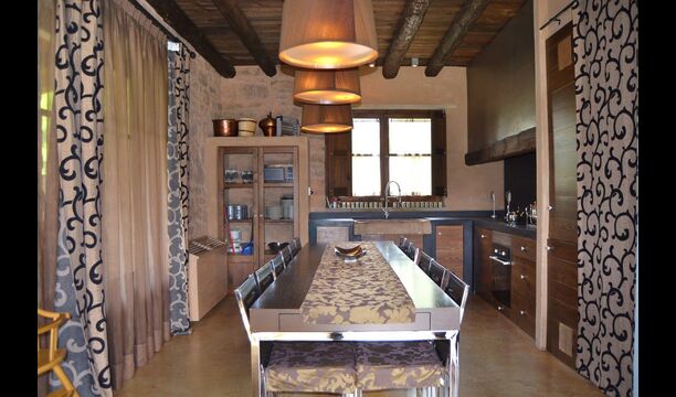 Mas Baron de Abilla es una casa ideal si aprecia alta calidad de vida en el interior y vistas panorámicas tranquilas desde el gran jardín privado sin vecinos. Es casi sorprendente que la distancia desde este apacible paraje sea de menos de 2 km. del centro del animado pueblo de Cardona, con el casco antiguo más bonito y una plaza muy bonita con restaurantes y bares.