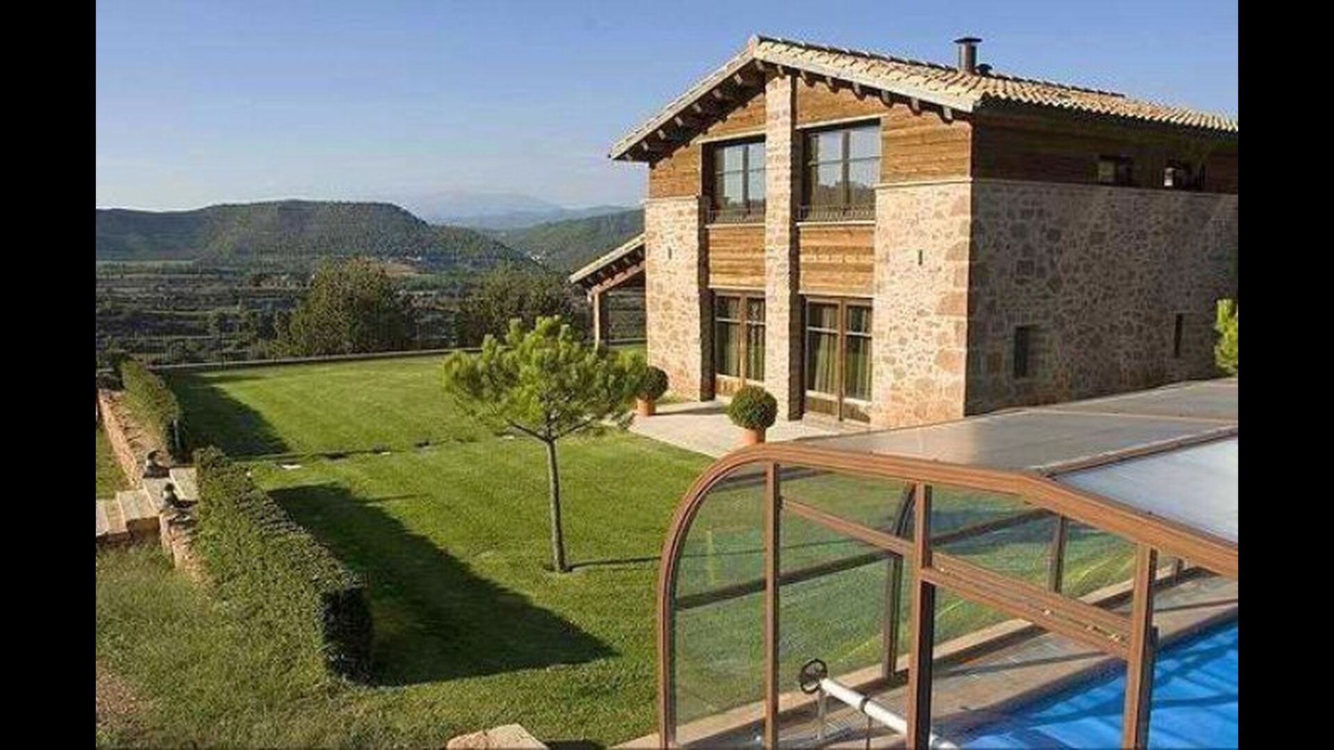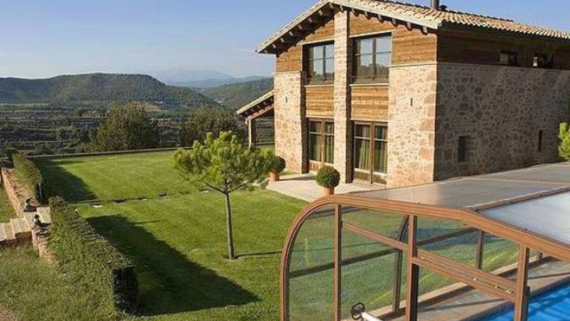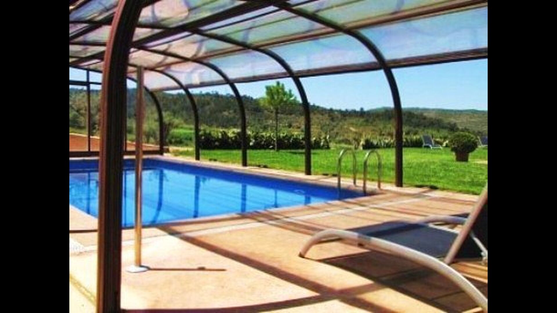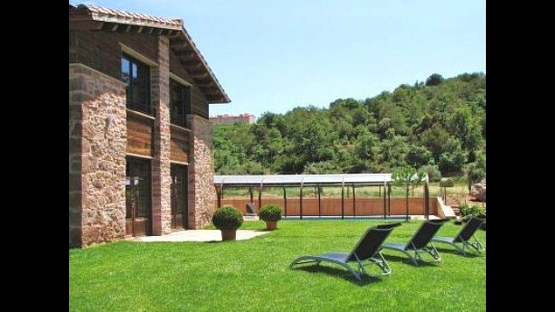 Afuera hay un comedor de verano, bajo el porche. En el jardín está la piscina que está cubierta y climatizada en invierno y en verano con la cubierta quitada. La barbacoa de piedra le permitirá freír algunos de los chuletones de la zona y otros productos cárnicos - pruebe por ejemplo sus “butifarras”, butifarra catalana de muy buena calidad o quizás unas chuletas de cordero.
