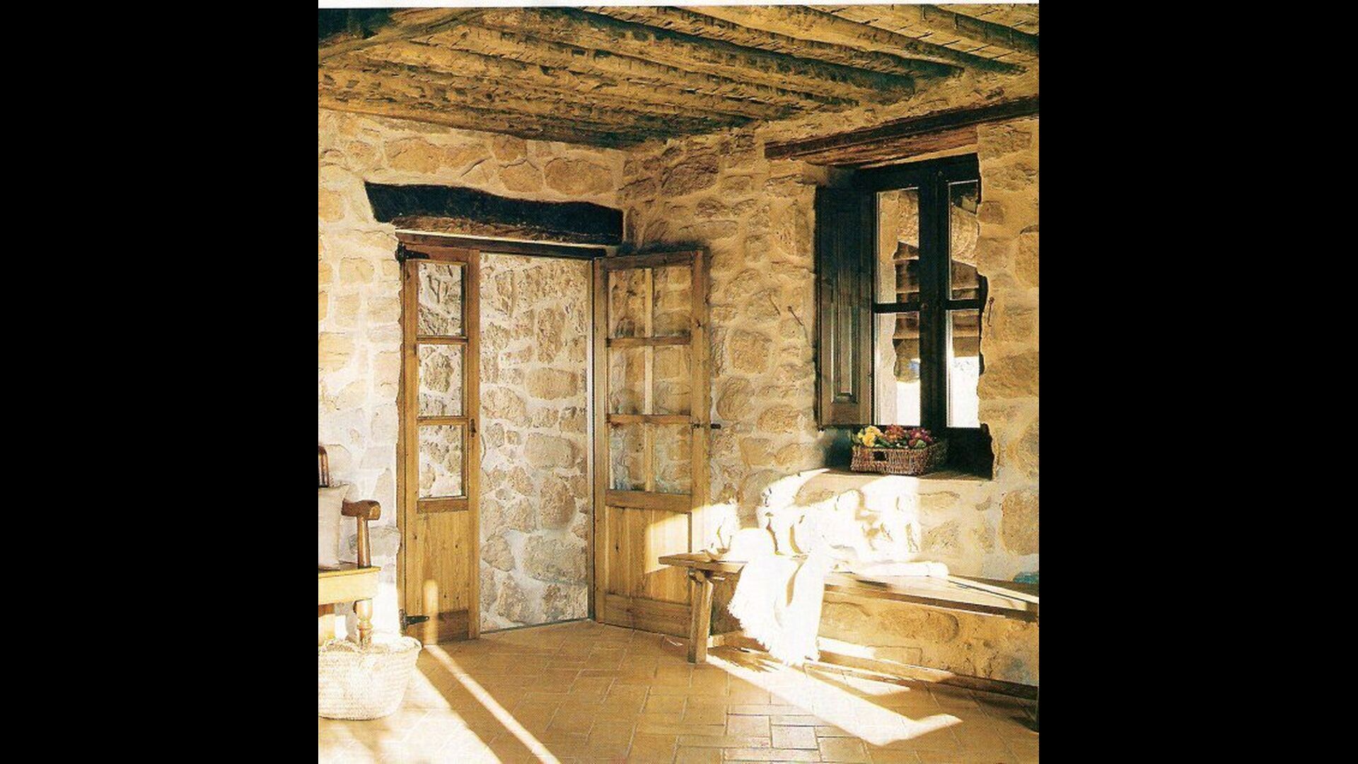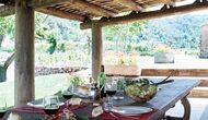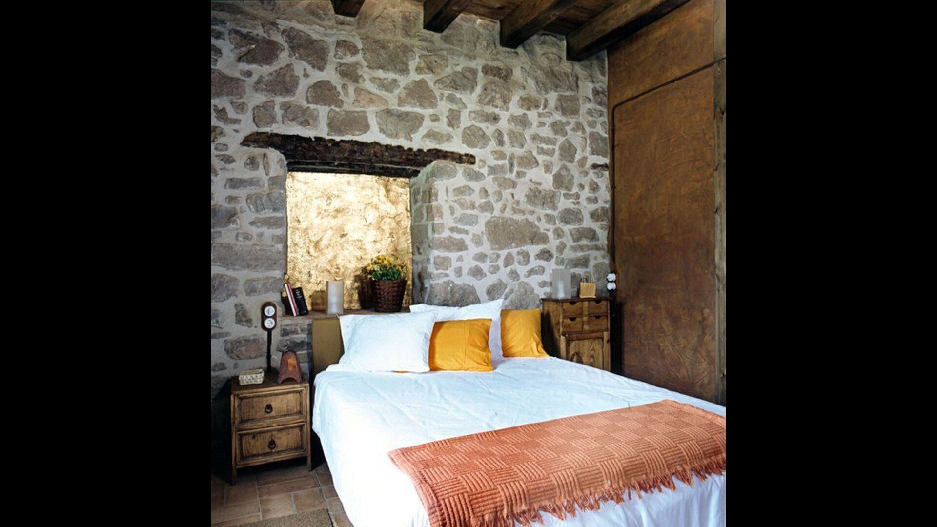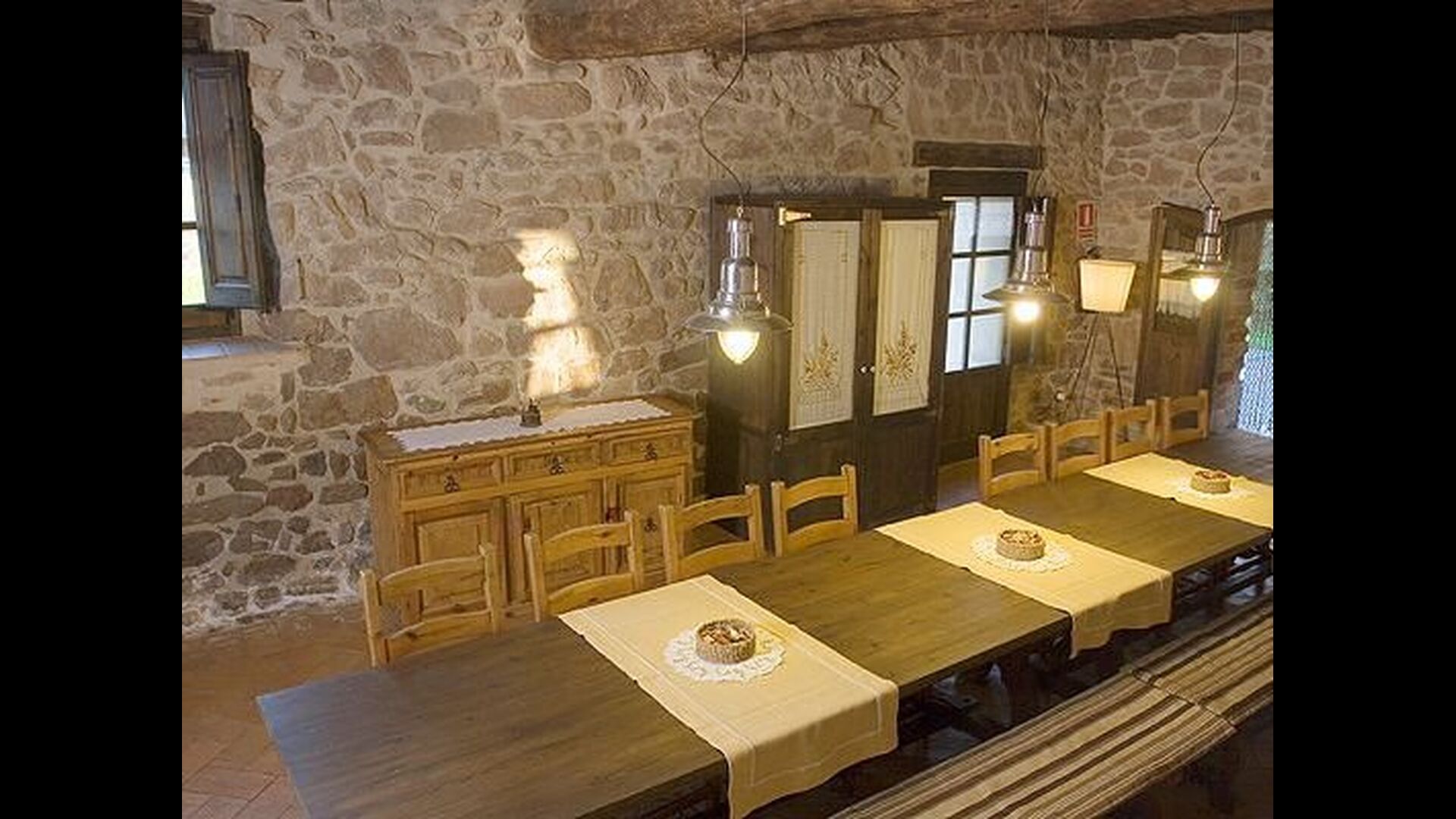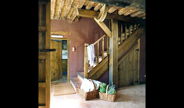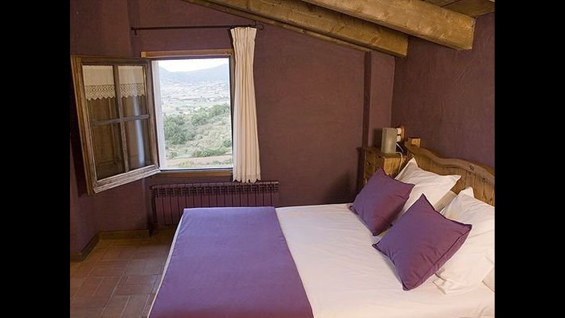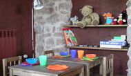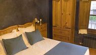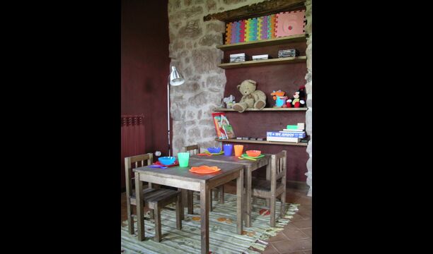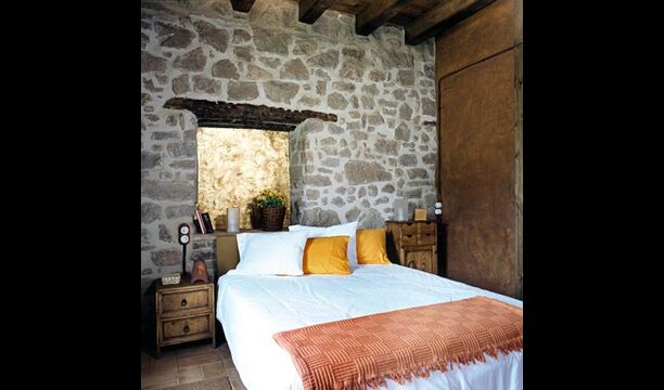 Pilar y su marido han reformado la casa con la intención de recuperar lo auténtico y genuino que escondía bajo las sucesivas obras que se habían ido realizando a lo largo del tiempo. Así, mordiendo los muros, hizo la piedra original, encontrada en tierra y tejas de barro en el techo nos esforzamos por dejar a la vista todas las vigas de madera. El resultado es una rústica y moderna a la vez, combinando muebles antiguos y paredes de piedra con paredes pintadas de colores como la cocina azul cielo, una sala de estar escarlata y dormitorios en colores frescos como el verde y el violeta. Para su comodidad, todas las habitaciones cuentan con baño privado.