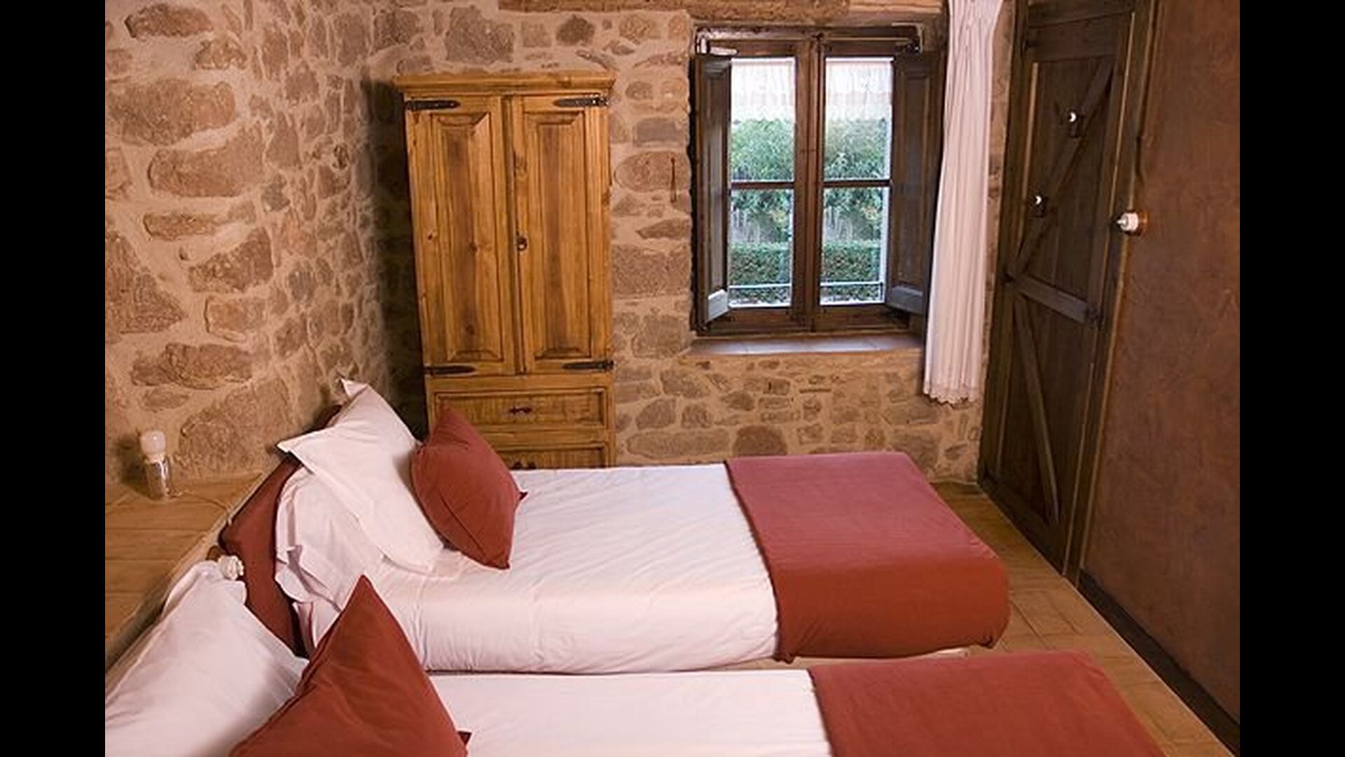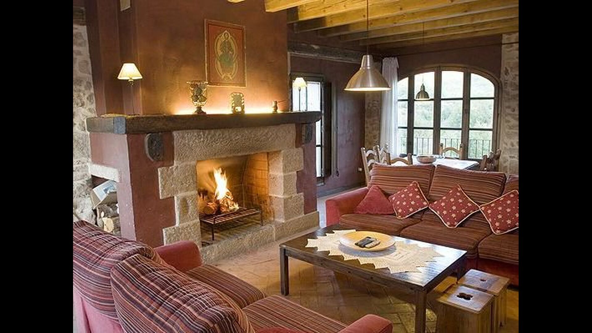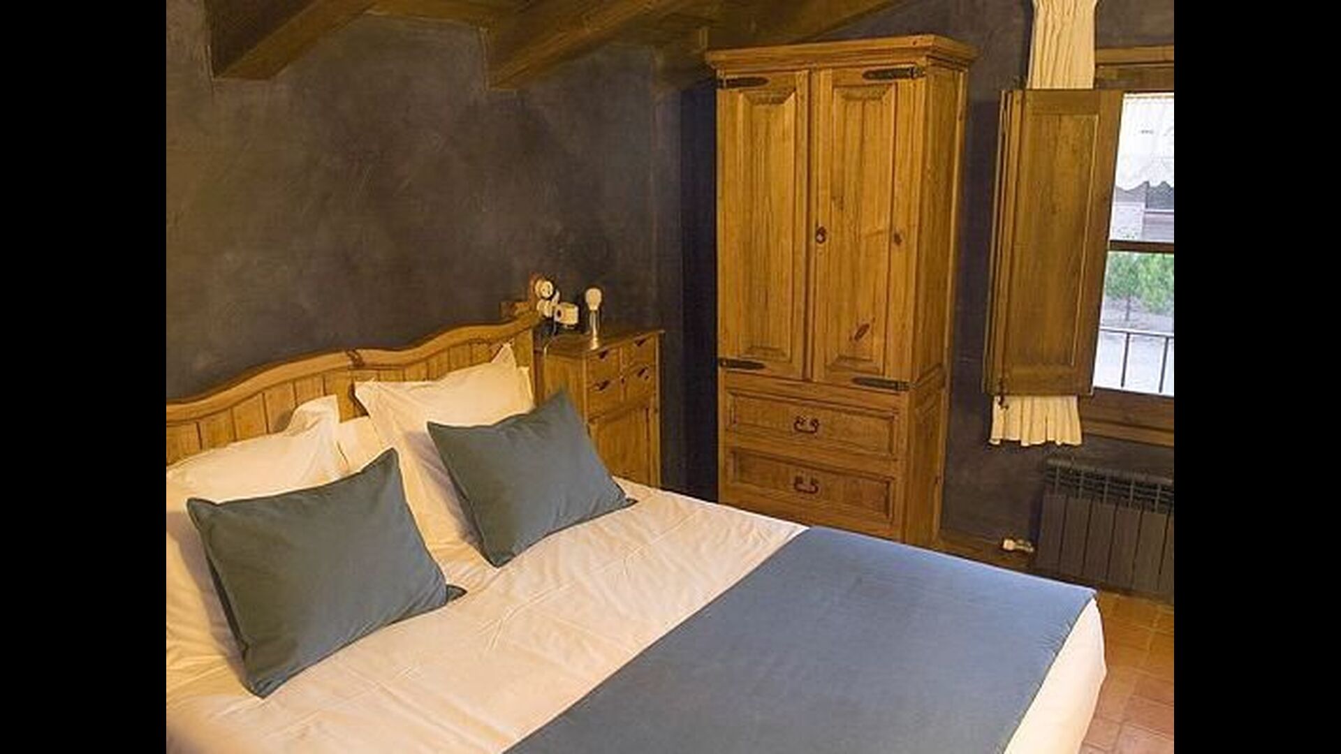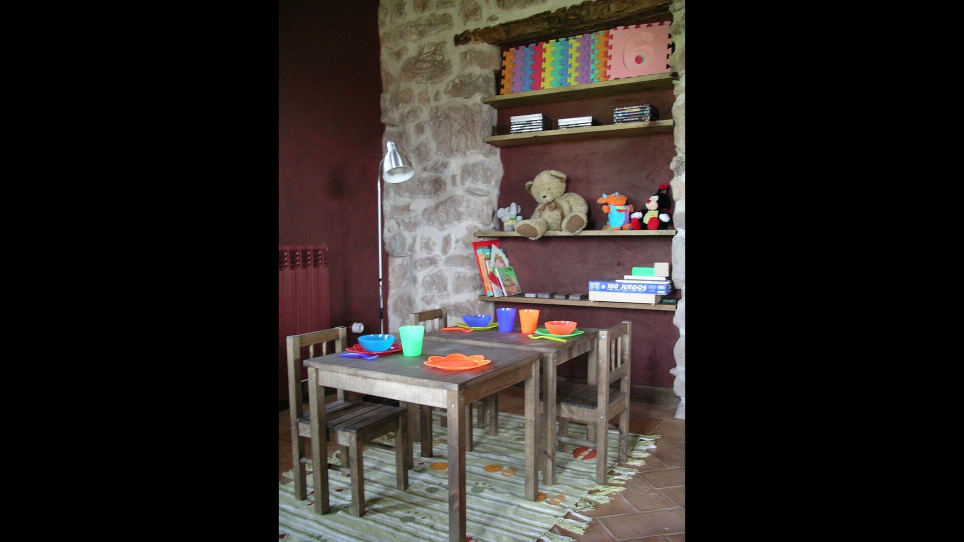 Pilar y su marido han reformado la casa con la intención de recuperar lo auténtico y genuino que escondía bajo las sucesivas obras que se habían ido realizando a lo largo del tiempo. Así, mordiendo los muros, hizo la piedra original, encontrada en tierra y tejas de barro en el techo nos esforzamos por dejar a la vista todas las vigas de madera. El resultado es una rústica y moderna a la vez, combinando muebles antiguos y paredes de piedra con paredes pintadas de colores como la cocina azul cielo, una sala de estar escarlata y dormitorios en colores frescos como el verde y el violeta. Para su comodidad, todas las habitaciones cuentan con baño privado.