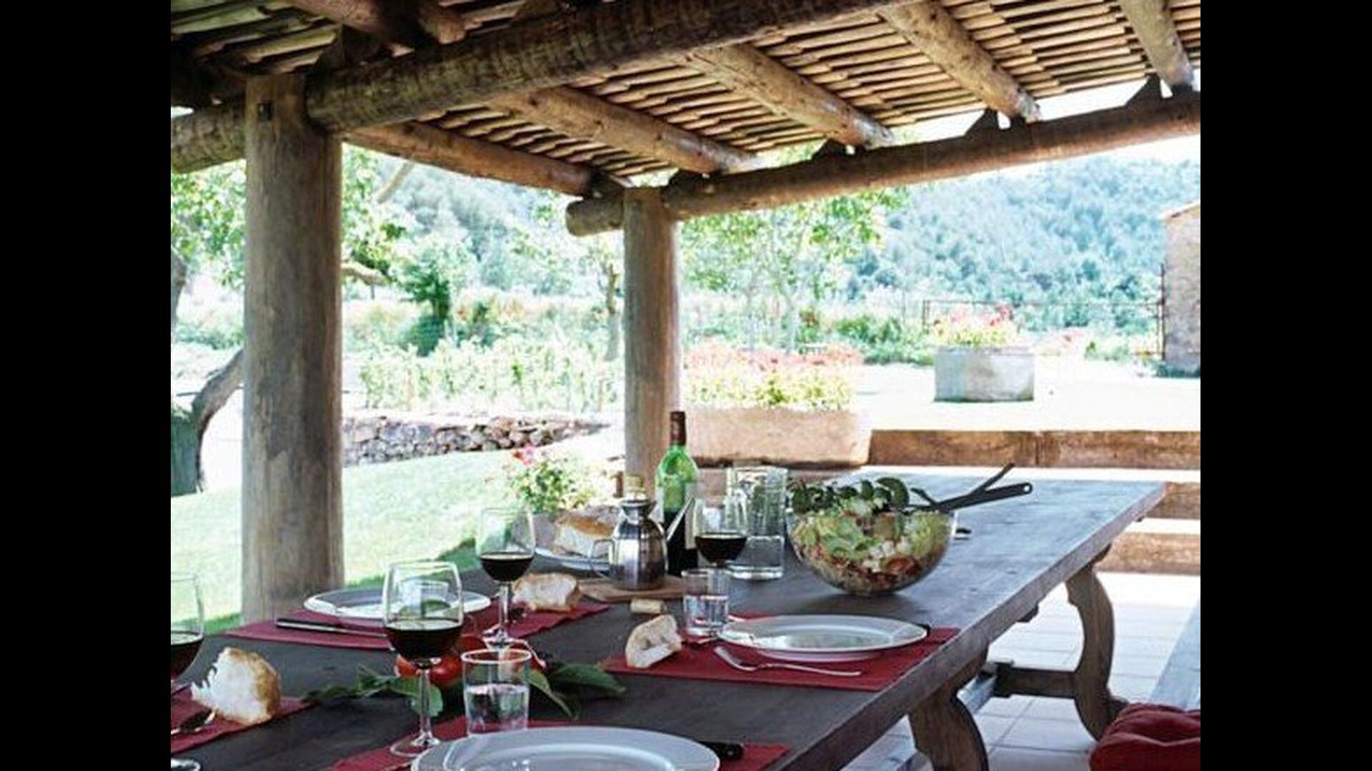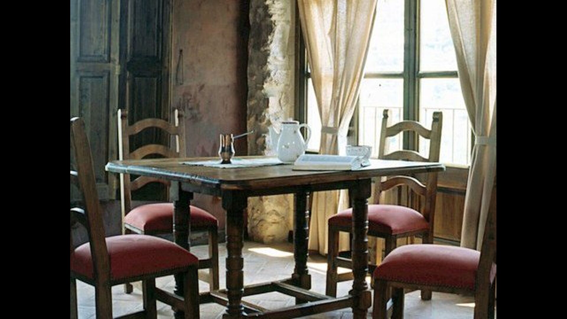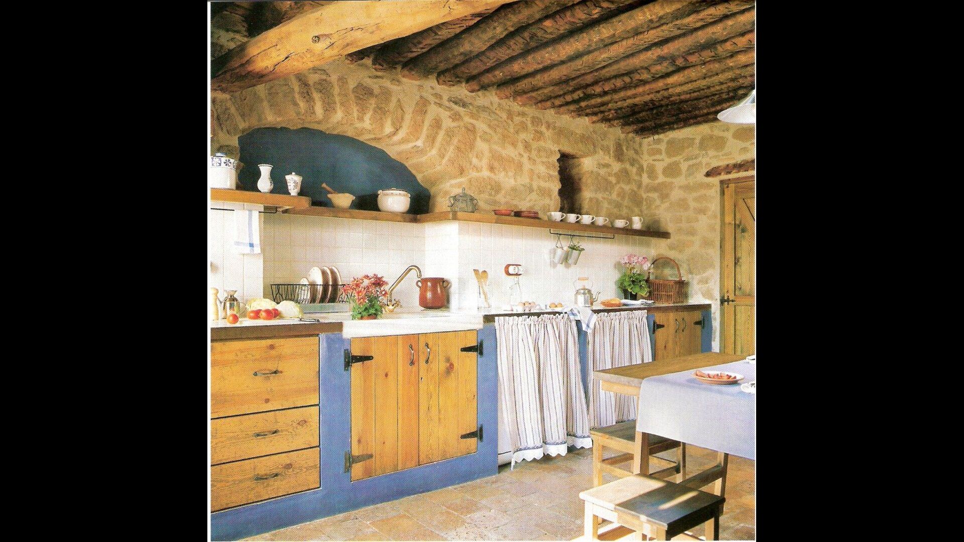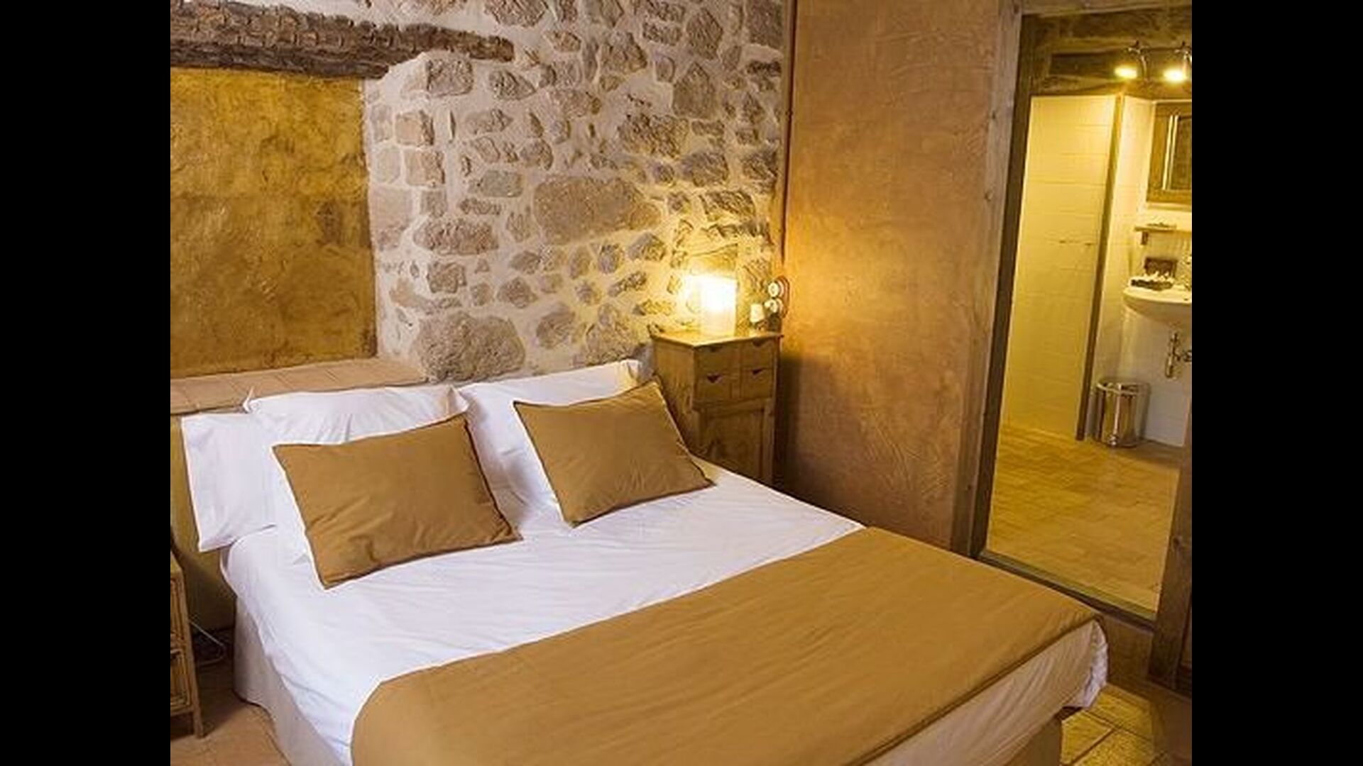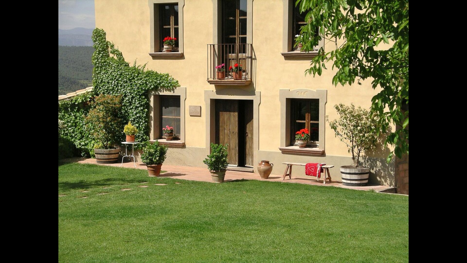 Pilar y su marido han reformado la casa con la intención de recuperar lo auténtico y genuino que escondía bajo las sucesivas obras que se habían ido realizando a lo largo del tiempo. Así, mordiendo los muros, hizo la piedra original, encontrada en tierra y tejas de barro en el techo nos esforzamos por dejar a la vista todas las vigas de madera. El resultado es una rústica y moderna a la vez, combinando muebles antiguos y paredes de piedra con paredes pintadas de colores como la cocina azul cielo, una sala de estar escarlata y dormitorios en colores frescos como el verde y el violeta. Para su comodidad, todas las habitaciones cuentan con baño privado.