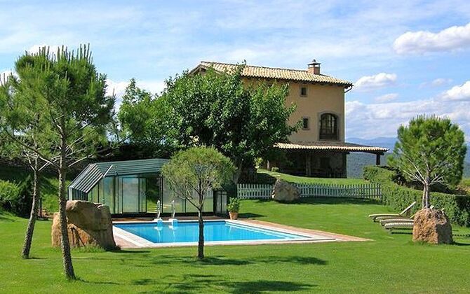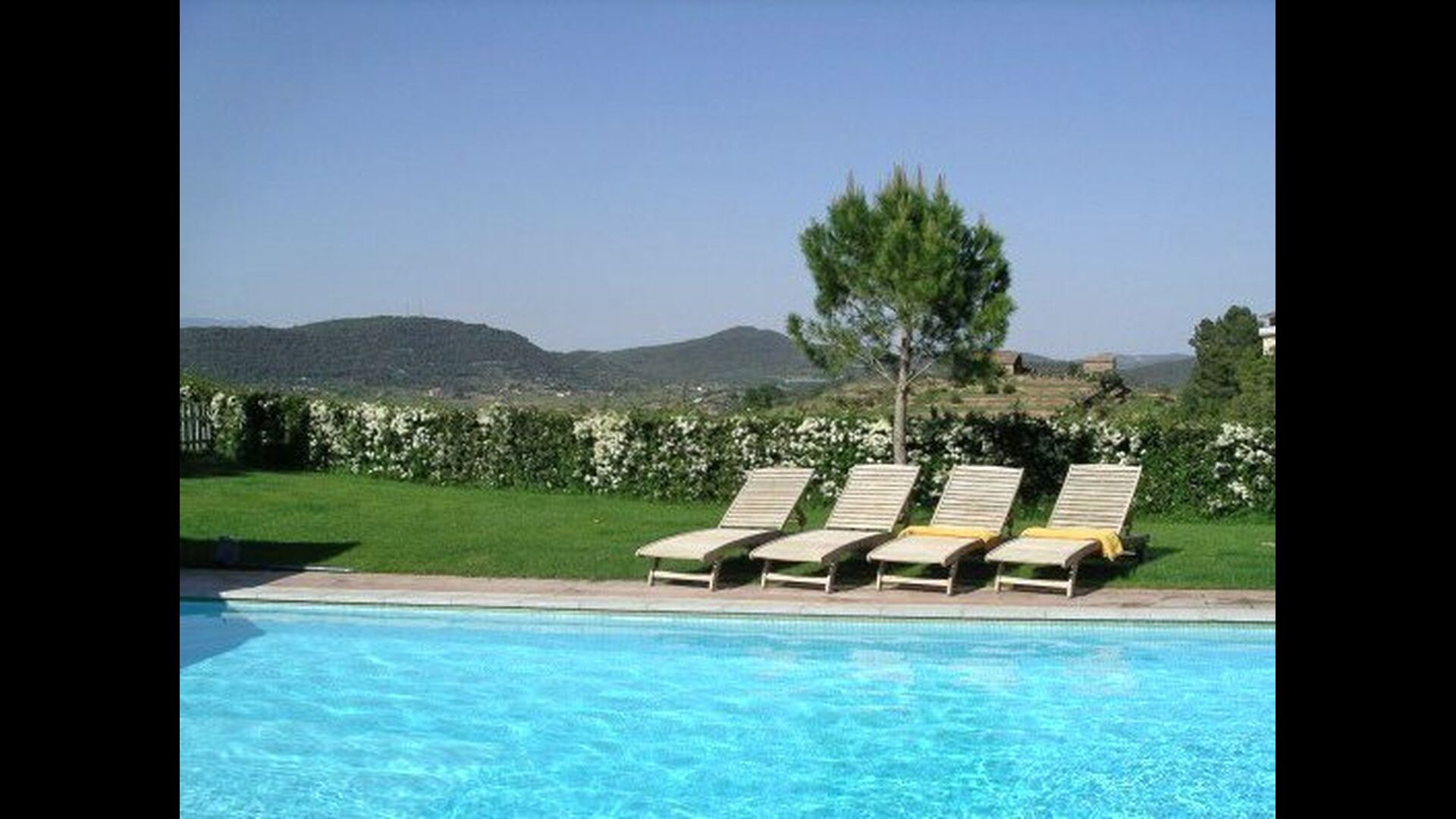 Mas Tor Blanc es una casa de vacaciones rústica pero moderna de 350m2 con 3.000m2 de jardines y gran piscina de 10 x 5 metros y Spa. La ubicación en la cima de una pequeña colina ofrece impresionantes vistas de las montañas, huertos y campos de regadío cercanos.