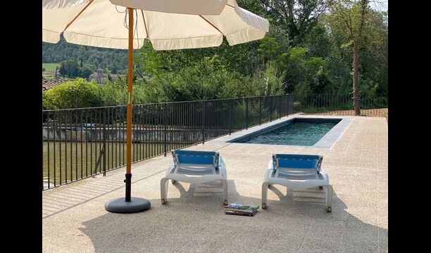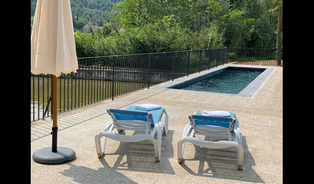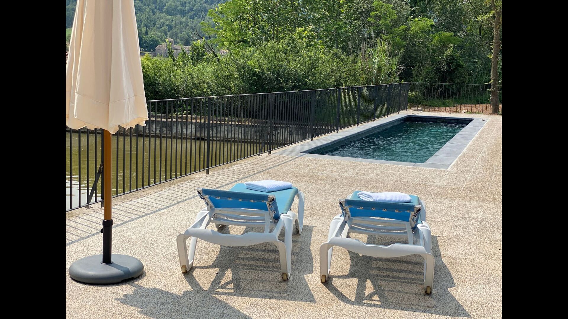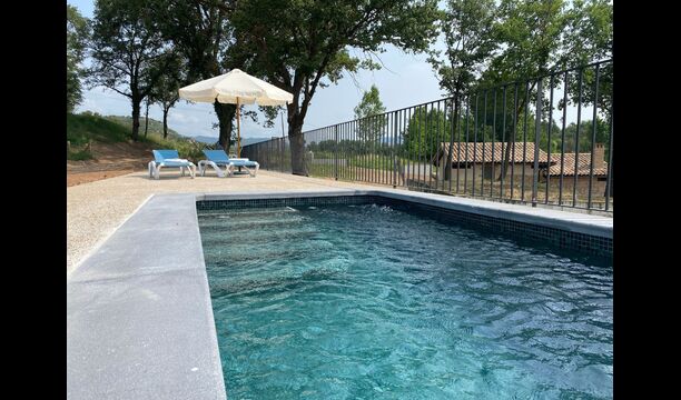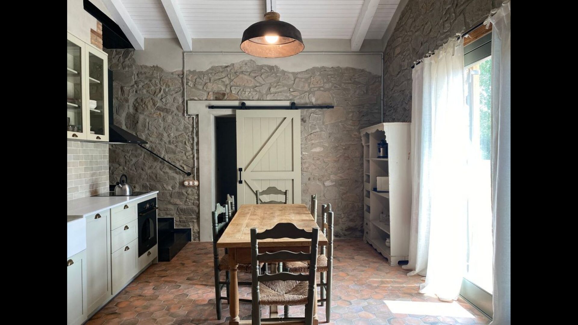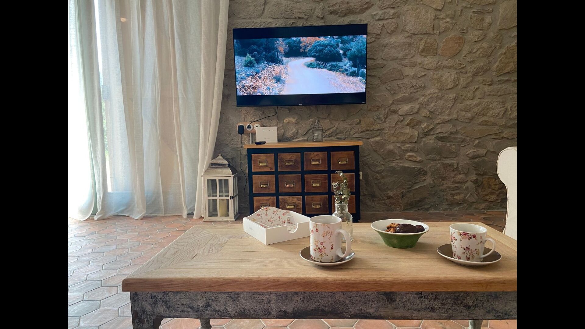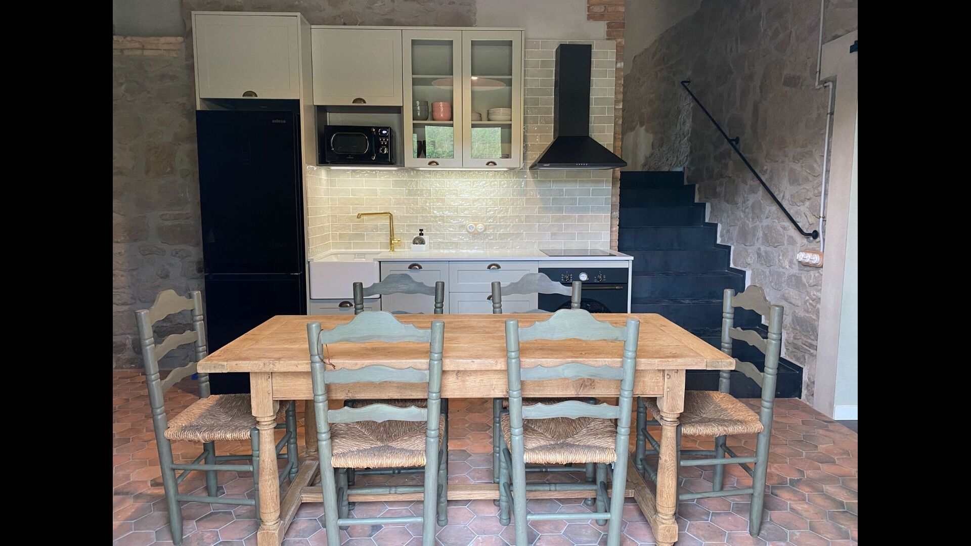 La preciosa terraza está conectada directamente con la casa y le proporciona tanto lugares soleados para disfrutar del verano catalán como lugares con sombra, si hace demasiado calor durante el día. Y luego, por supuesto, podrá refrescarse en la piscina privada. La terraza dispone también de tumbonas, mesa de terraza y barbacoa.