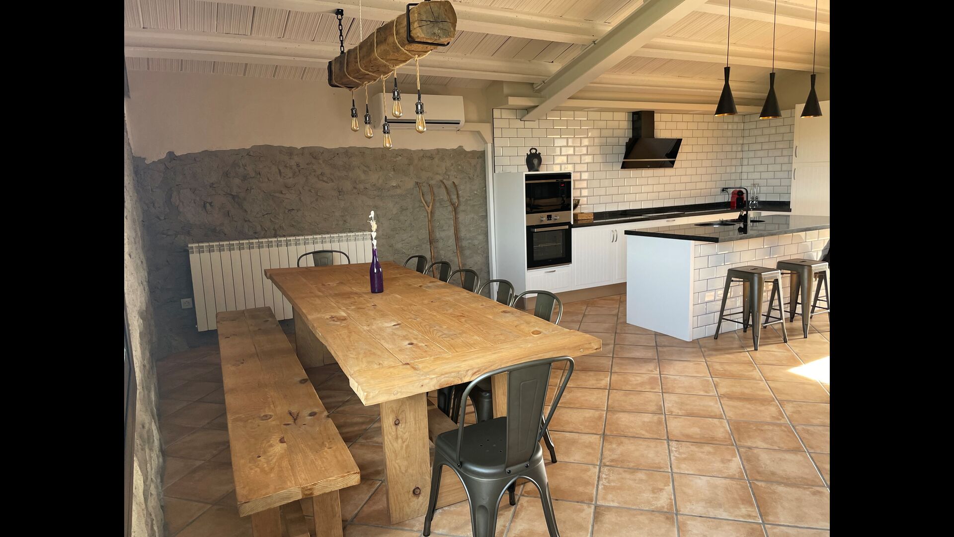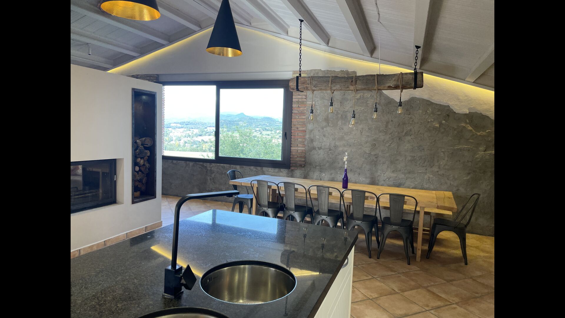 Desde aquí hay acceso directo al jardín y una zona de terraza aquellos con una mesa grande para comer en el exteriorer . A la izquierda también se organizan zona de barbacoa & un anillo; de , s & un anillo; Puede asar a la parrilla mientras disfruta de la vista del valle, y m & un anillo; una copa de vino local.