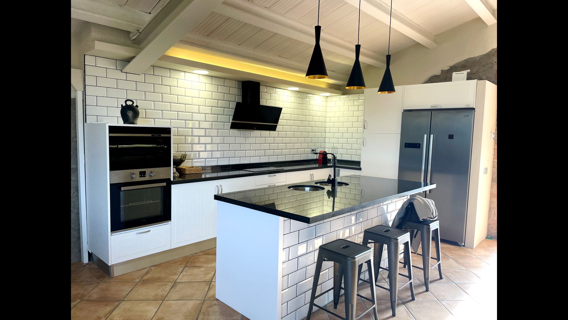 • La cocina está bien equipada con vitrocerámica, horno, nevera, congelador, nespresso, etc.