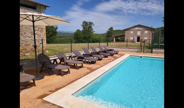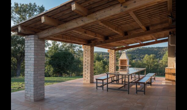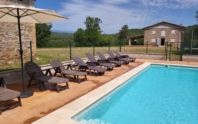 Alójese en un hermoso entorno sin vecinos en la clásica casa de piedra caliza catalana para 12+2 personas. Disfrute de la vista de las montañas boscosas, o camine hasta la riera, el pequeño río que se abre paso a través del paisaje justo debajo de la casa y, dependiendo del clima, incluso le brinda hermosas piscinas pequeñas para nadar y también un pequeño cascada.
