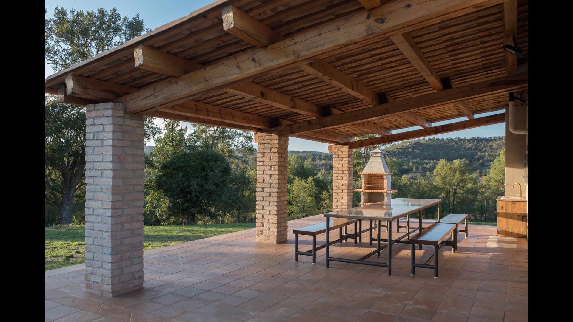 Sin embargo, en el verano, es probable que permanezca principalmente afuera, y aquí puede disfrutar de la vida en la hermosa terraza cubierta con barbacoa, y desde donde puede vigilar fácilmente la piscina (que también está cercada para mayor seguridad) .