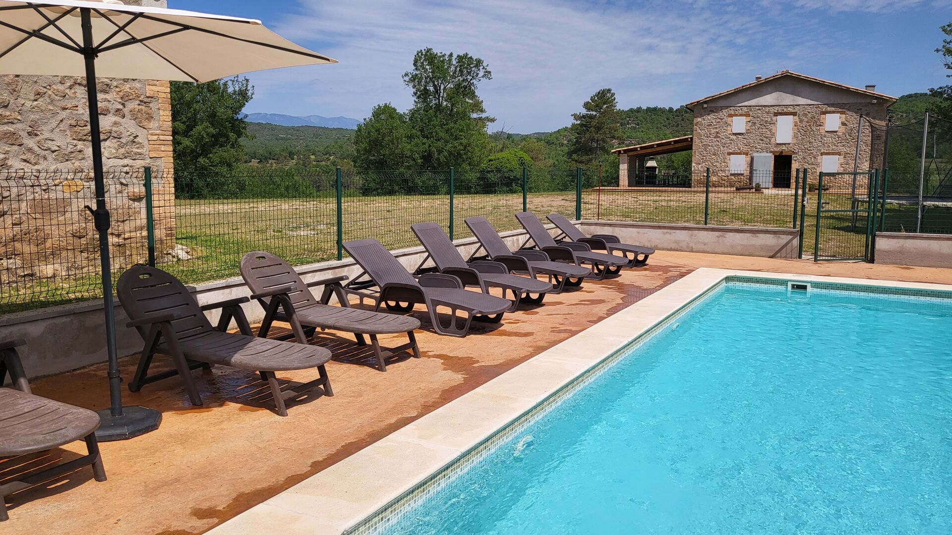 Y si el verano es seco, tienes tu propia piscina privada, siempre llena de agua, que mantendrá a los niños ocupados junto con las muchas actividades como tenis de mesa, trampolín, portería de fútbol y arenero, y te dará un bienestar. merecido descanso a la sombra o al sol como prefieras con bebida fría de la nevera.