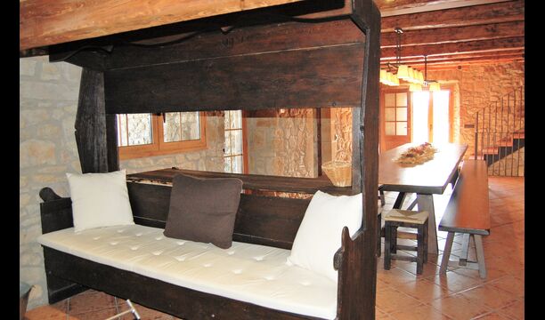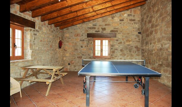 La capacidad de la casa es para 15 o 16 personas. Dispone de 8 habitaciones con baño privado: hay 4 habitaciones de matrimonio y 4 habitaciones con camas individuales.