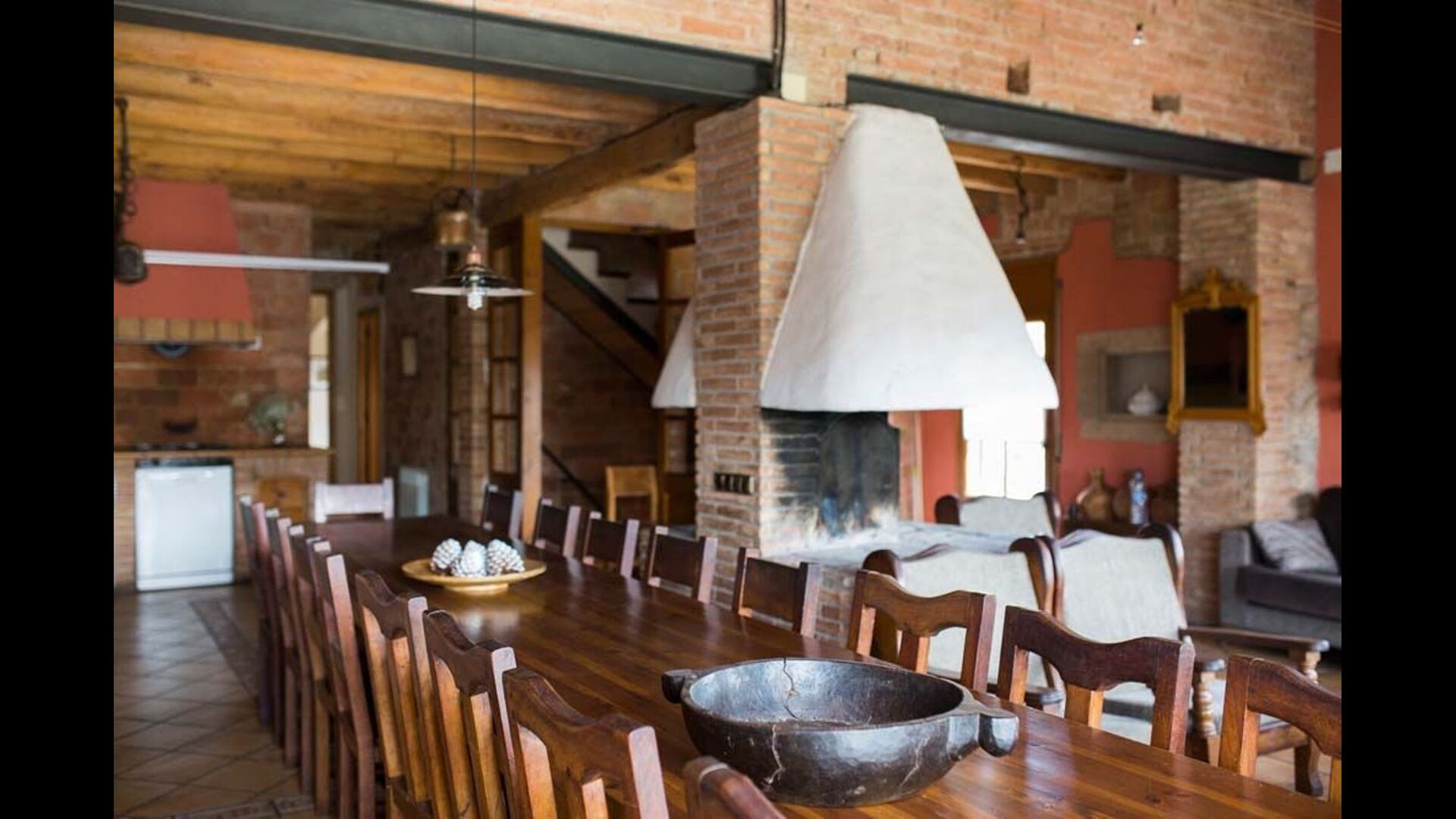 La casa principal tiene tres plantas con un total de 8 dormitorios, 7 de ellos baños en suite, y uno tiene un baño justo fuera de la habitación. En el primer piso hay una gran sala común con otra cocina totalmente equipada, mesa de comedor y sala de estar con TV.