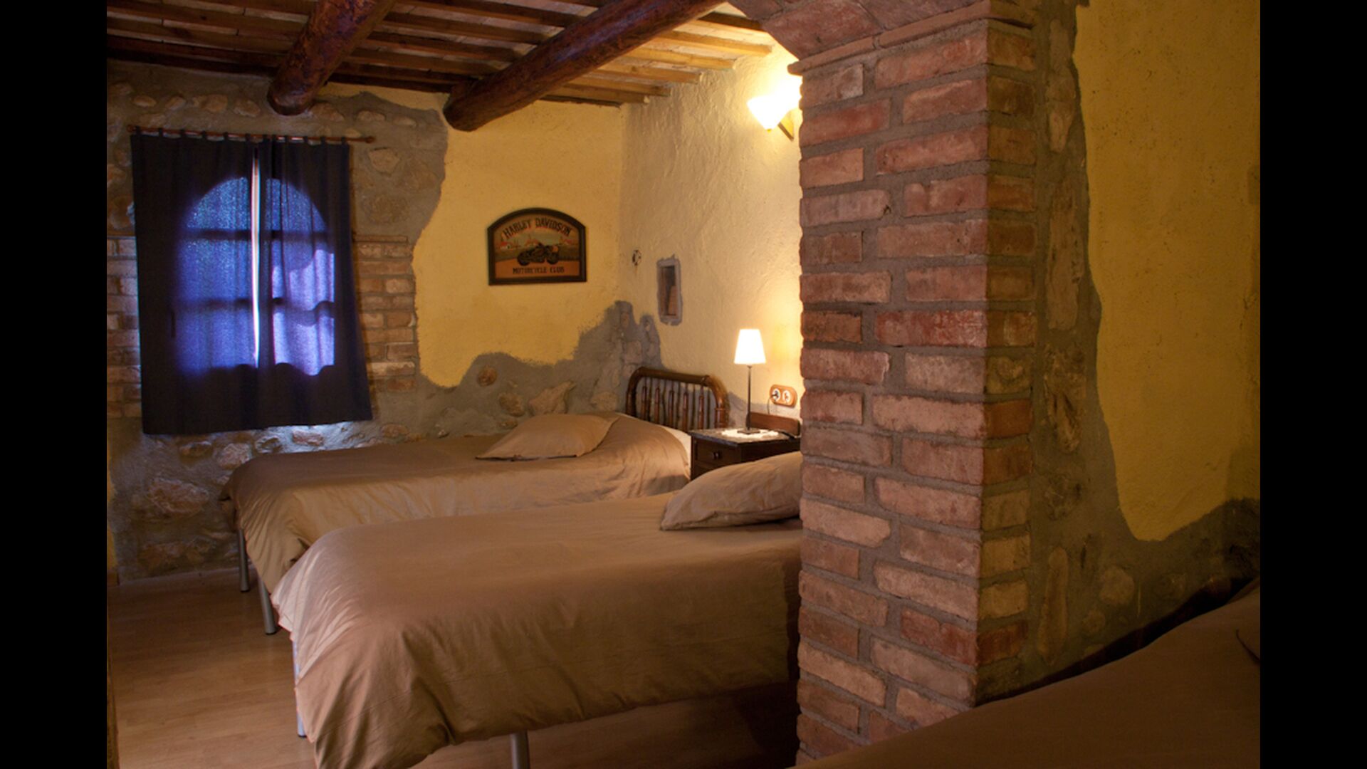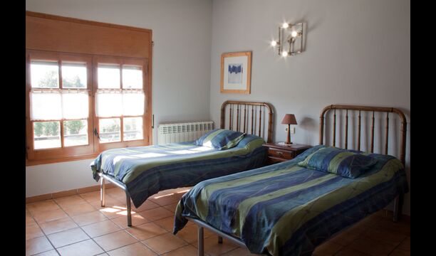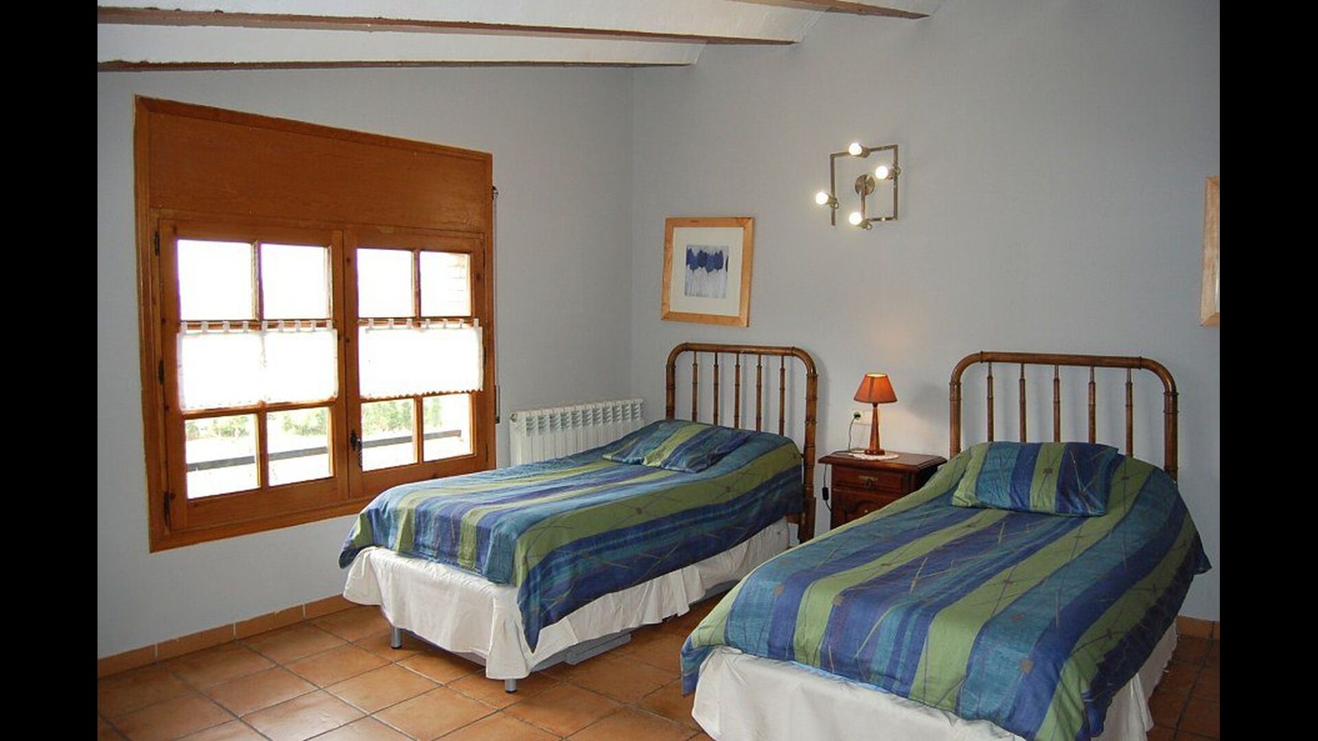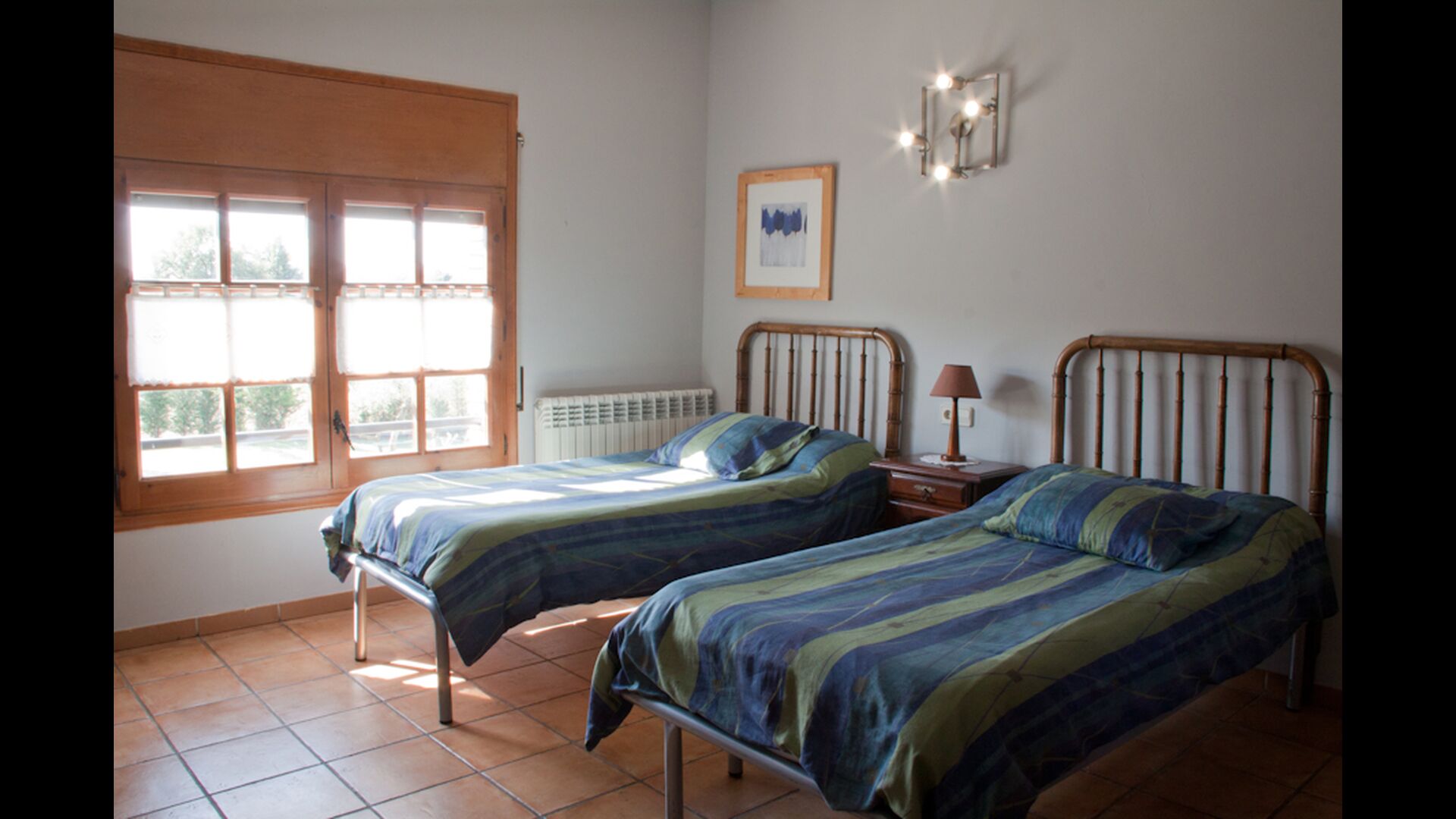 En la planta baja, a la izquierda, hay una habitación doble con cama de matrimonio, y acceso a la sala de actividades. A la derecha hay un amplio dormitorio con 4 camas individuales. En el primer piso, hay un dormitorio en cada extremo de la sala de estar. A la izquierda un dormitorio con 3 camas individuales ya la derecha una habitación doble con camas dobles. Finalmente en el segundo piso hay cuatro habitaciones dobles con camas de matrimonio.