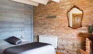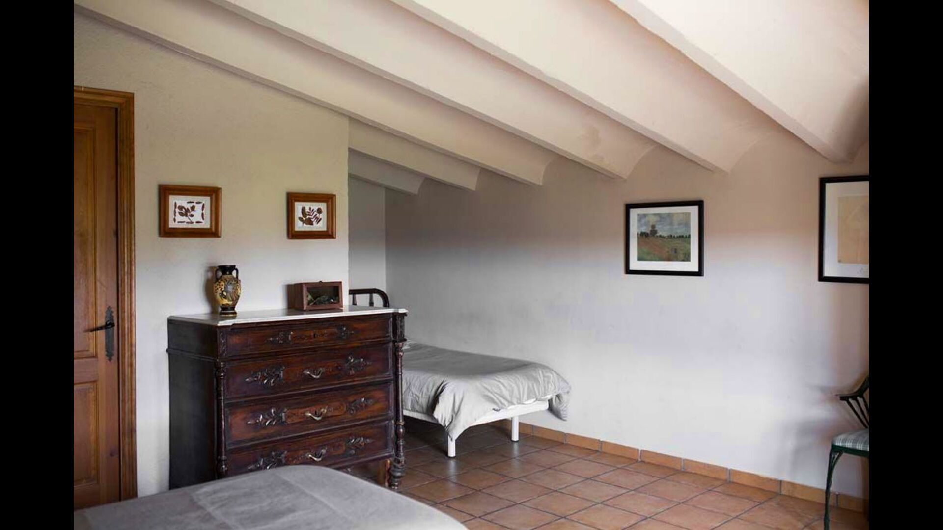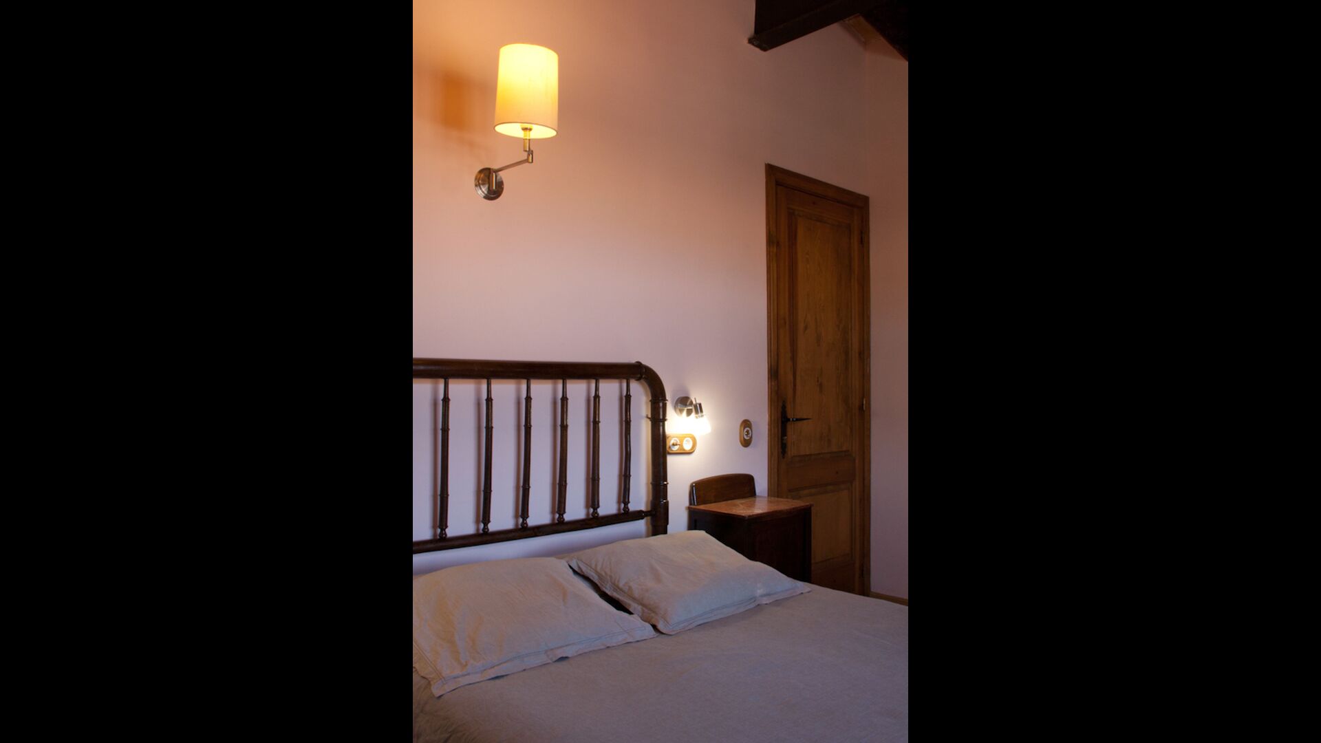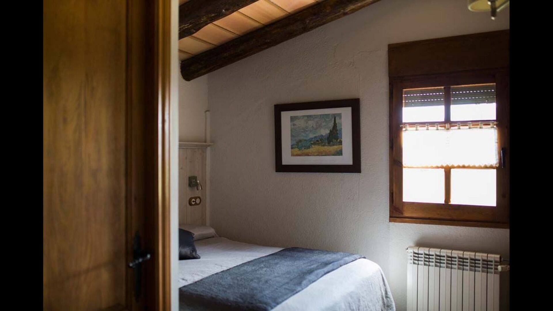 En la planta baja, a la izquierda, hay una habitación doble con cama de matrimonio, y acceso a la sala de actividades. A la derecha hay un amplio dormitorio con 4 camas individuales. En el primer piso, hay un dormitorio en cada extremo de la sala de estar. A la izquierda un dormitorio con 3 camas individuales ya la derecha una habitación doble con camas dobles. Finalmente en el segundo piso hay cuatro habitaciones dobles con camas de matrimonio.