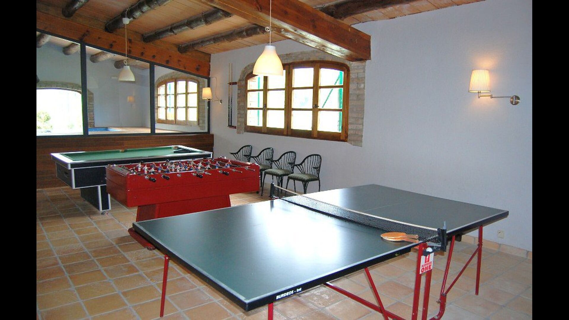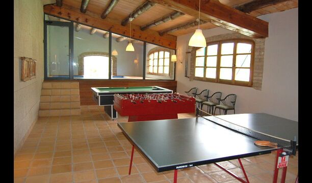 Si quieres hacer algo de ejercicio, la casa tiene muchas instalaciones. En el interior se encuentra el salón de actividades con tenis de mesa, futbolín y billar, no desmarcado por el tiempo pero aún funcional. En el exterior, la multipista con superficie dura permite jugar fútbol, baloncesto y tenis. Encontrarás algunas raquetas y pelotas básicas en la casa. Si desea un equipo más sofisticado, le recomendamos que traiga el suyo propio.