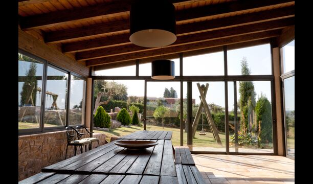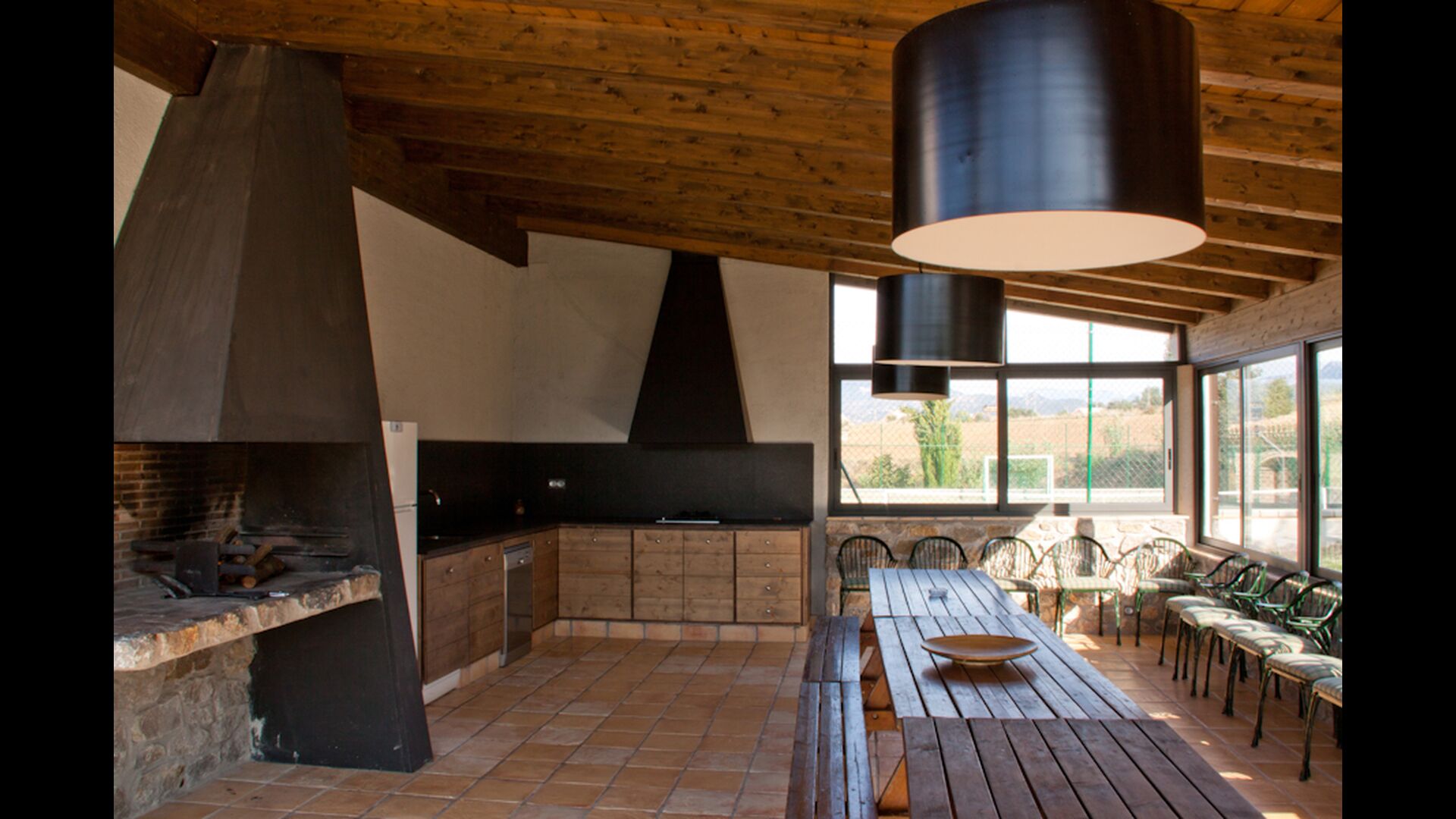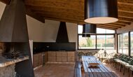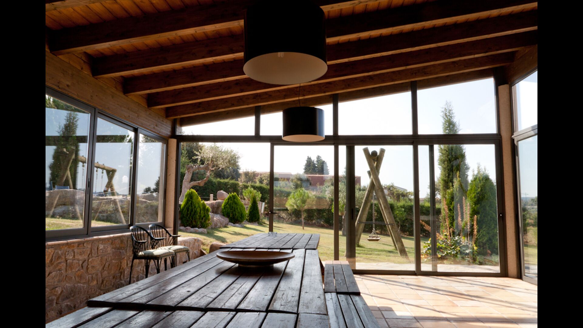 En 2010 se amplió la antigua casa con un bonito porche de cristal, con cocina totalmente equipada y barbacoa. En temporada baja, apetece cenar fuera sin pasar frío y en verano, se puede abrir toda la fachada y el porche se puede utilizar como una terraza cubierta muy grande. Desde aquí, también puede estar al tanto de lo que sucede en el jardín y en la piscina.