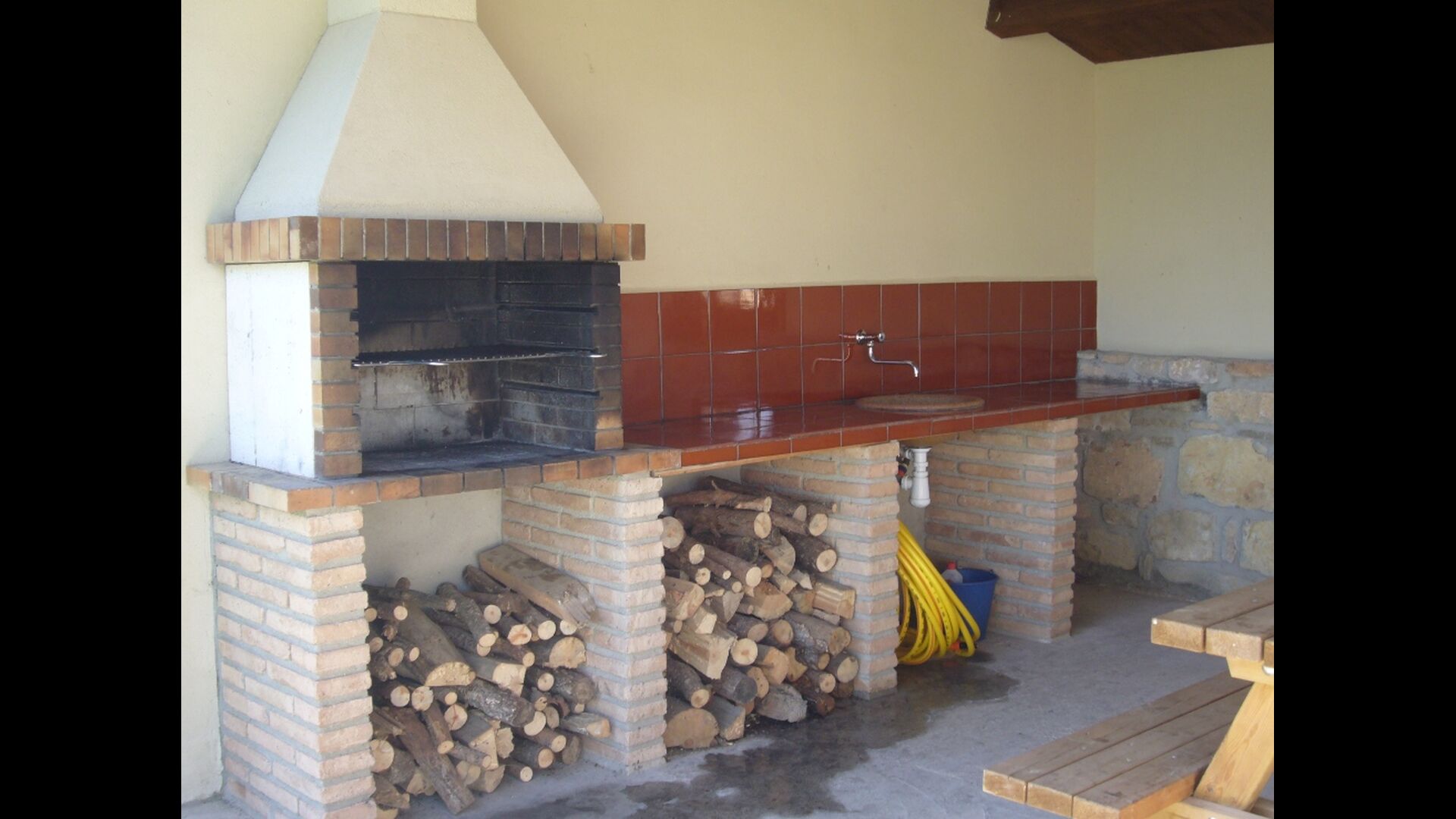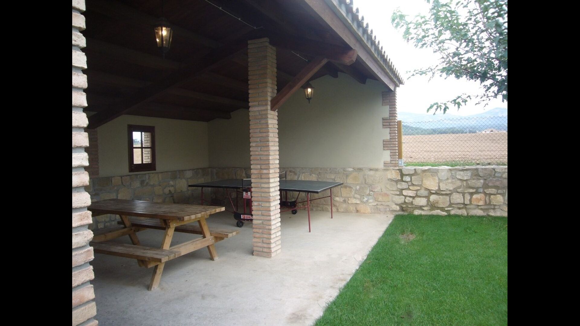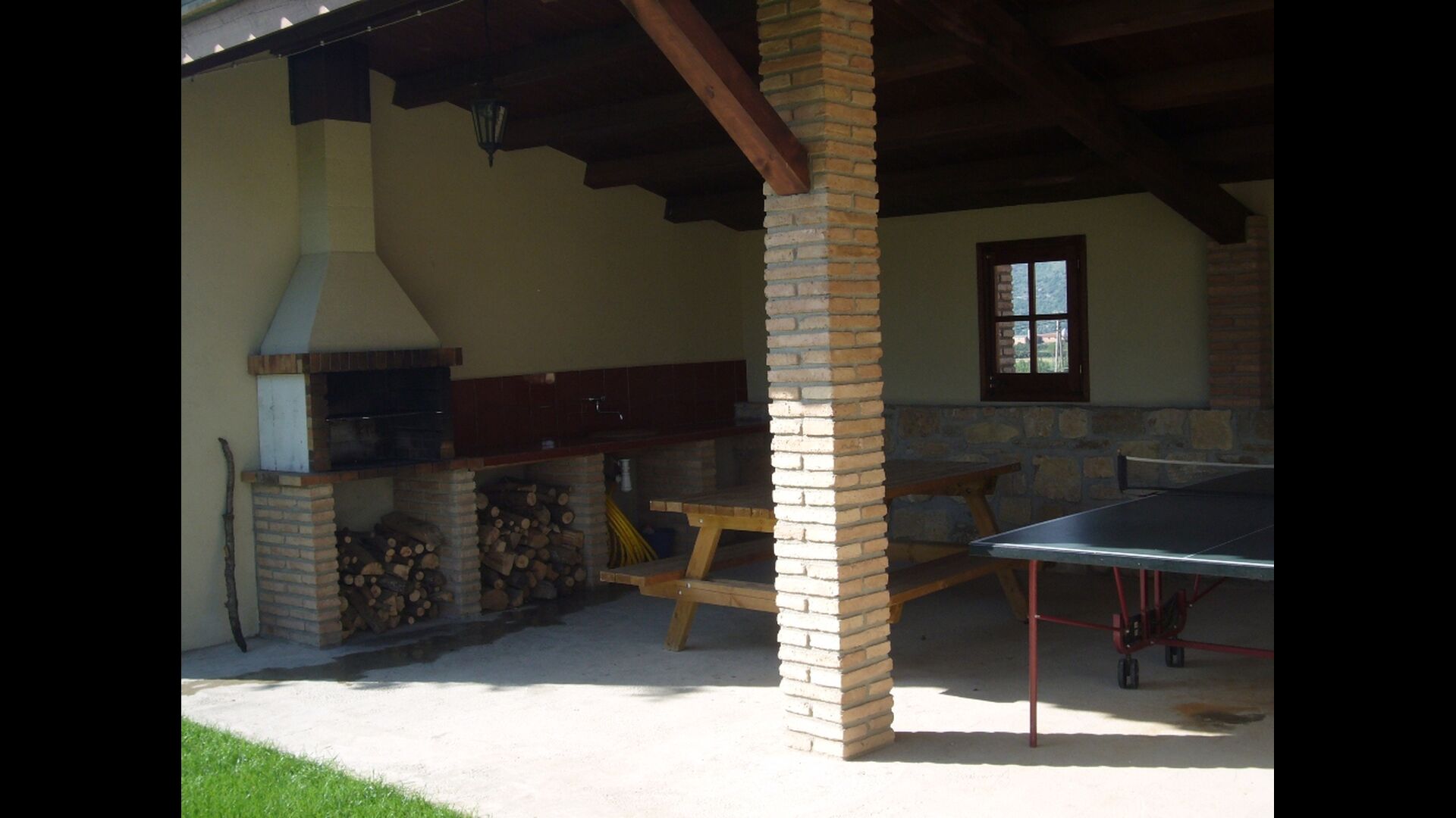• Terraza cubierta con barbacoa y mesa de comedor.