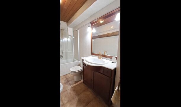 En el interior, entras en el gran salón / comedor con acceso a la cocina abierta. Contiene una gran mesa de comedor, un sofá-esquina con TV y equipo de música. También hay una chimenea. En el otro extremo, se llega a las 6 habitaciones dobles, 4 con dos camas individuales y 2 con camas dobles. Hasta cuatro camas más y cuna es opcional. Hay cuatro cuartos de baño completamente equipados.