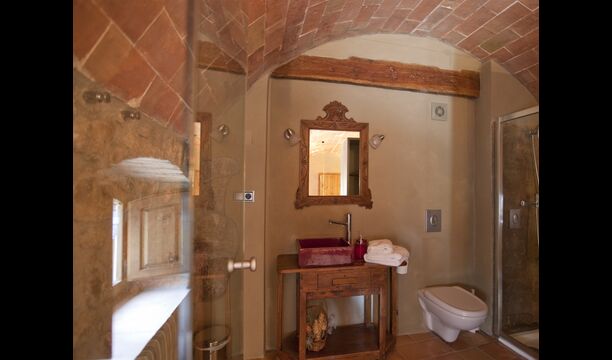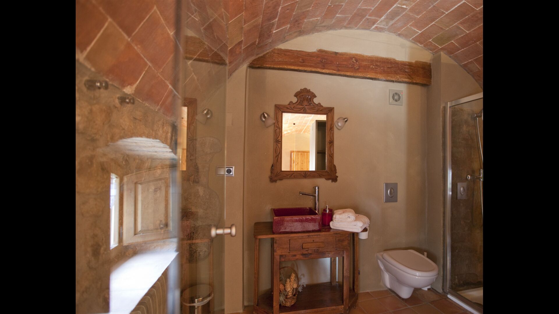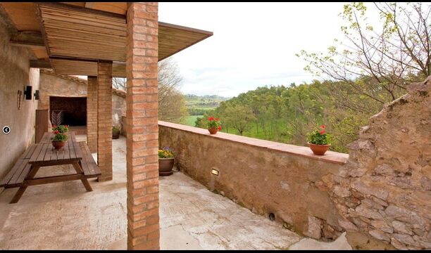 La casa esta situada en una pendiente y delante de un maravilloso paisaje. Si caminas hacia abajo, llegarás en un pequeño rio y en un camino donde te llevará al pueblo de al lado, el cual esta situado en una distancia a pie de unos 4km.