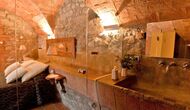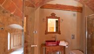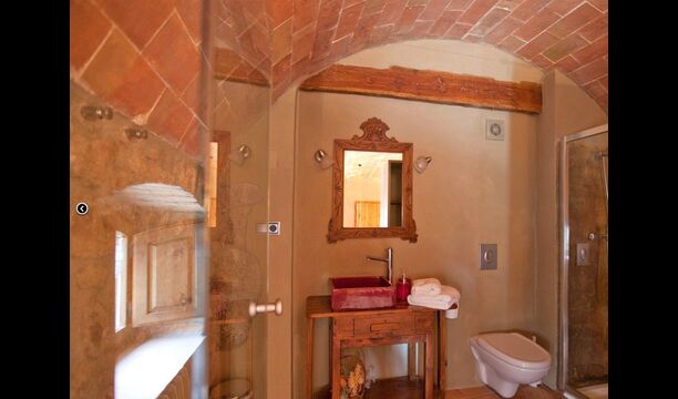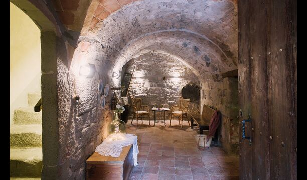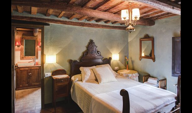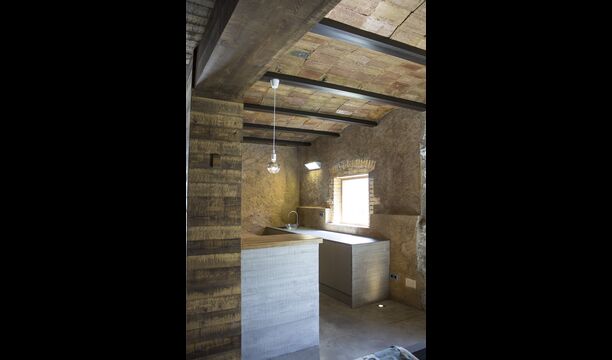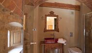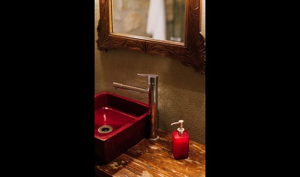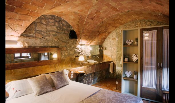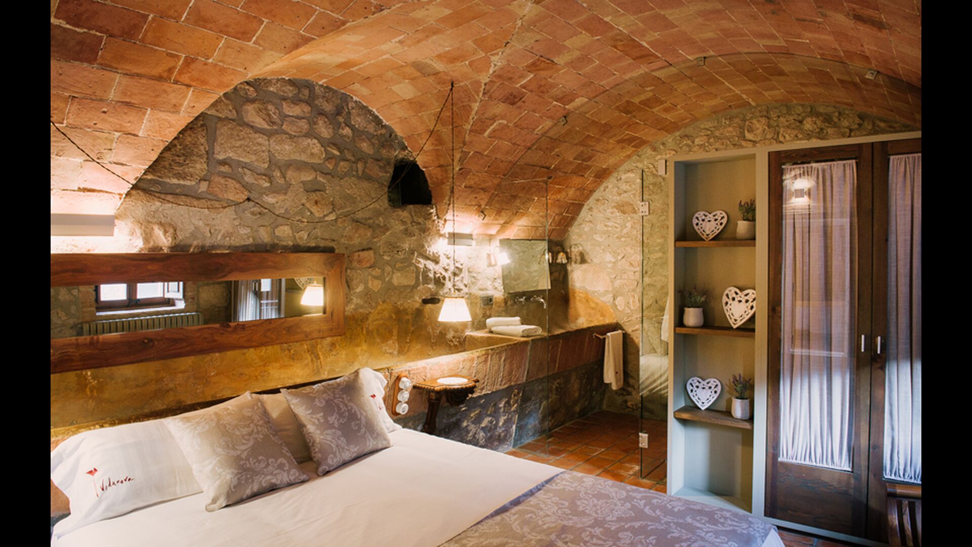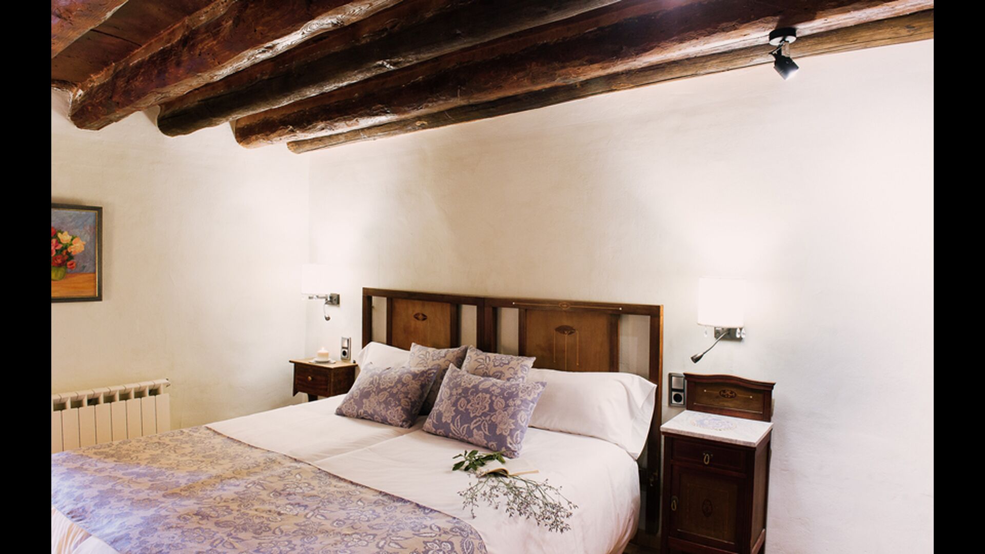 Entras en la planta baja de la casa por una bonita entrada. Previamente, esta zona era donde había los animales, pero esta area es ahora un increíble camino transformado en dos suits con cama doble y baño privado, todo con un diseño de interior moderno. A la planta baja, también hay una sala con una mesa de ping-pong.
