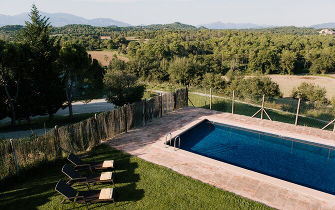 Casa Nueva es una casa de vacaciones excelente con dos pisos, con un bonito vidrio a la entrada y una piscina privada. Situada en un entorno natural con caminos para hacer paseos, es una de las villas mas encantadoras de la Cataluña Central. Aquí, puedes disfrutar de tu propio espacio privado y de sus vistas, como también seguir la vida rural de la propiedad.