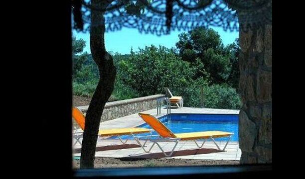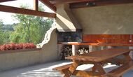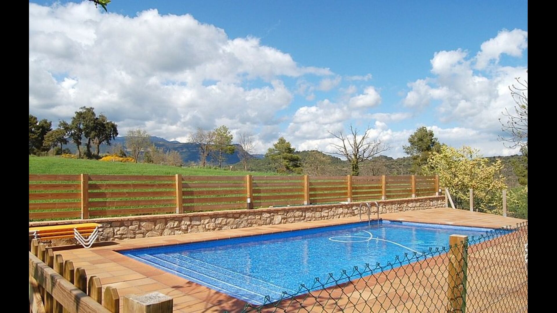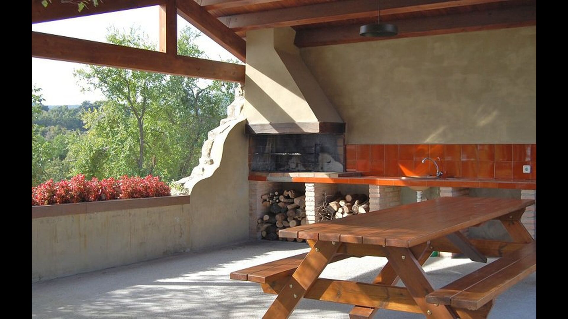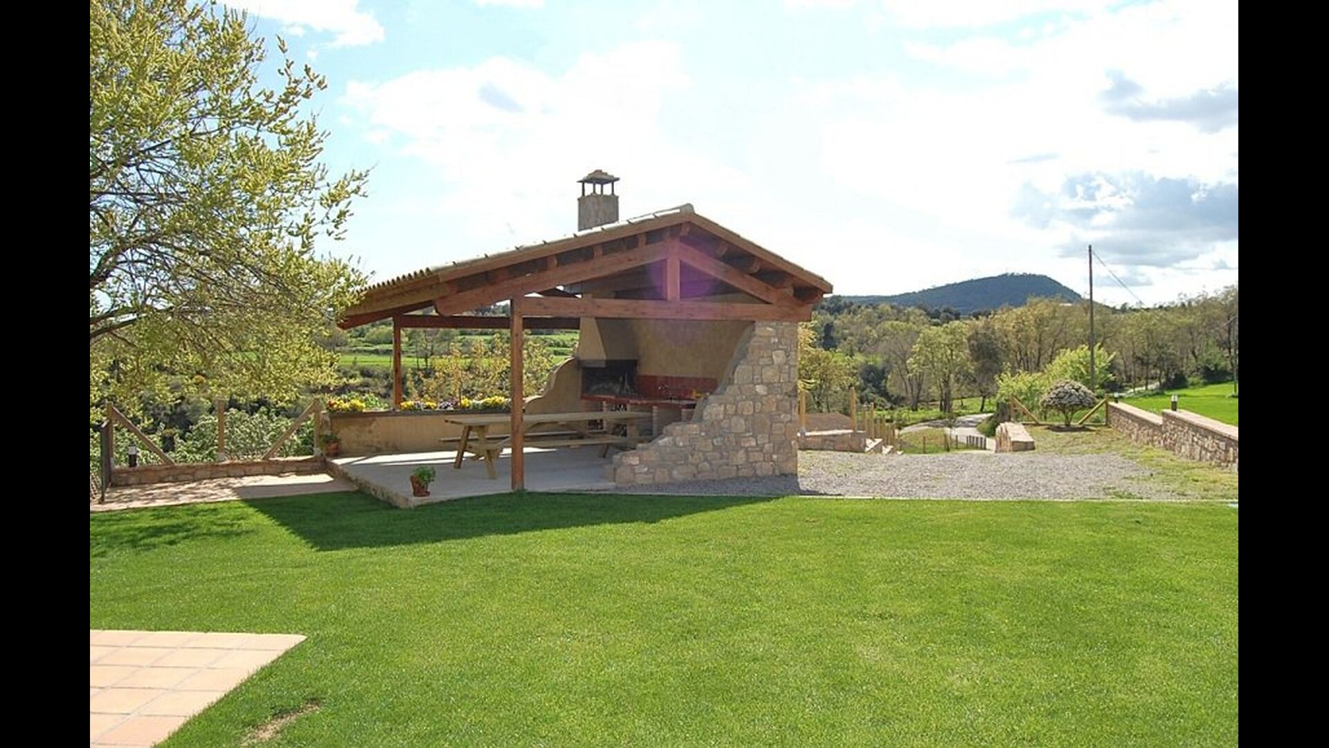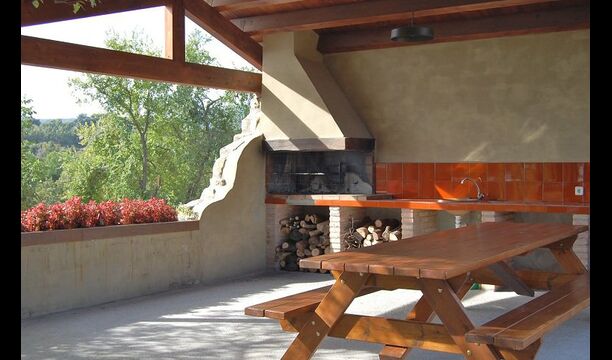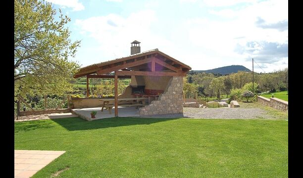 En el otro extremo del jardín hay una terraza cubierta, que será el punto de encuentro natural de las vacaciones. Este es un lugar perfecto para pasar la noche cuando hay una barbacoa, cocina al aire libre y mesa de comedor y tenis de mesa. Desde el jardín y la casa hay una vista impresionante sobre las hermosas montañas catalanas en una dirección. En la otra dirección, un nivel debajo de la casa, hay un gran campo para las vacas de los propietarios con un establo abierto, donde pueden esconderse cuando hace mal tiempo.