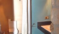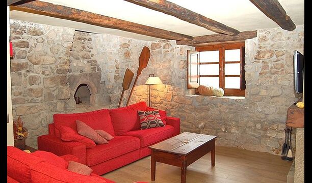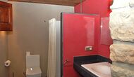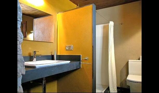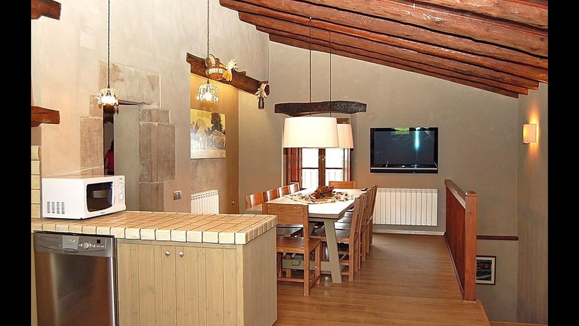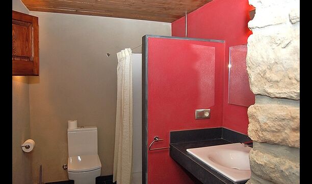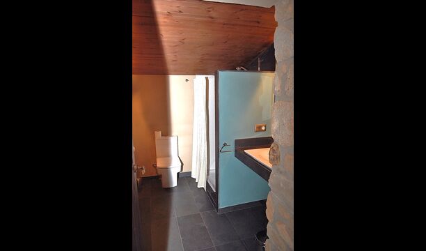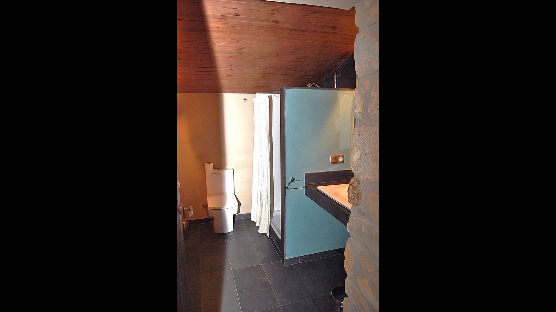 La planta baja tiene una gran habitación doble con baño moderno. También hay un salón con una acogedora sala de estar con TV de pantalla plana, que es un gran lugar para relajarse en el interior. Esta habitación tiene muchos pequeños detalles catalanes, que le recuerdan el hecho de que está de vacaciones y que lo hacen relajarse aún más automáticamente.