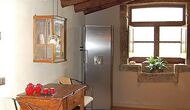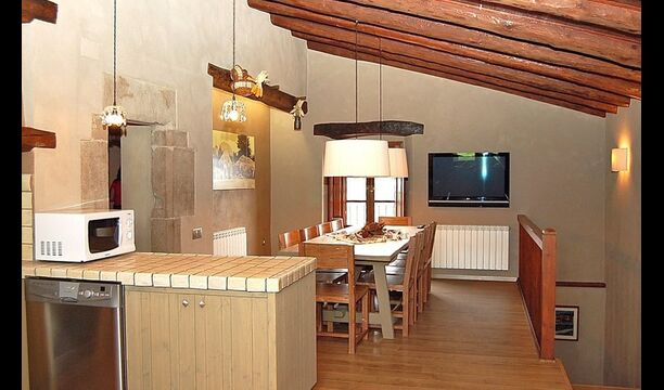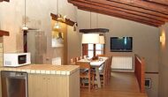 Si caminas por las escaleras hasta el primer piso, te encontrarás con las otras cuatro habitaciones dobles. Estos se colocan a cada lado de la cocina abierta con mesa de comedor. La cocina tiene, entre otros, una nevera, un congelador, un lavavajillas, un microondas e incluso un televisor de pantalla plana en la mesa del comedor. También hay pequeñas cosas catalanas en la cocina como juegos de té y jarras.