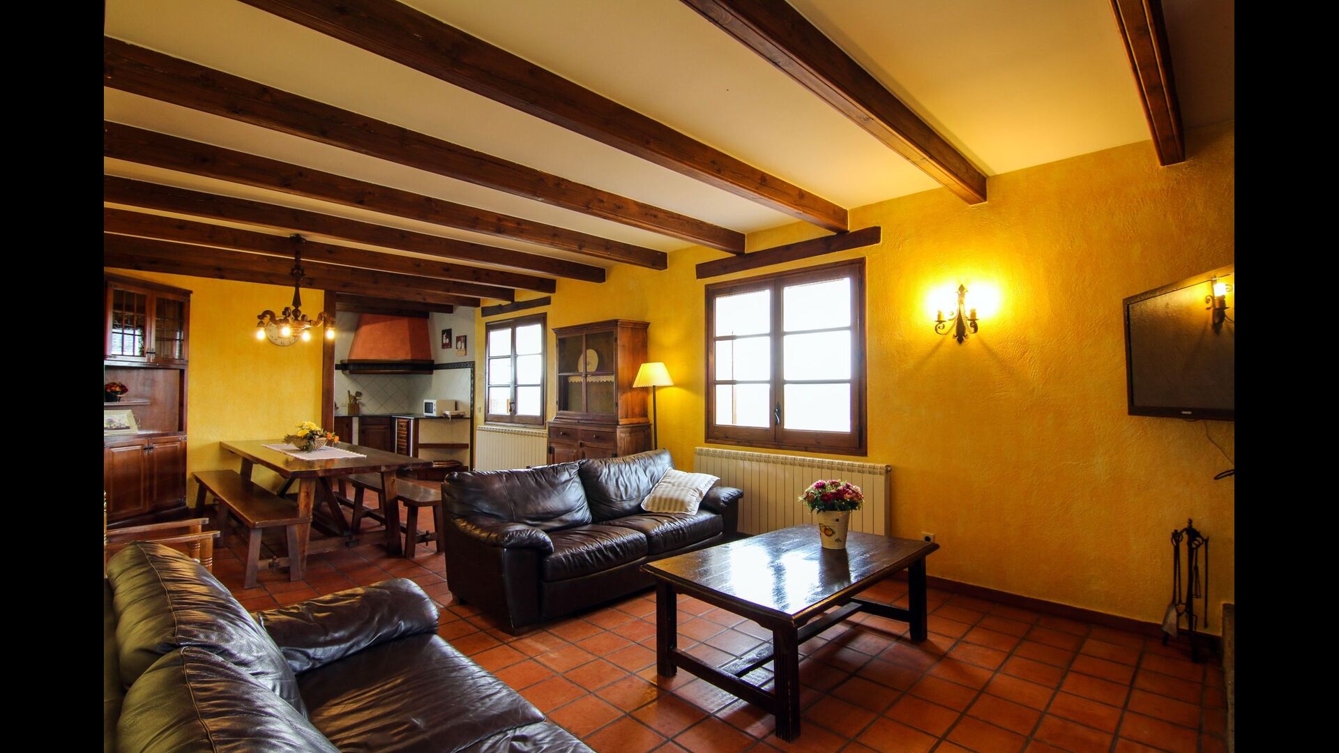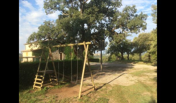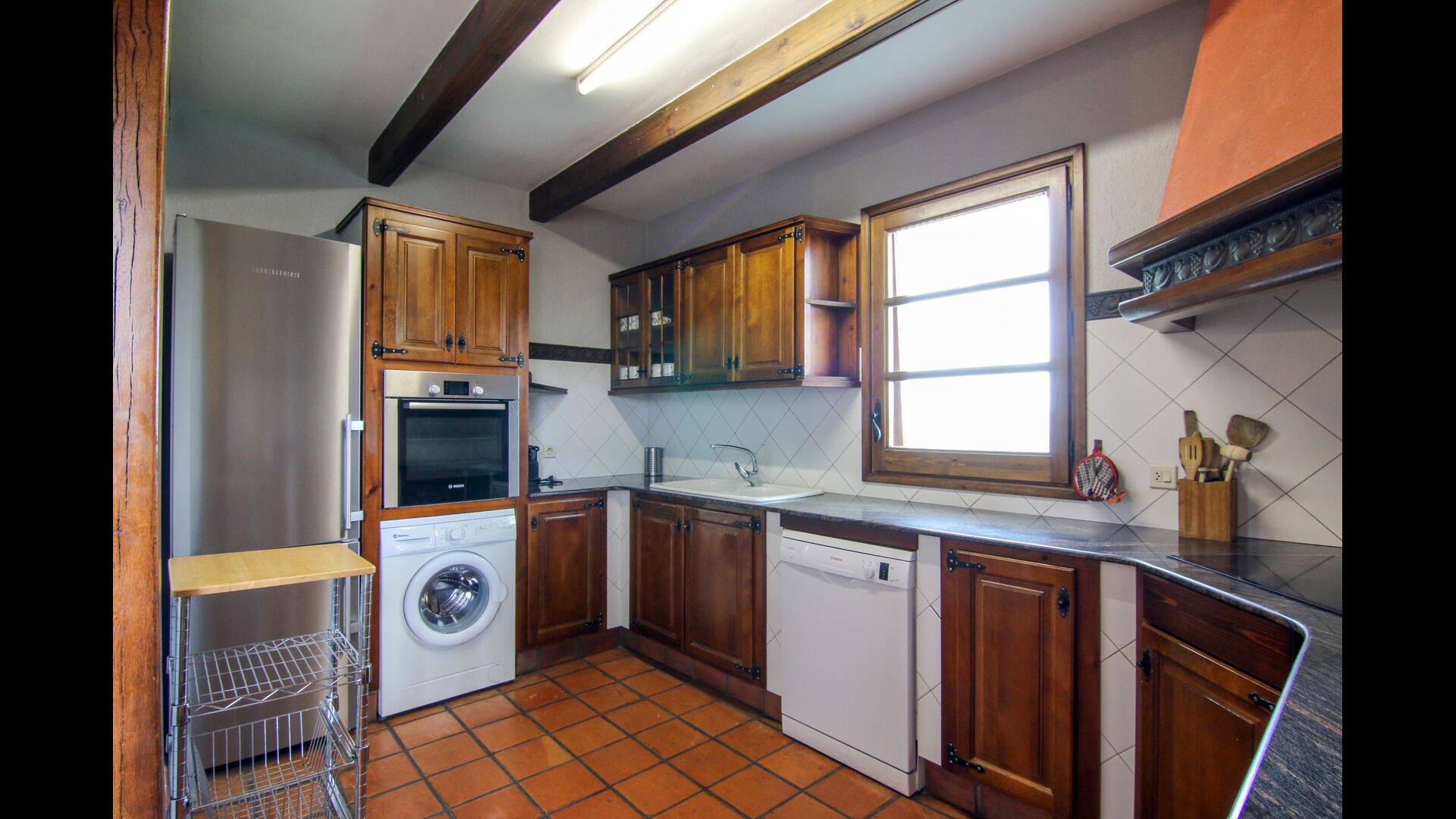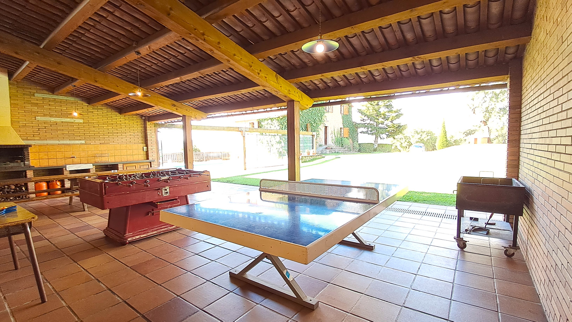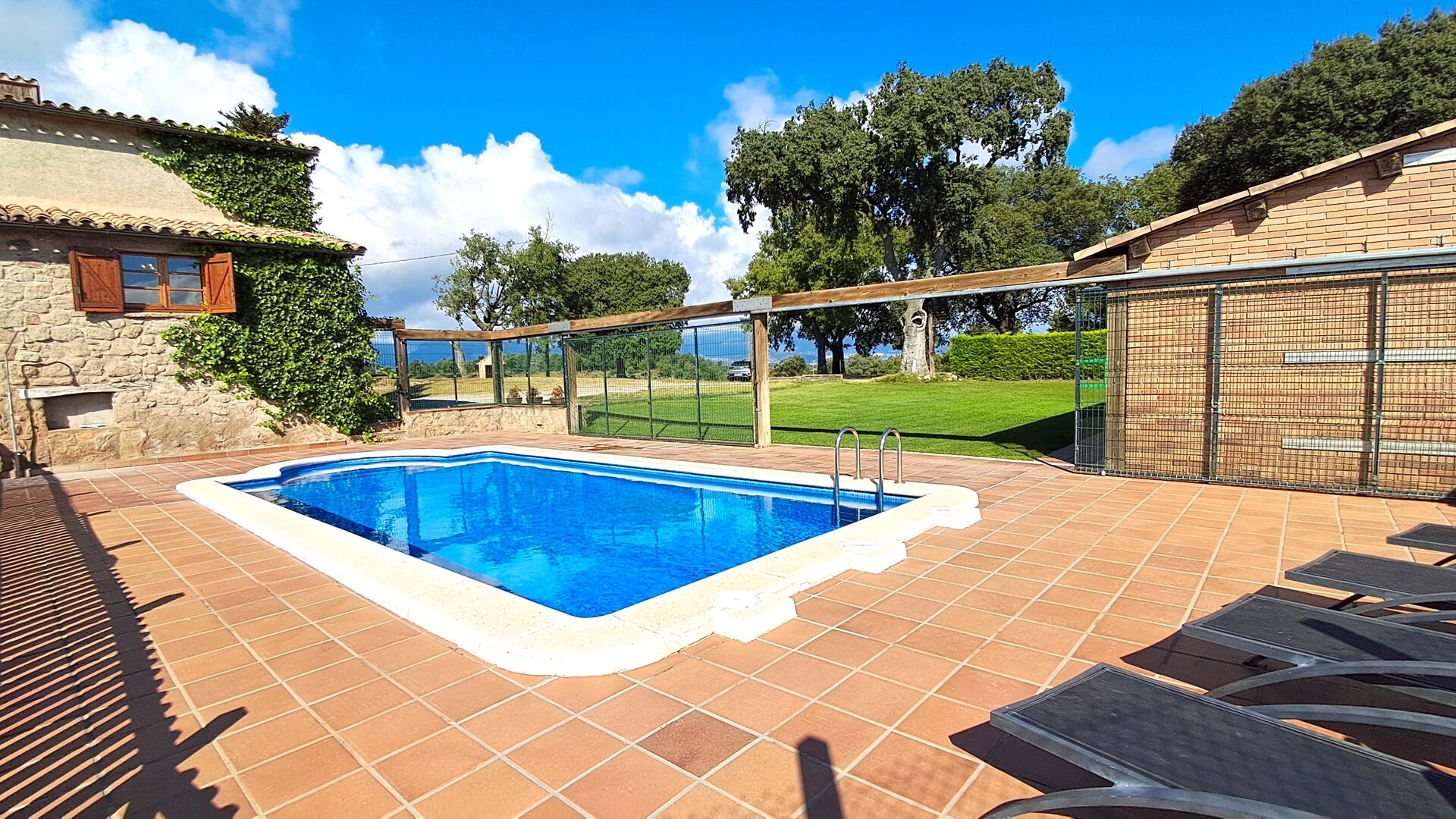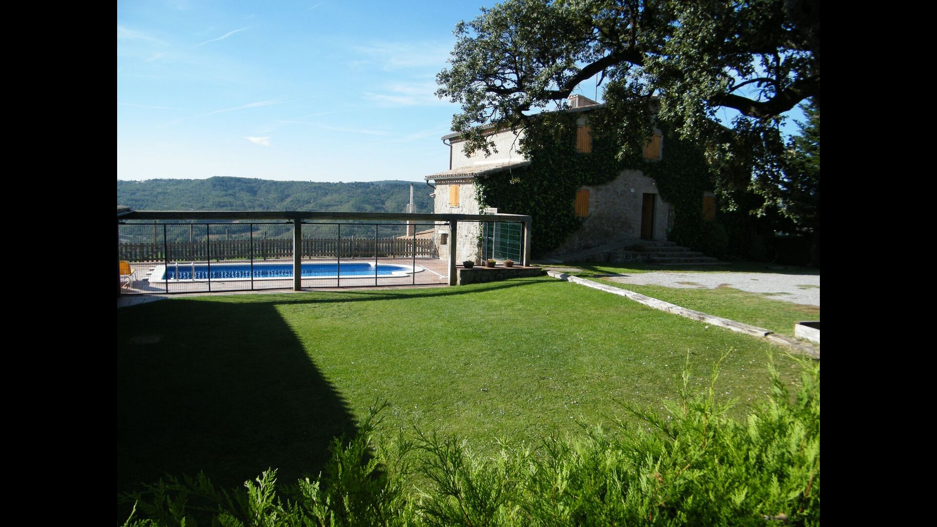 Las zonas al aire libre están muy bien, ya que hay una gran piscina con tumbonas y una terraza cubierta con cocina al aire libre justo al lado. La piscina se puede disfrutar especialmente durante el día, cuando el calor catalán se puede complementar con una inmersión en el agua refrescante. También está cercado, lo cual es muy bueno cuando tienes niños pequeños en vacaciones. La terraza cubierta tiene un fregadero, parrillas para barbacoa, leña y herramientas. Aquí puede cocinar comida casera. Luego se puede disfrutar en la mesa de madera muy larga y hermosa al lado. Hay muchas instalaciones en el jardín: columpios, básquetbol, tenis de mesa, futbolín y mucho espacio. Por otra parte, los robles viejos y grandes que crecen alrededor dan muchos rincones sombríos donde realmente puede relajarse.