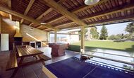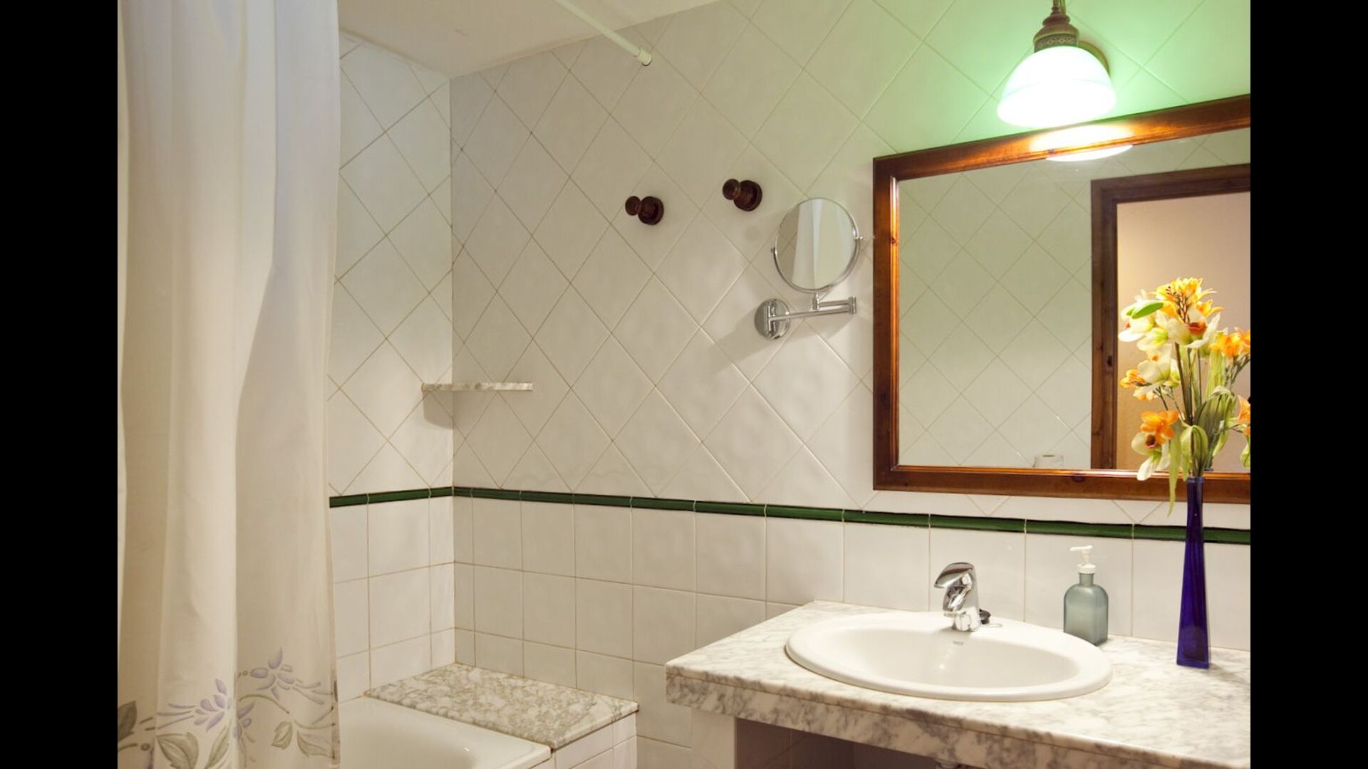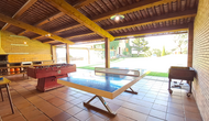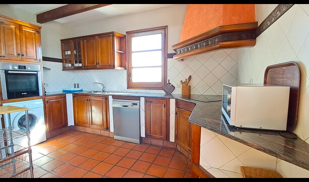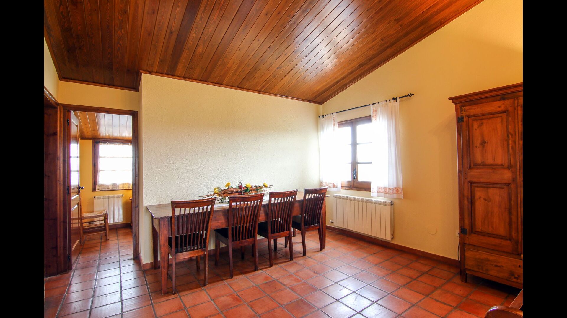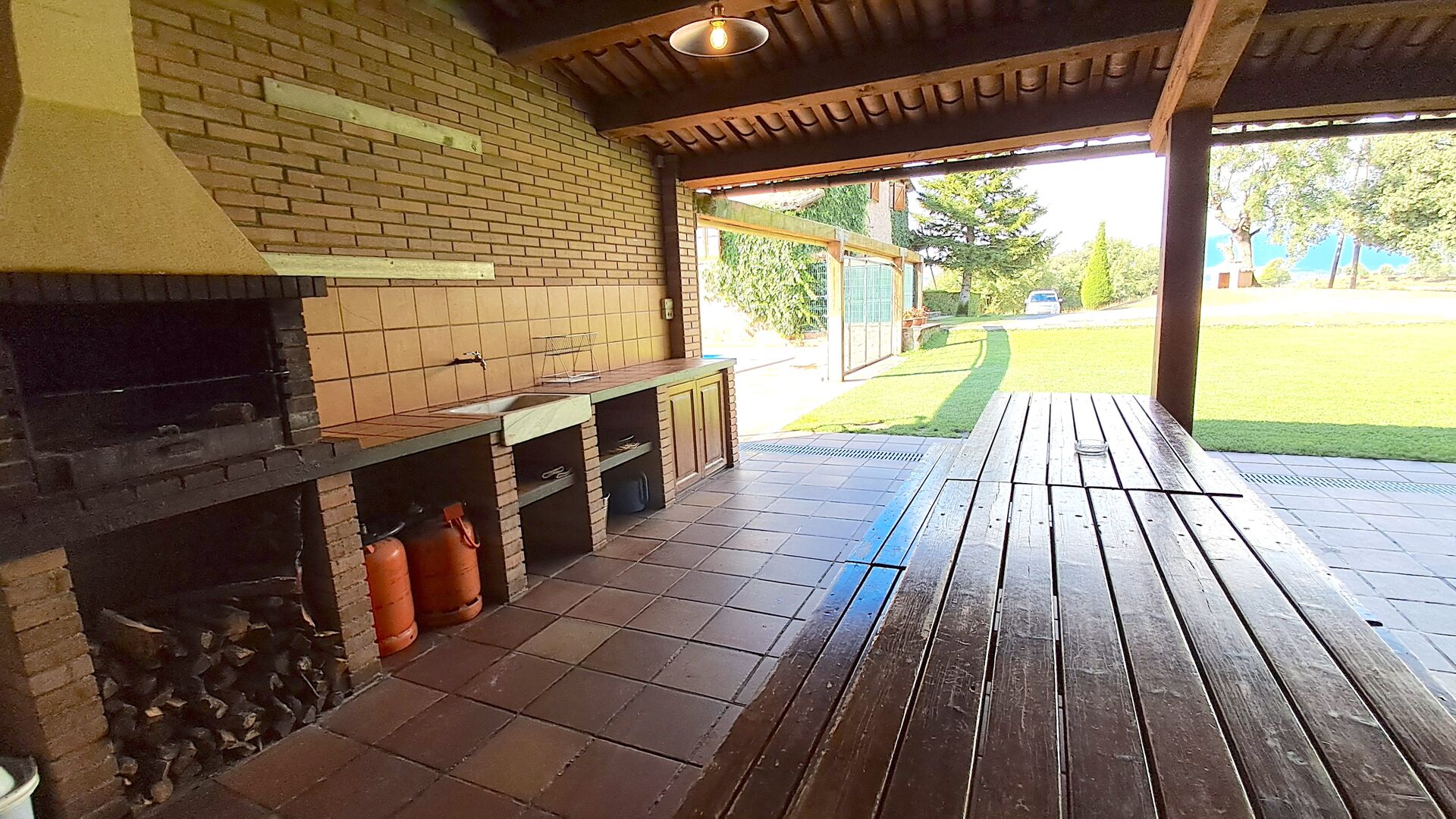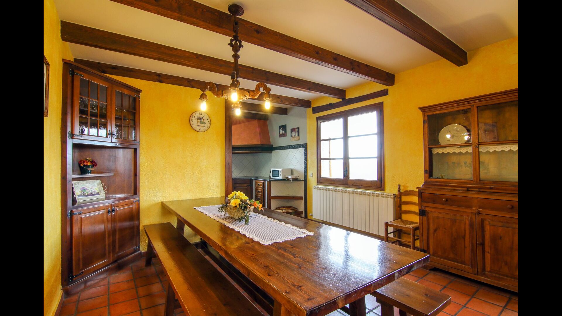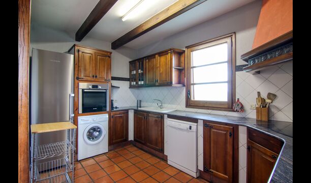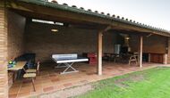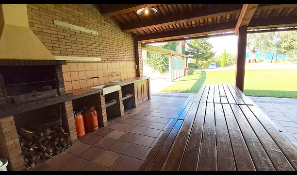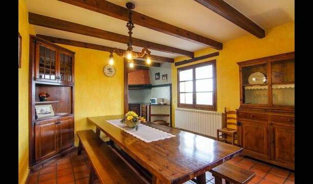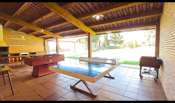 Las zonas al aire libre están muy bien, ya que hay una gran piscina con tumbonas y una terraza cubierta con cocina al aire libre justo al lado. La piscina se puede disfrutar especialmente durante el día, cuando el calor catalán se puede complementar con una inmersión en el agua refrescante. También está cercado, lo cual es muy bueno cuando tienes niños pequeños en vacaciones. La terraza cubierta tiene un fregadero, parrillas para barbacoa, leña y herramientas. Aquí puede cocinar comida casera. Luego se puede disfrutar en la mesa de madera muy larga y hermosa al lado. Hay muchas instalaciones en el jardín: columpios, básquetbol, tenis de mesa, futbolín y mucho espacio. Por otra parte, los robles viejos y grandes que crecen alrededor dan muchos rincones sombríos donde realmente puede relajarse.