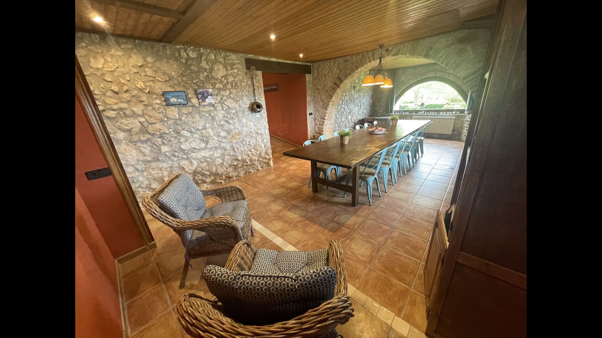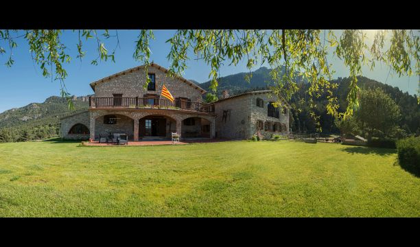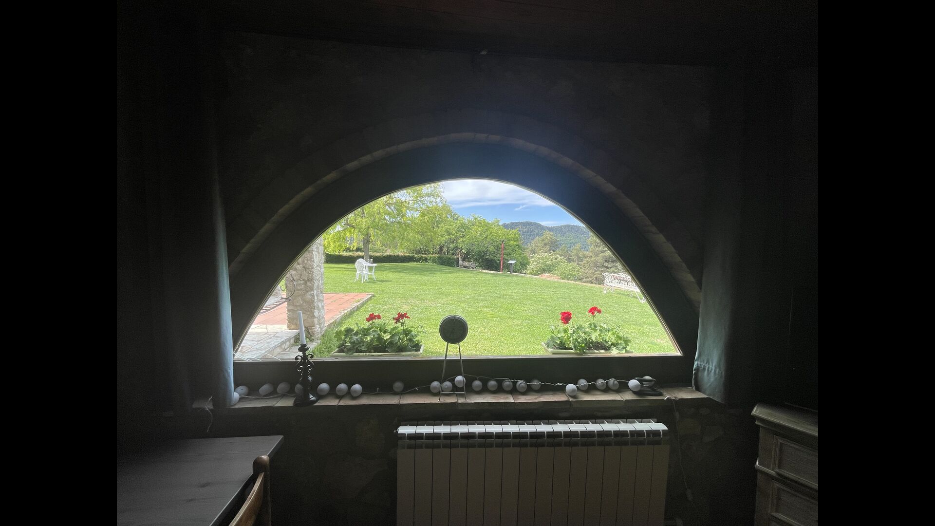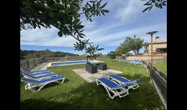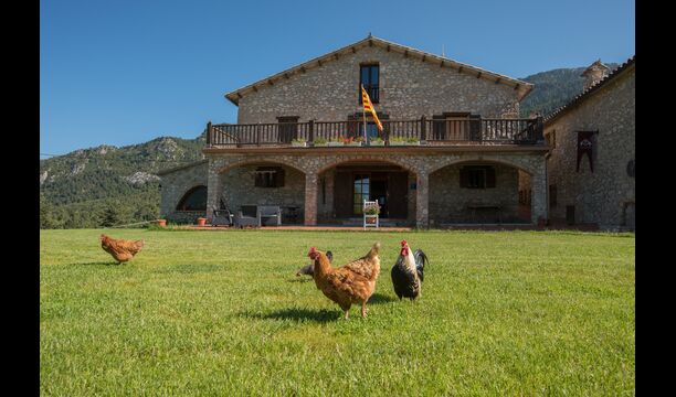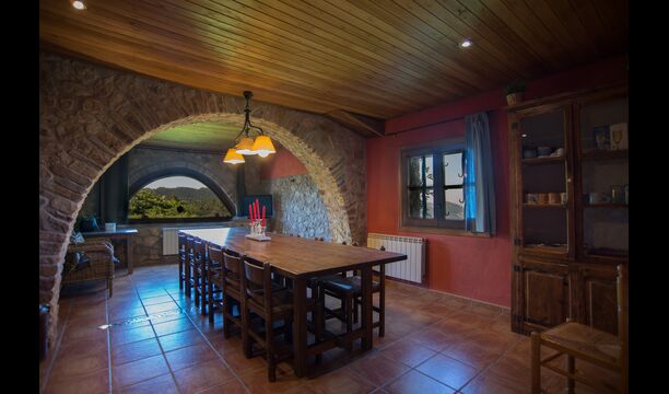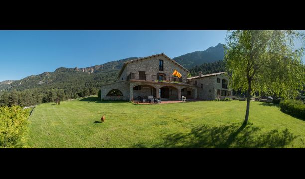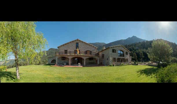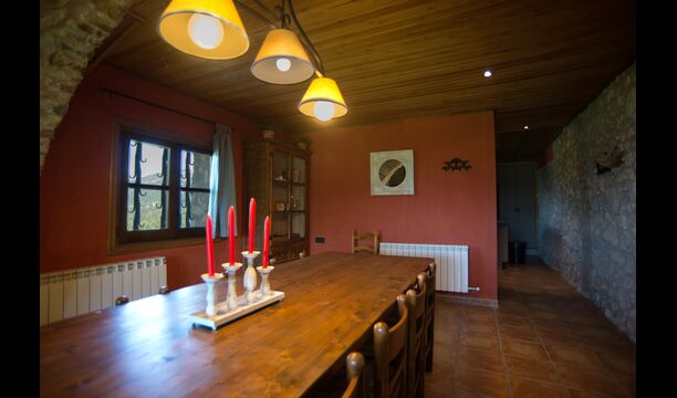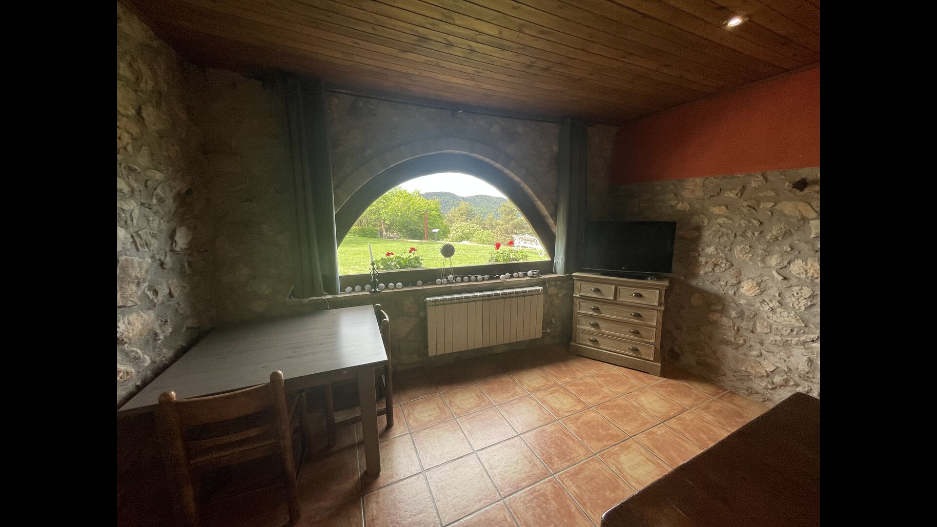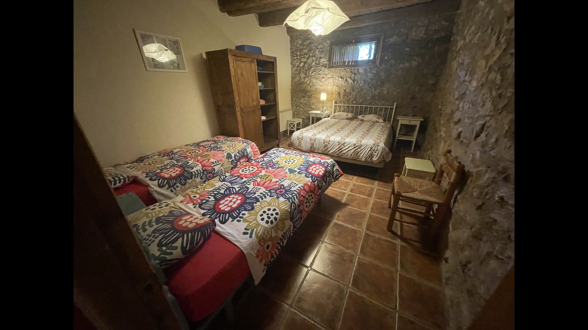El apartamento grande "Casa Grande" en la casa principal y tiene una terraza grande con vista a la propiedad y con los Pirineos levantándose de fondo. Este apartamento dispone de cuatro habitaciones dobles, tres de ellas con camas de matrimonio, además de una habitación cuádruple con cuatro camas individuales. La primera parte del apartamento se divide en una sala de estar con vista, un comedor muy auténtico y una cocina grande con, entre otras cosas, lavavajillas y lavadora.