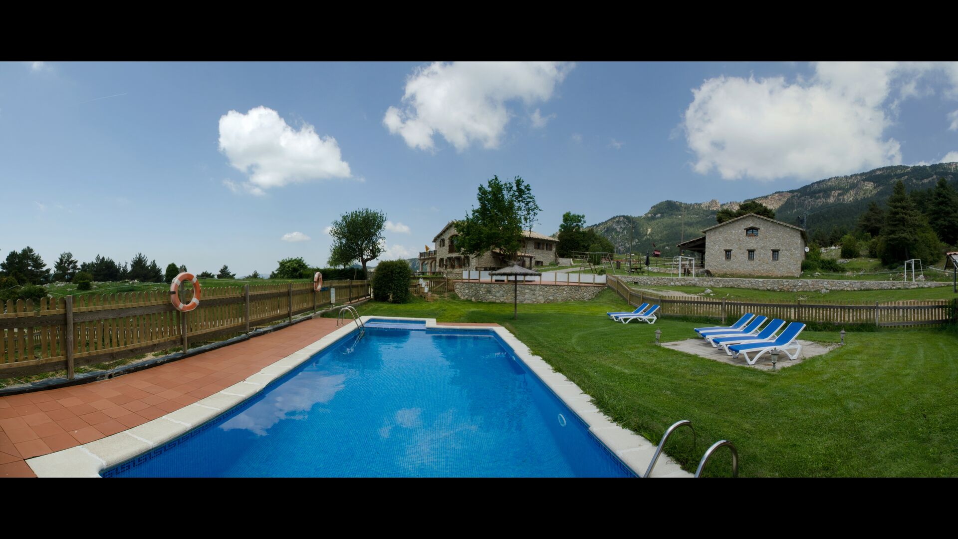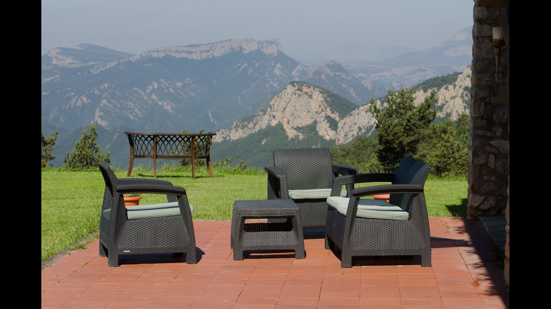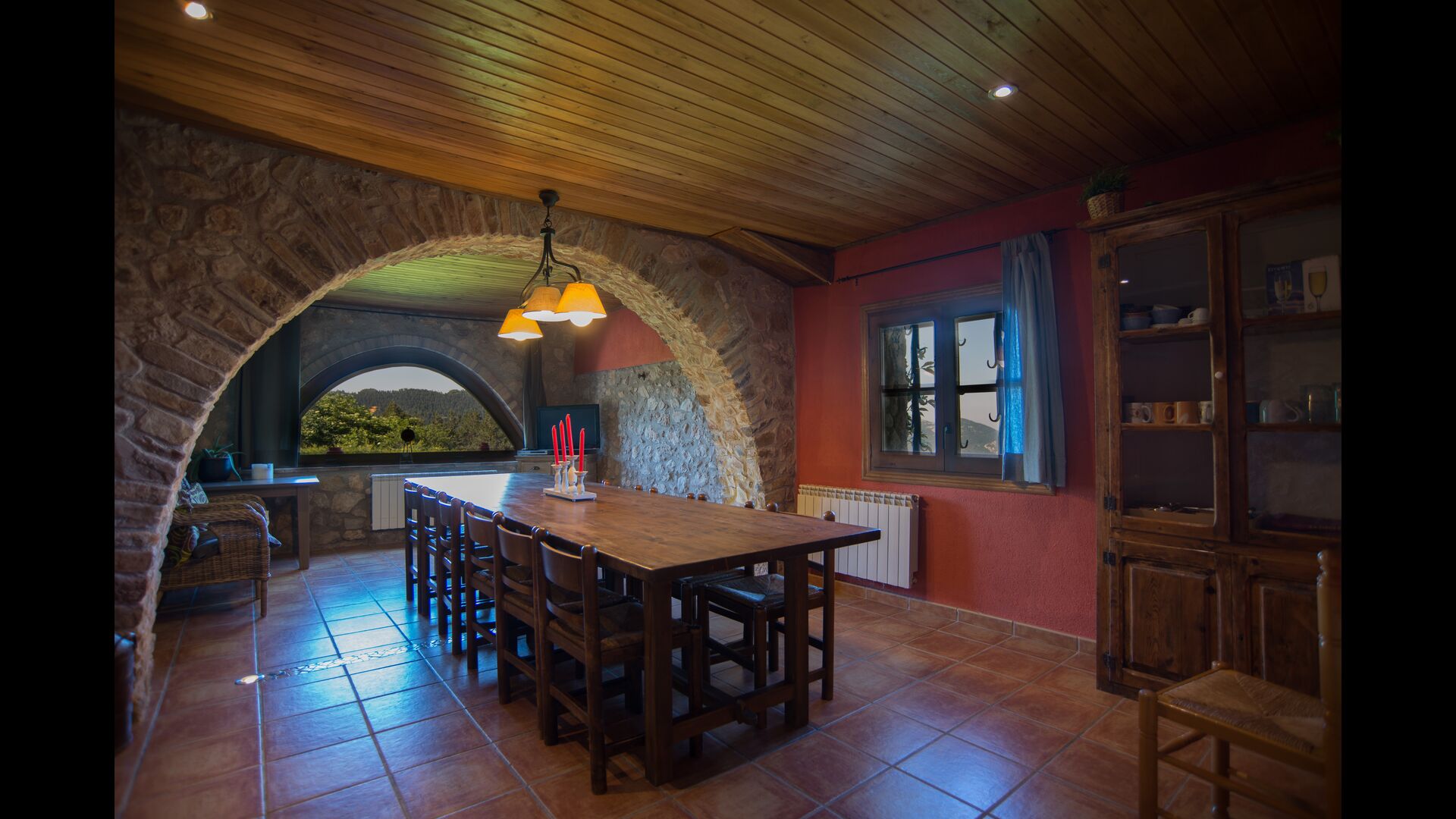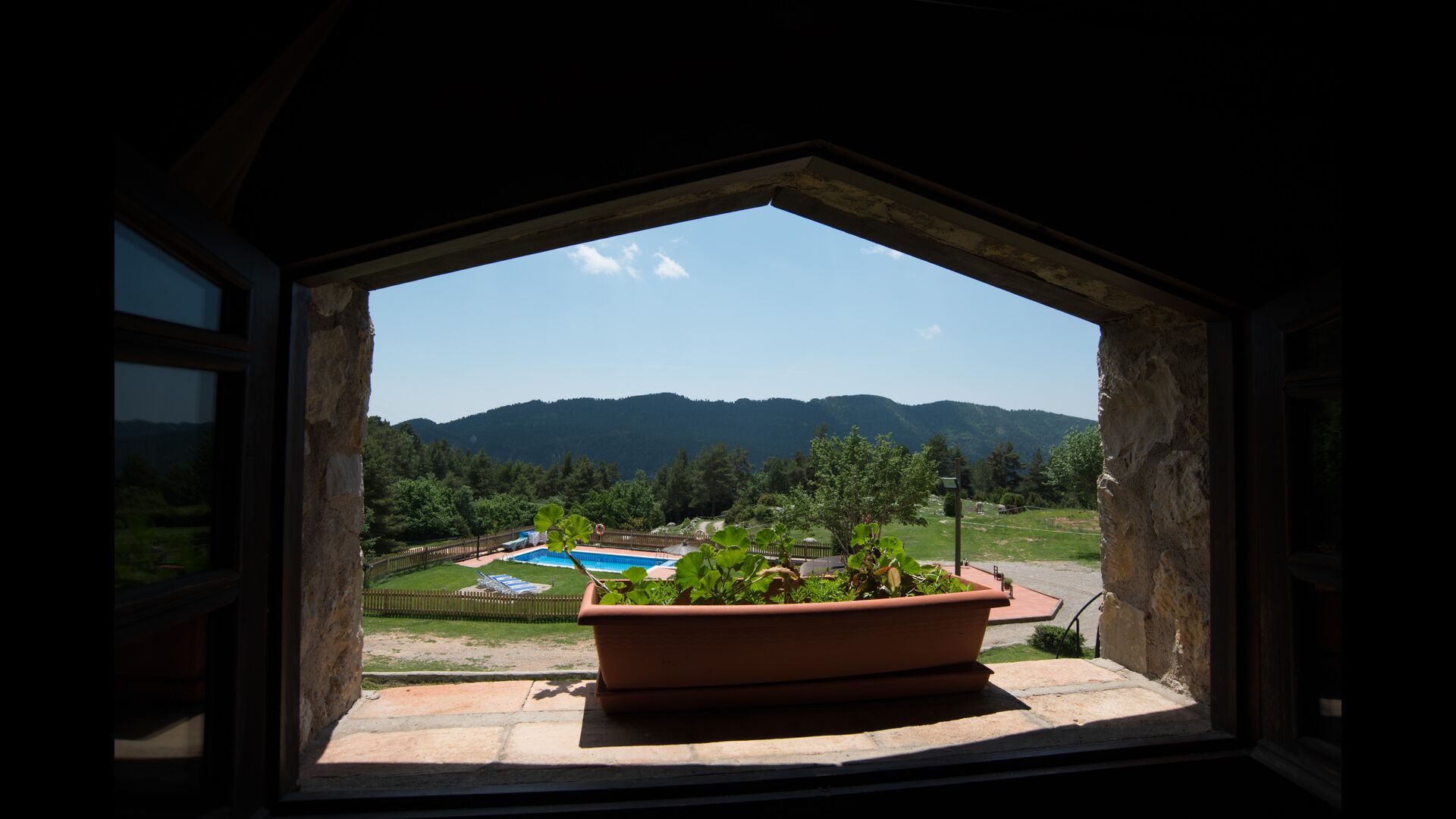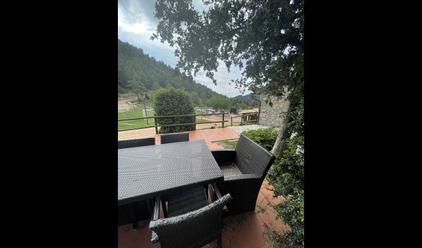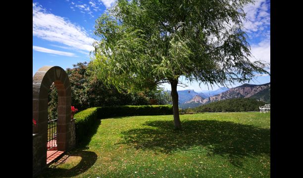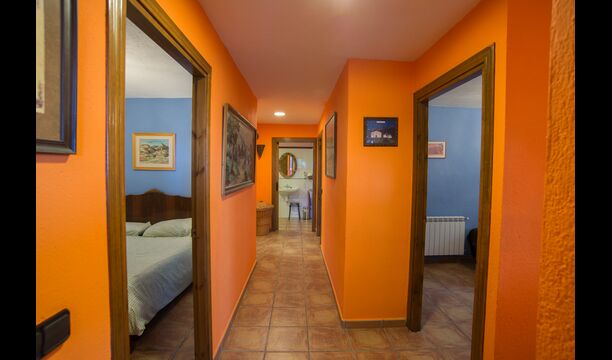 El apartamento grande "Casa Grande" en la casa principal y tiene una terraza grande con vista a la propiedad y con los Pirineos levantándose de fondo. Este apartamento dispone de cuatro habitaciones dobles, tres de ellas con camas de matrimonio, además de una habitación cuádruple con cuatro camas individuales. La primera parte del apartamento se divide en una sala de estar con vista, un comedor muy auténtico y una cocina grande con, entre otras cosas, lavavajillas y lavadora.