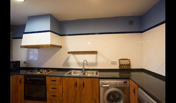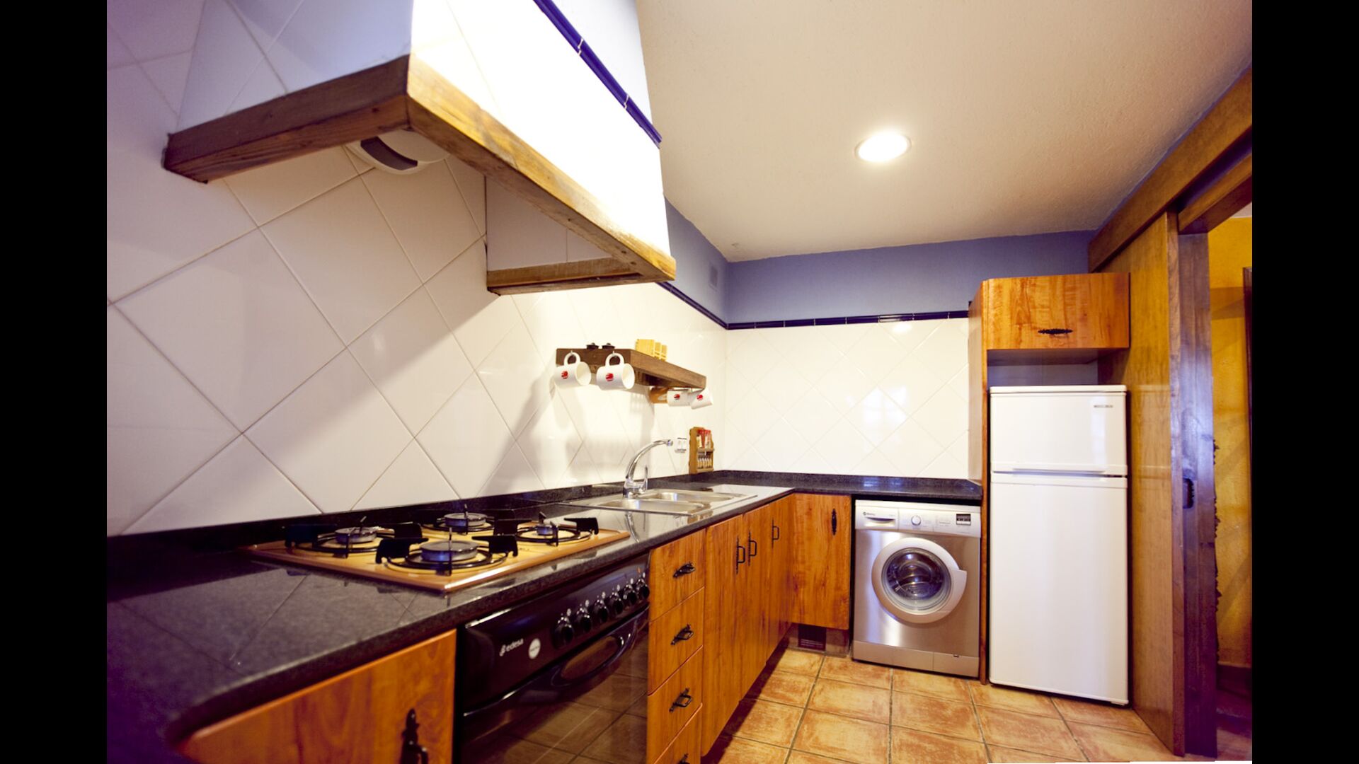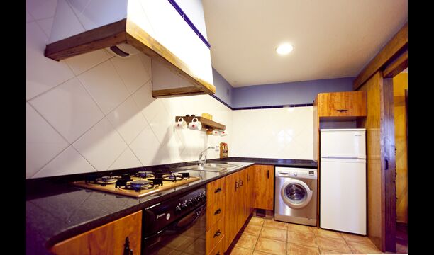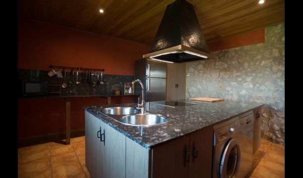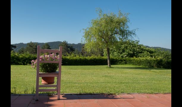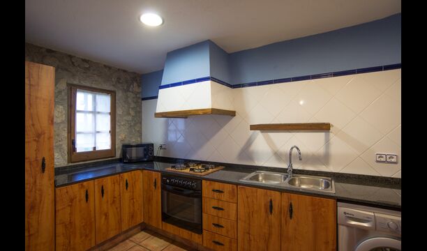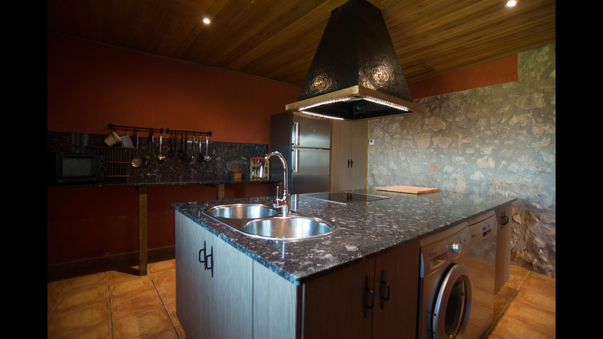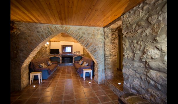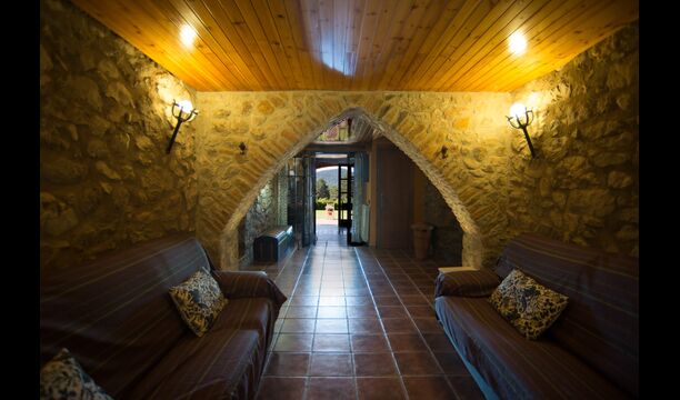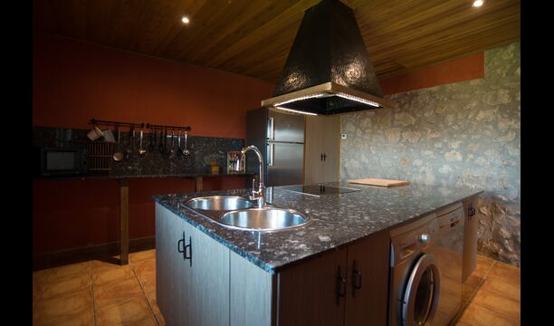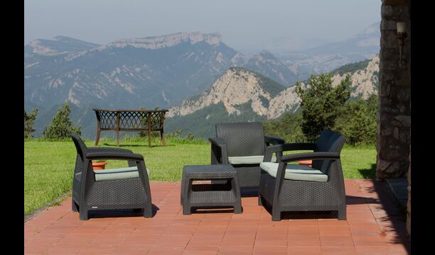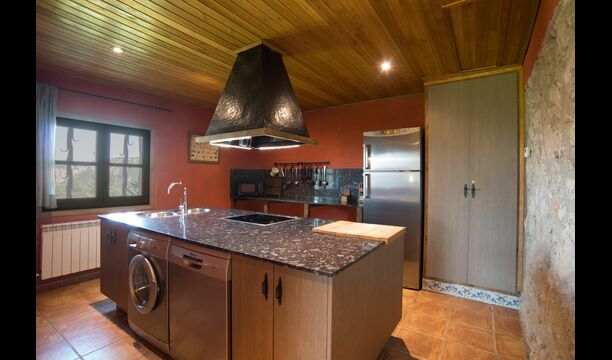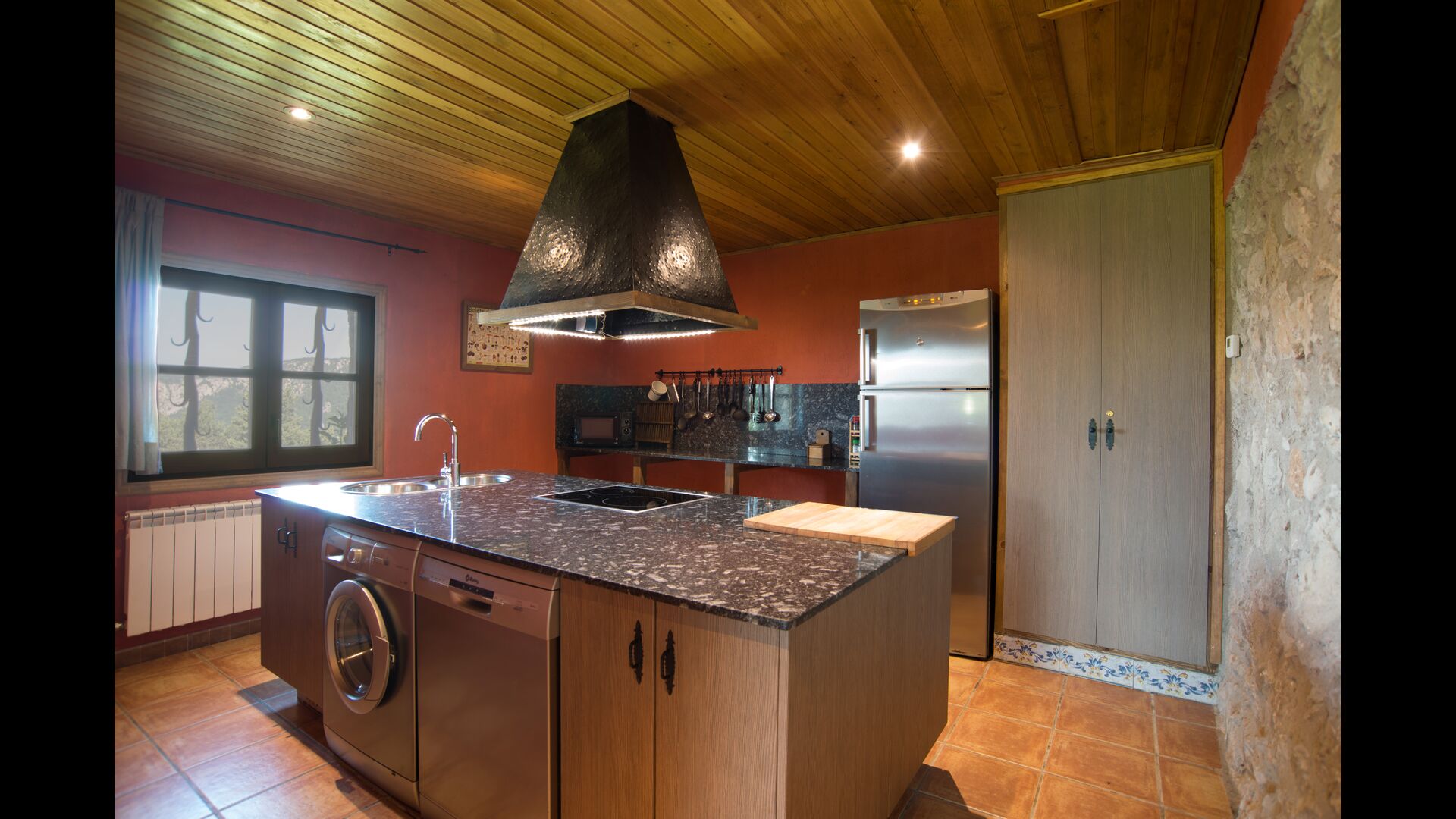 El apartamento grande "Casa Grande" en la casa principal y tiene una terraza grande con vista a la propiedad y con los Pirineos levantándose de fondo. Este apartamento dispone de cuatro habitaciones dobles, tres de ellas con camas de matrimonio, además de una habitación cuádruple con cuatro camas individuales. La primera parte del apartamento se divide en una sala de estar con vista, un comedor muy auténtico y una cocina grande con, entre otras cosas, lavavajillas y lavadora.