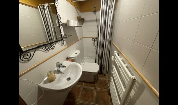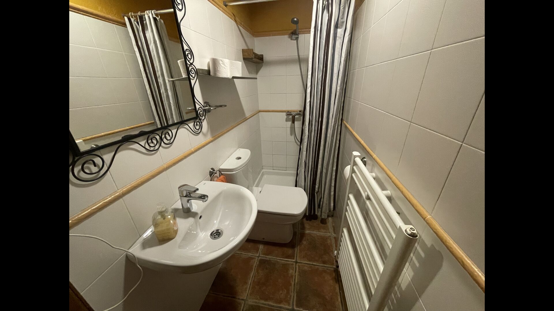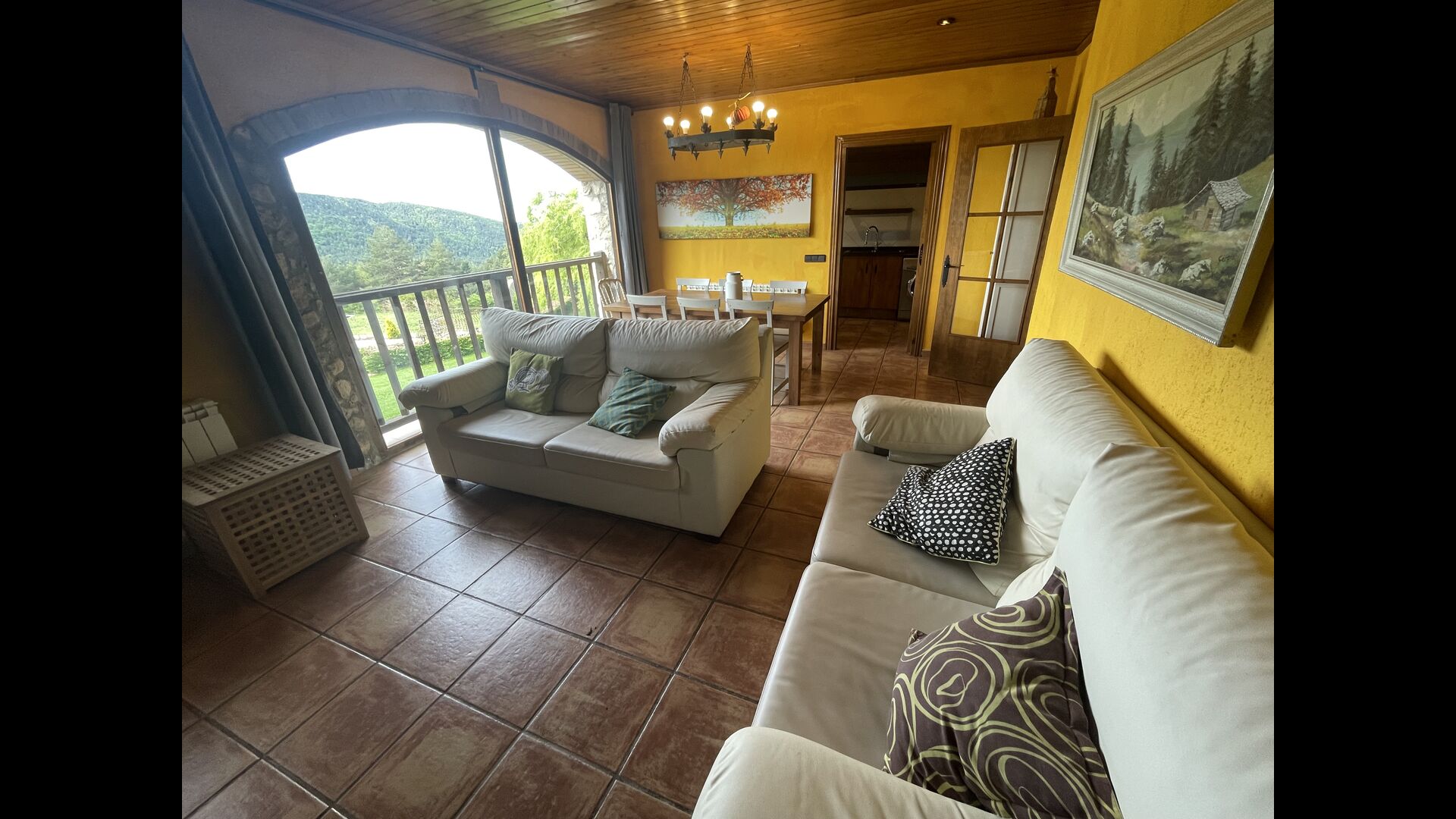 El apartamento está en la primera planta y consta de una habitación doble con 1 cama de matrimonio, una habitación doble con 2 camas individuales y una habitación con cama de madera y camas individuales. Además, hay 2 baños, una cocina y una sala de estar con una mesa de comedor y Rincón de sofá y una vista fascinante de los Pirineos. La vista desde las ventanas es maravillosa, en todo momento del día – mañana, tarde, tarde y noche.