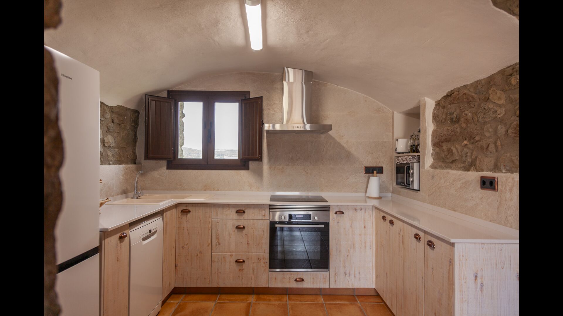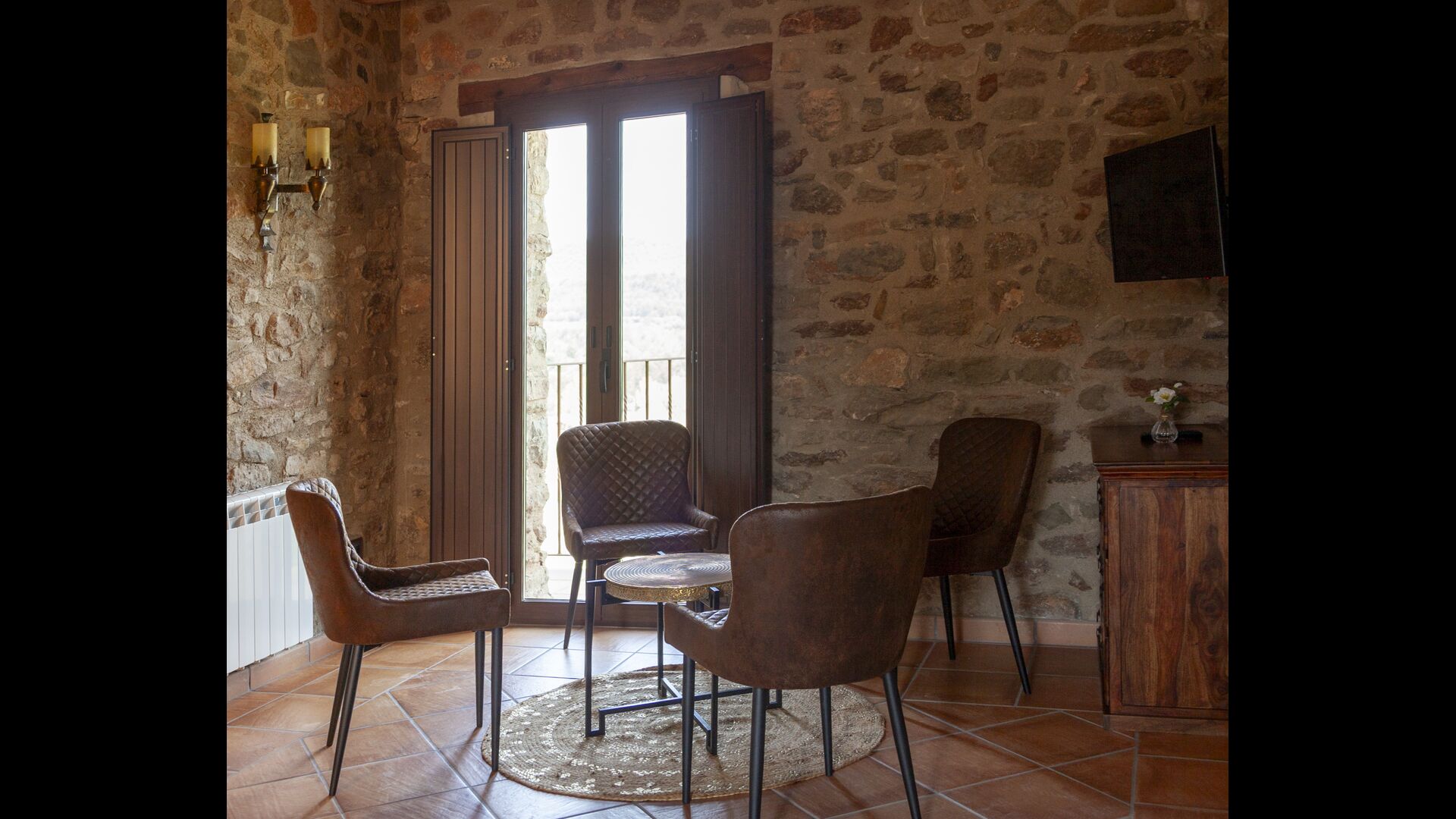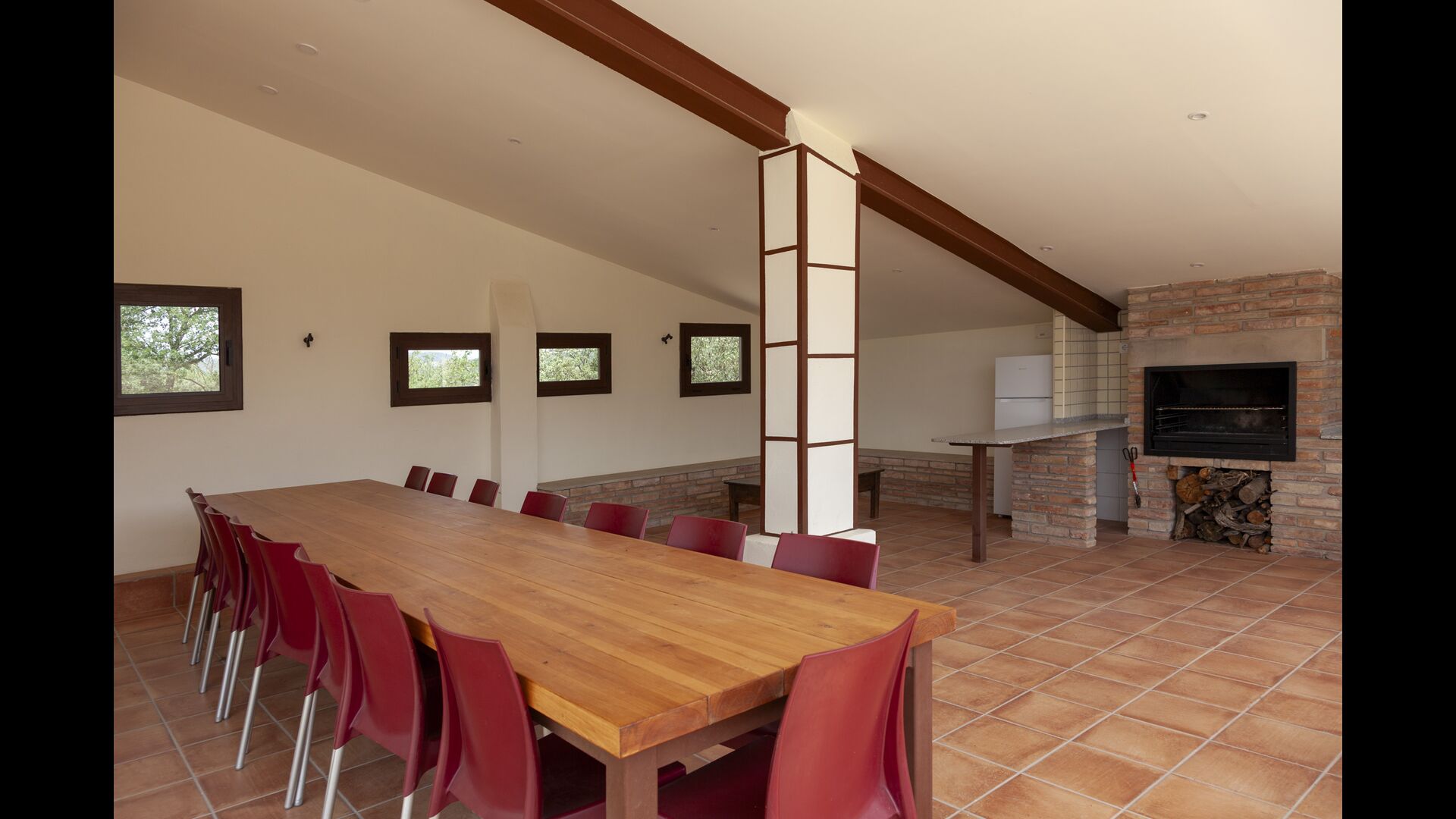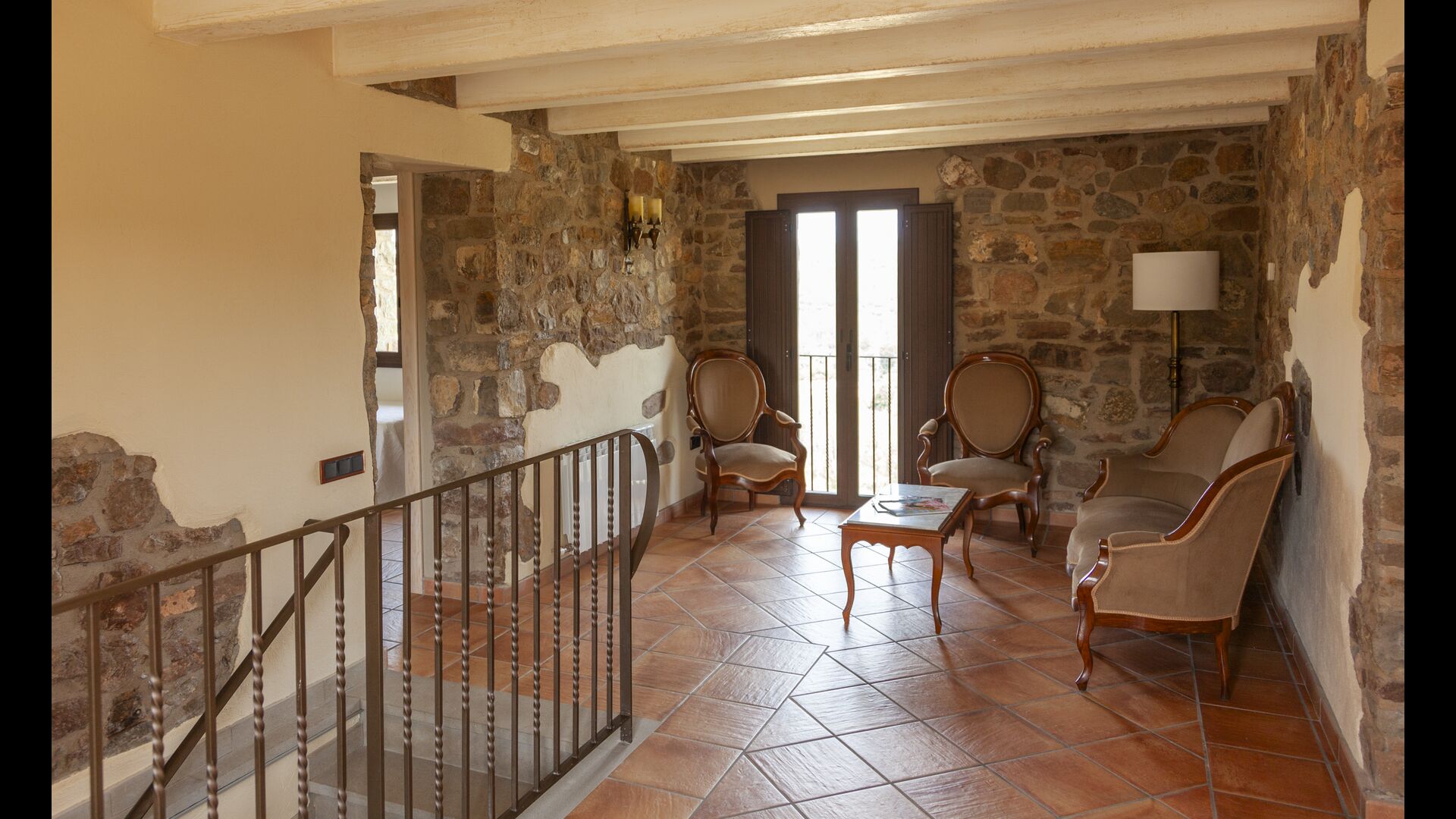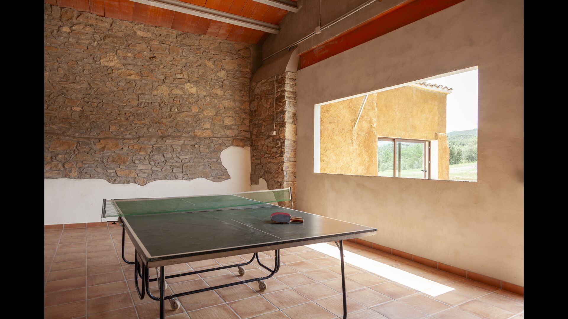 La casa está diseñada para alojar hasta 16 personas con 8 habitaciones dobles y 5 baños, garantizando una estancia espaciosa y cómoda. Sus interiores combinan a la perfección el encanto rústico con las comodidades modernas, con paredes de piedra, vigas de madera y un mobiliario elegante que crea un ambiente cálido y acogedor.