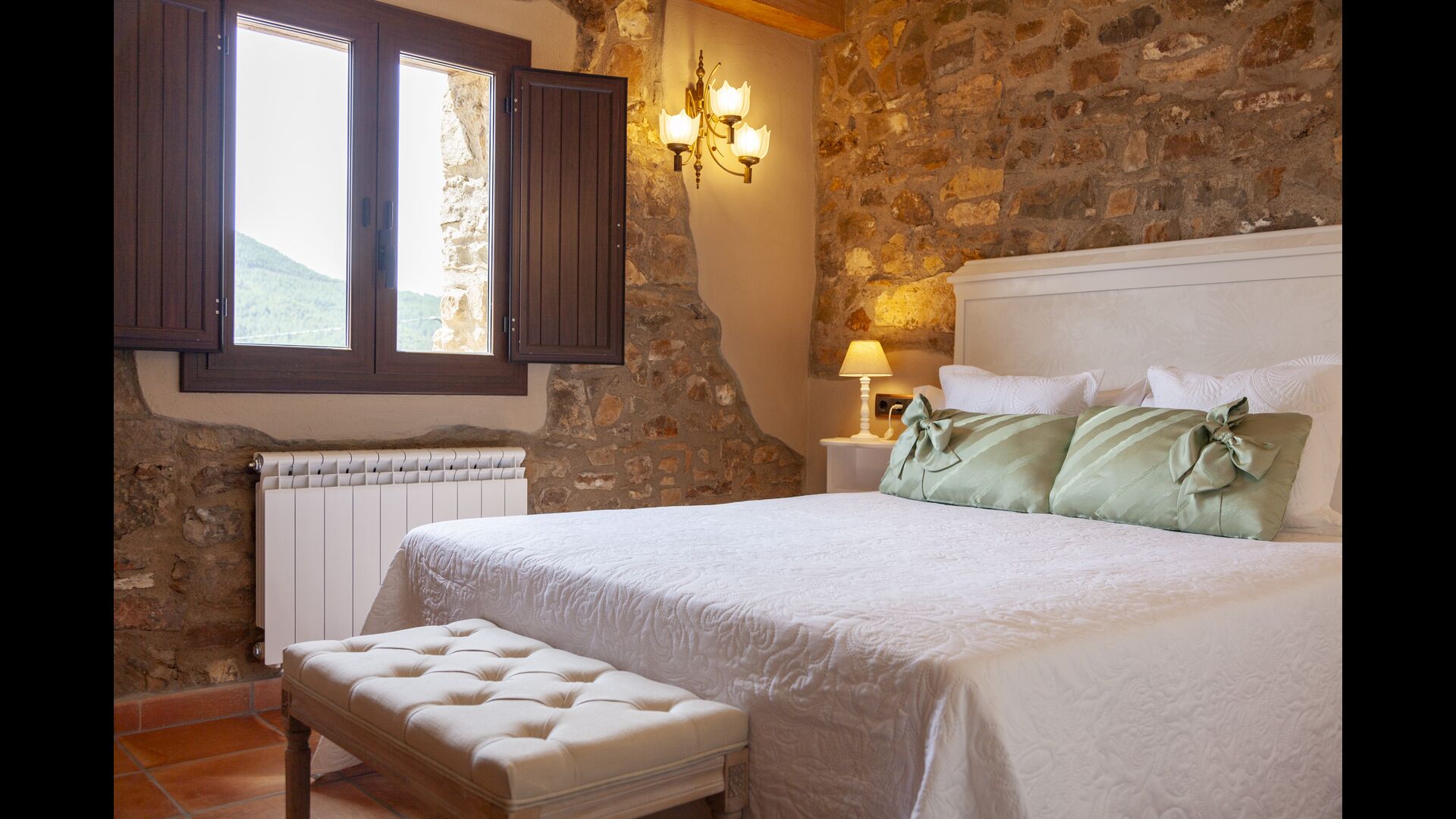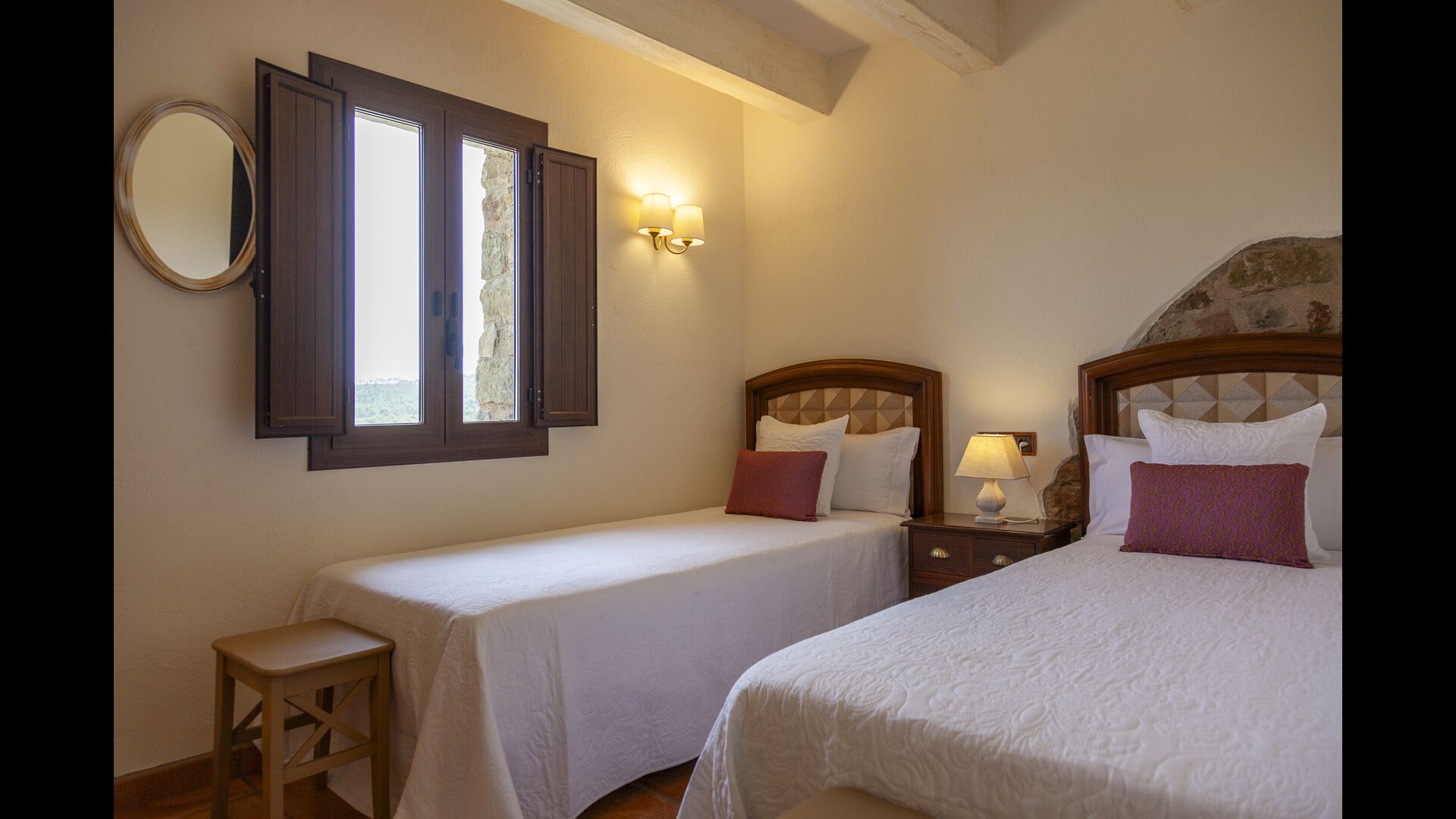 En total, la casa dispone de 8 habitaciones dobles, algunas de ellas con vistas espectaculares al paisaje. Las habitaciones están cuidadosamente decoradas, combinando elementos tradicionales con muebles modernos para ofrecer una experiencia relajante y acogedora. Los 5 baños están equipados con toallas, secadores de pelo e instalaciones modernas.