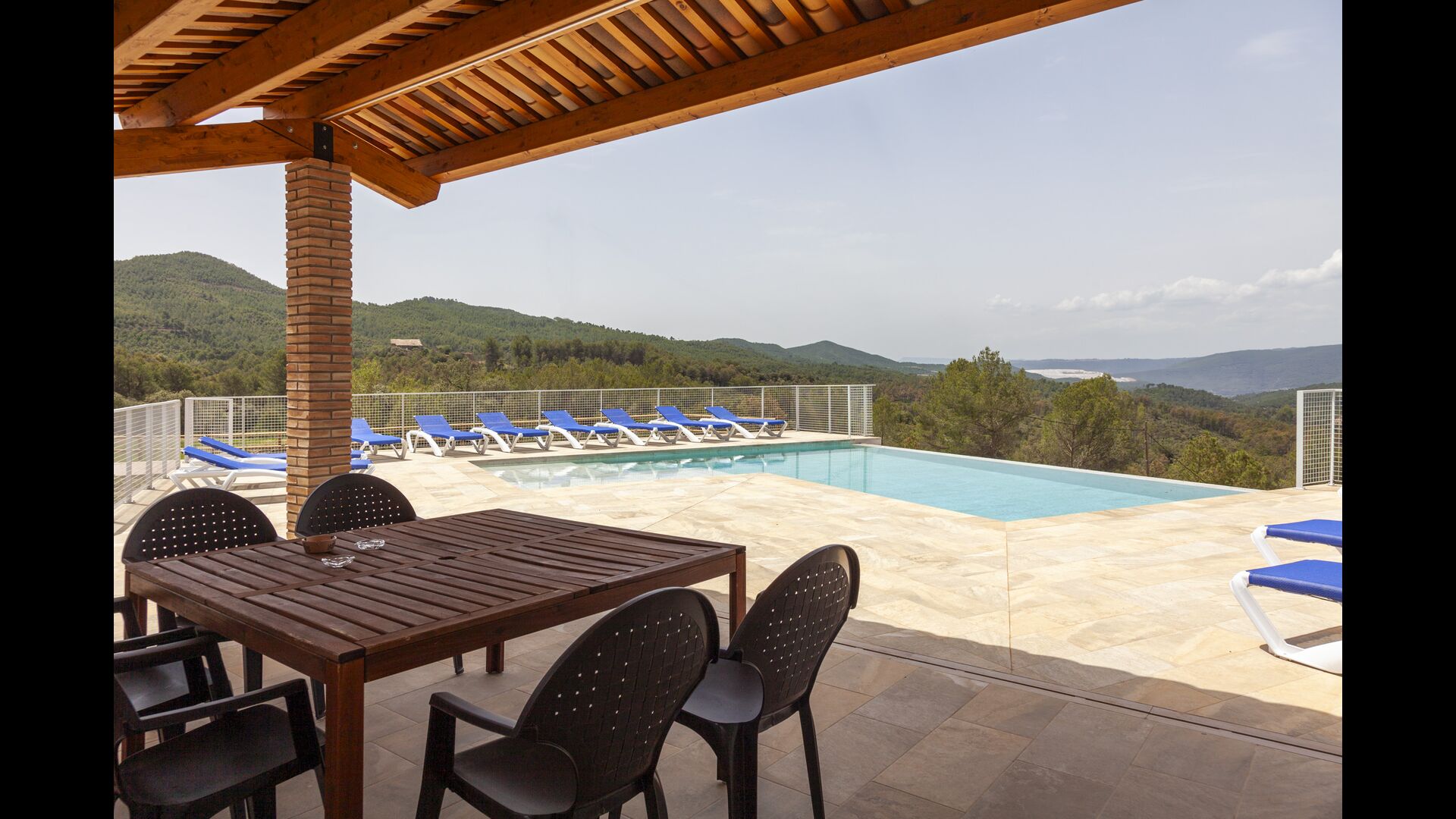 Los espacios exteriores son uno de los mayores atractivos de Casa Poteñas. La propiedad cuenta con una gran piscina infinita con tumbonas, el lugar perfecto para refrescarse mientras se disfruta de las vistas panorámicas. Una terraza cubierta con barbacoa y comedor al aire libre ofrece un entorno ideal para disfrutar de comidas al aire libre. Además, los huéspedes pueden relajarse en el amplio jardín o pasar el tiempo en la sala de juegos.