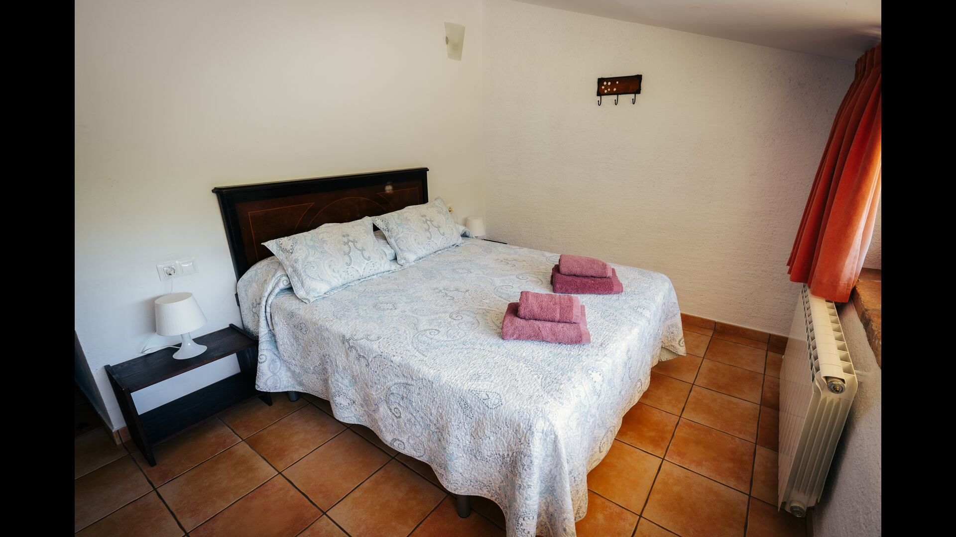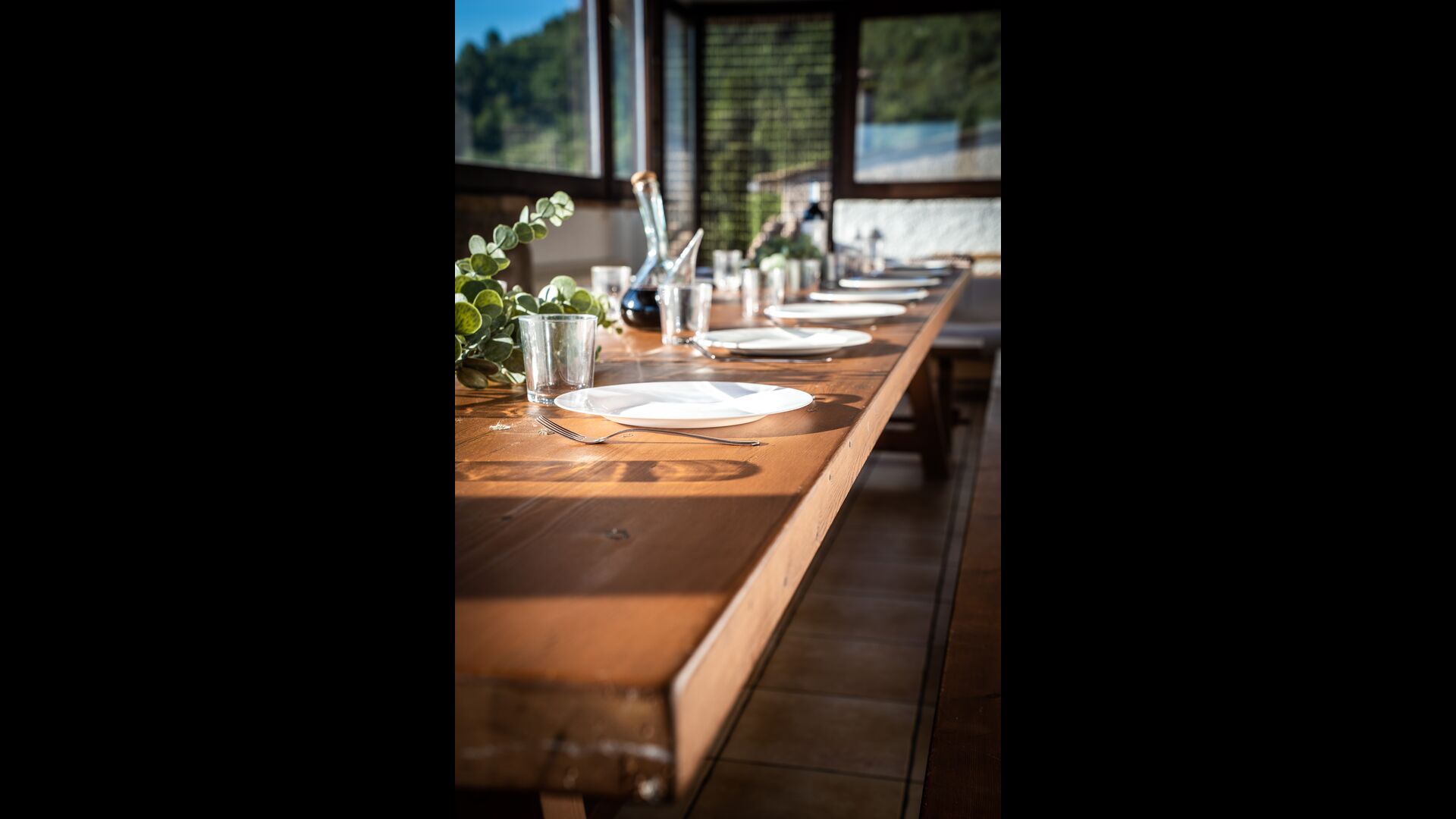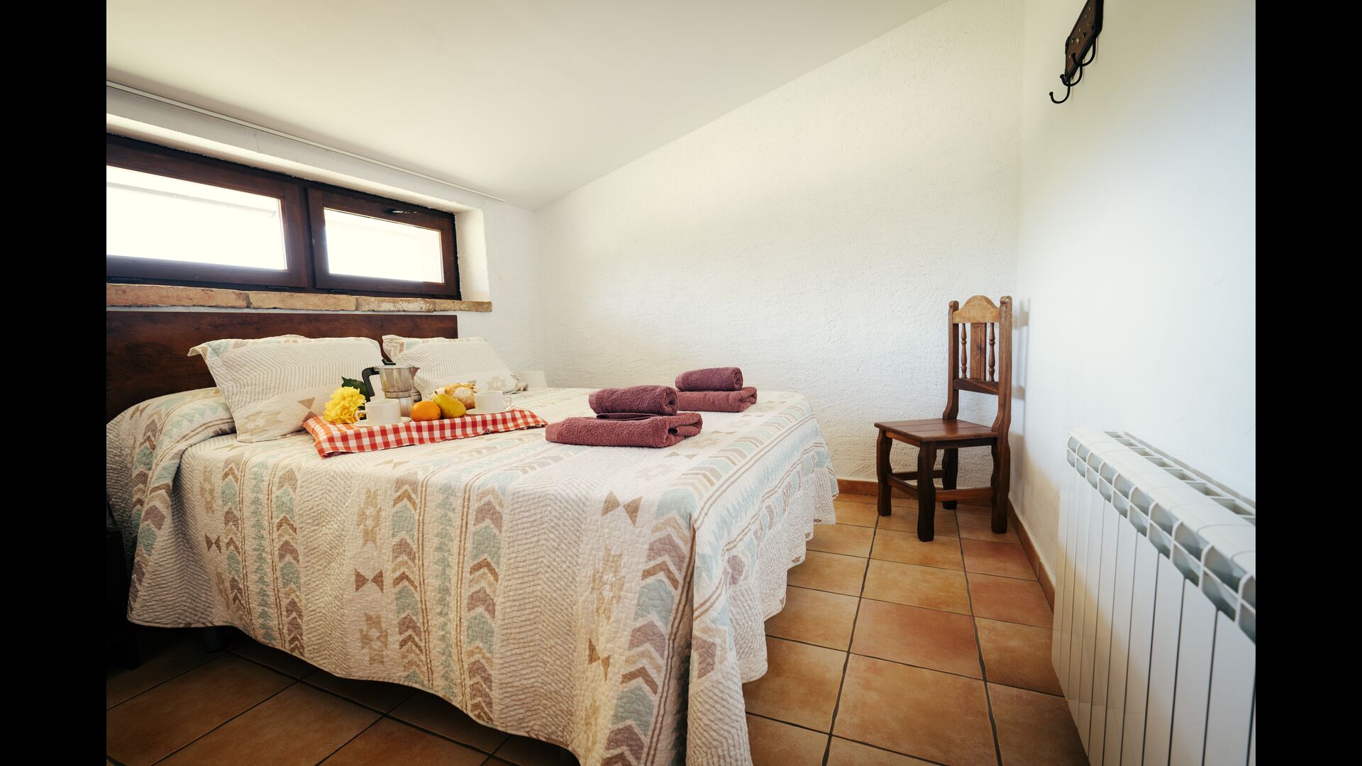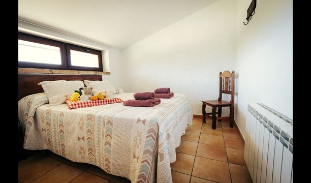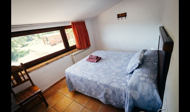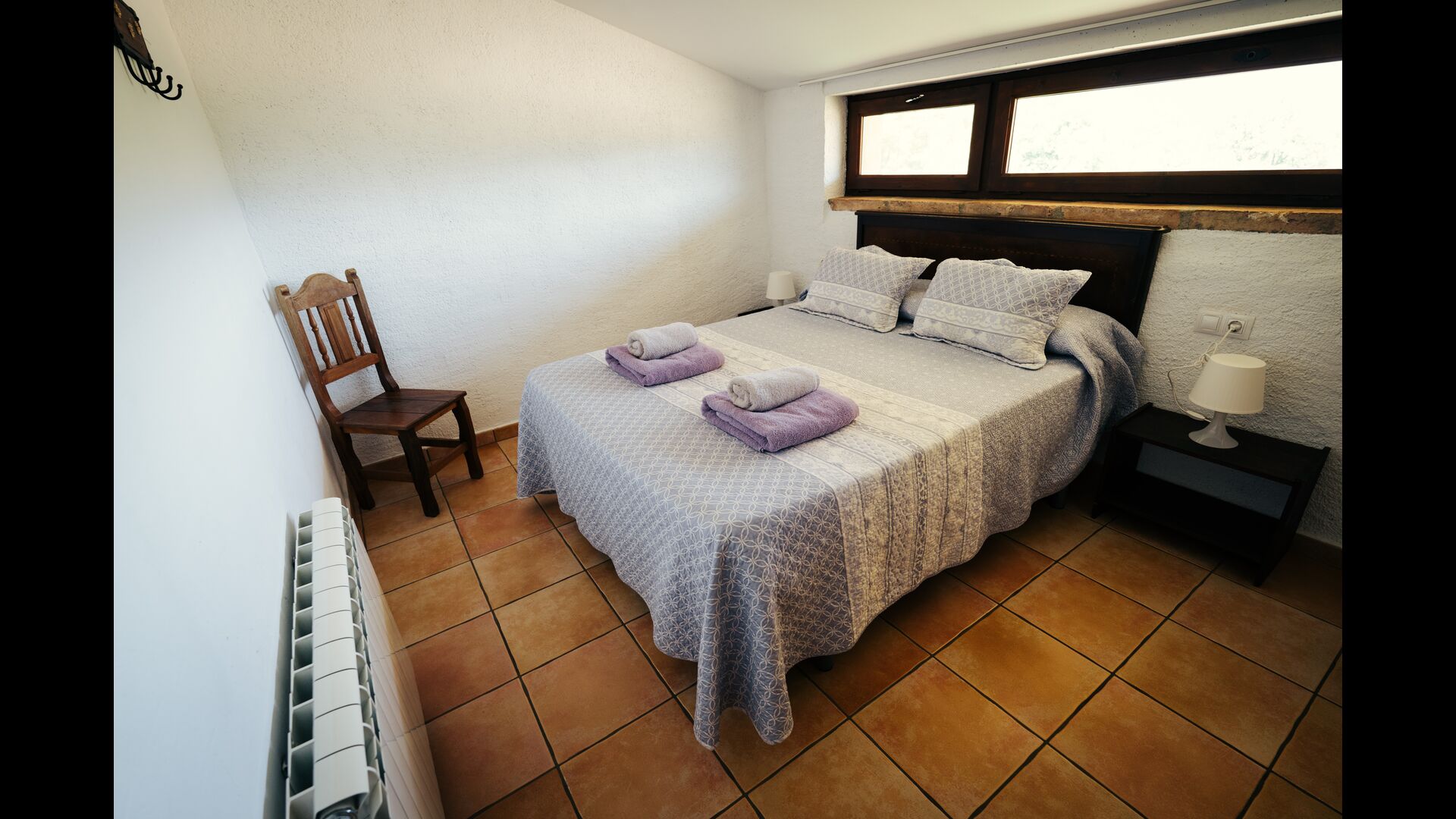 En la primera planta, se han eliminado los muros y ha surgido una amplia zona de cocina/comedor y sala de estar, aprovechando la luz que entra por las ventanas panorámicas, brindándole la < strong>vista completa sobre el paisaje con los Pirineosa lo lejos. Hay una gran mesa de comedor y una cocina abierta con todas las comodidades modernas. Cerca de las escaleras, hay dos habitaciones dobles que comparten un baño.