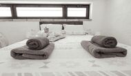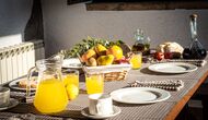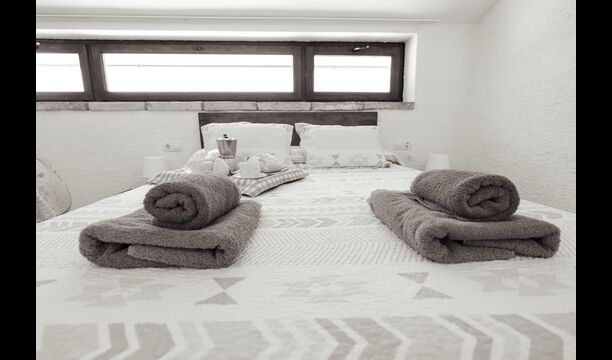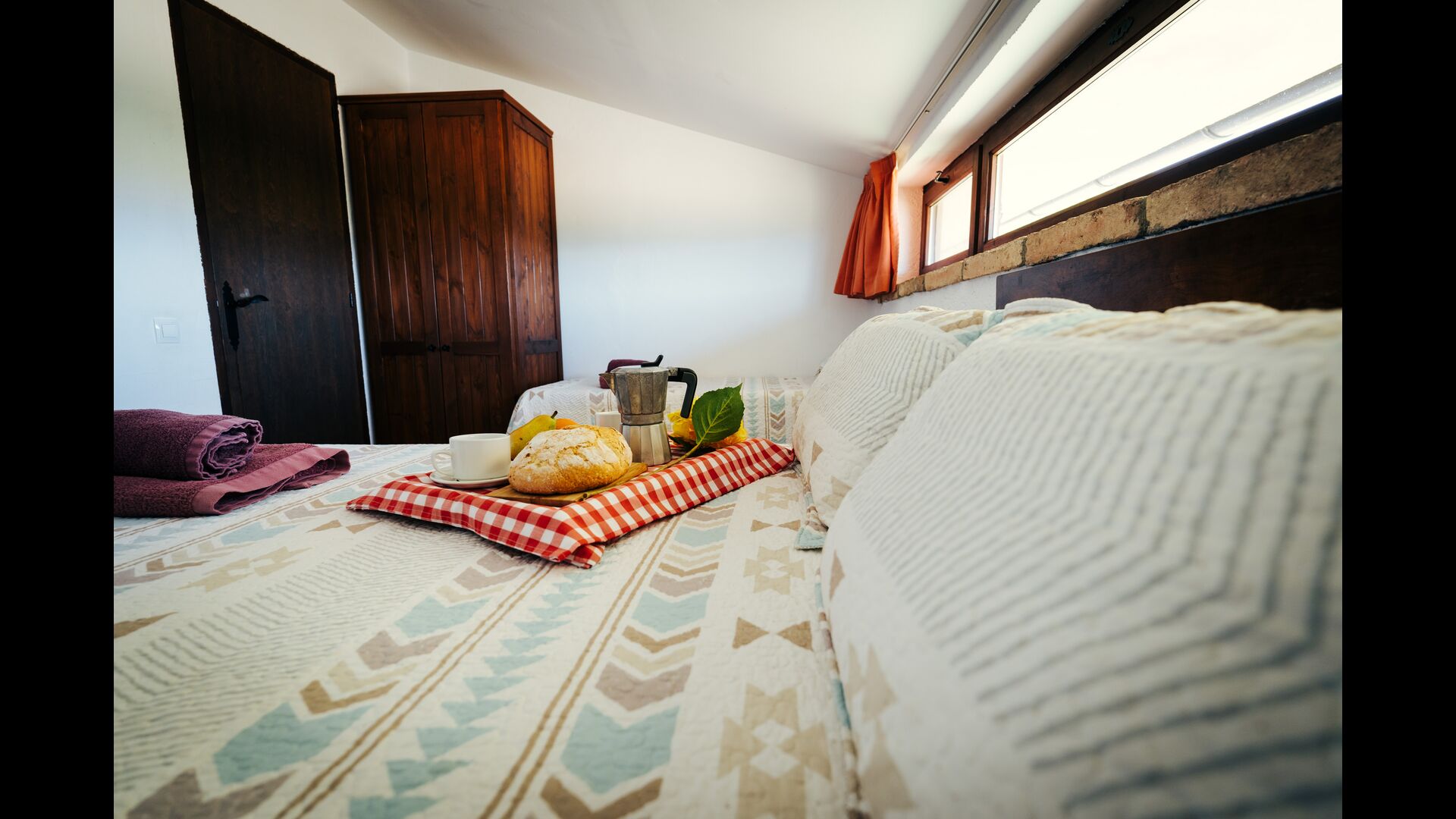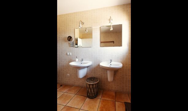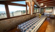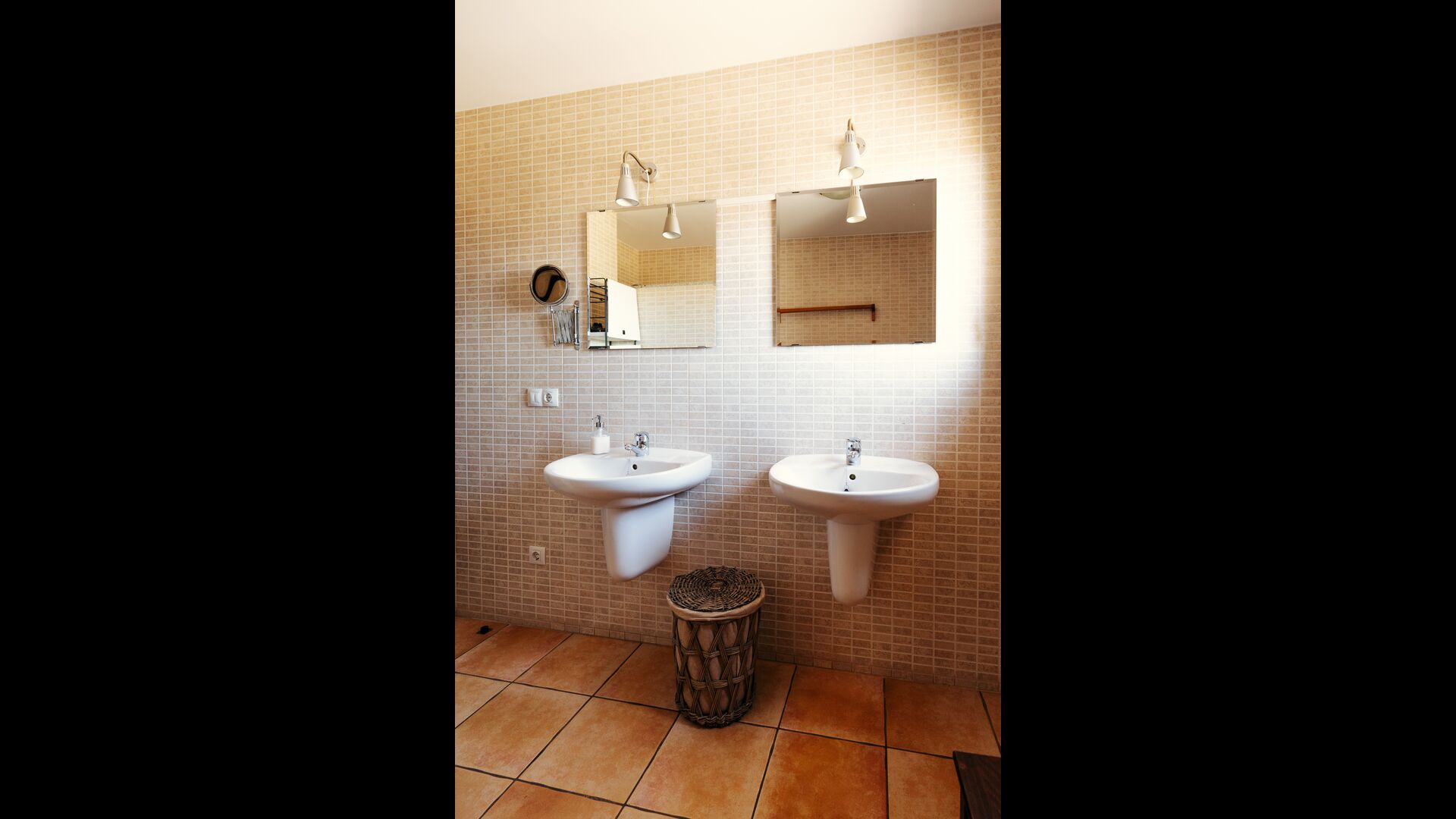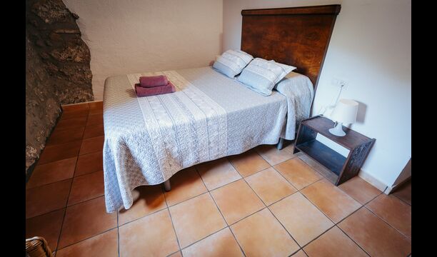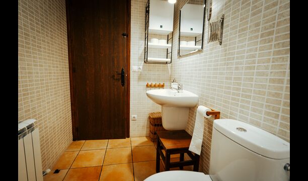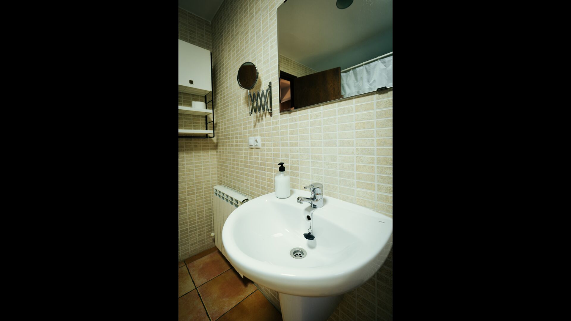 En la primera planta, se han eliminado los muros y ha surgido una amplia zona de cocina/comedor y sala de estar, aprovechando la luz que entra por las ventanas panorámicas, brindándole la < strong>vista completa sobre el paisaje con los Pirineosa lo lejos. Hay una gran mesa de comedor y una cocina abierta con todas las comodidades modernas. Cerca de las escaleras, hay dos habitaciones dobles que comparten un baño.