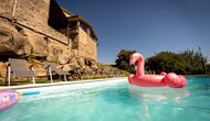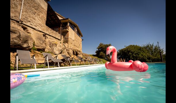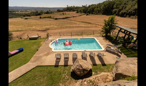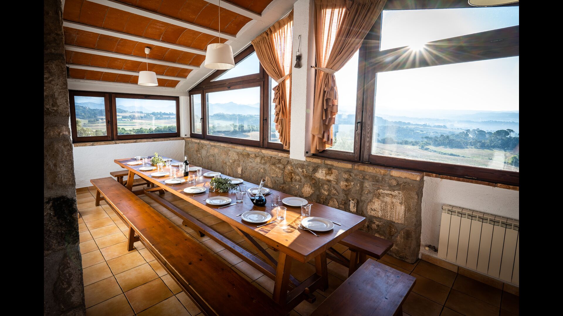 La casa de vacaciones tiene maravillosas áreas verdes al aire libre. Una de nuestras características favoritas es la gran terraza con una cocina al aire libre y barbacoa. La terraza tiene una vista espectacular, y es un lugar maravilloso para disfrutar de una buena comida y una bebida en las cálidas noches catalanas.Otra área al aire libre donde probablemente pasarás todo tu tiempo, es la maravillosa área de la piscina . El área está cerrada por una puerta para la protección de los niños pequeños y se encuentra debajo de la casa. Para los miembros activos del grupo, puedes encontrar una red de baloncesto en el frente de la casa.