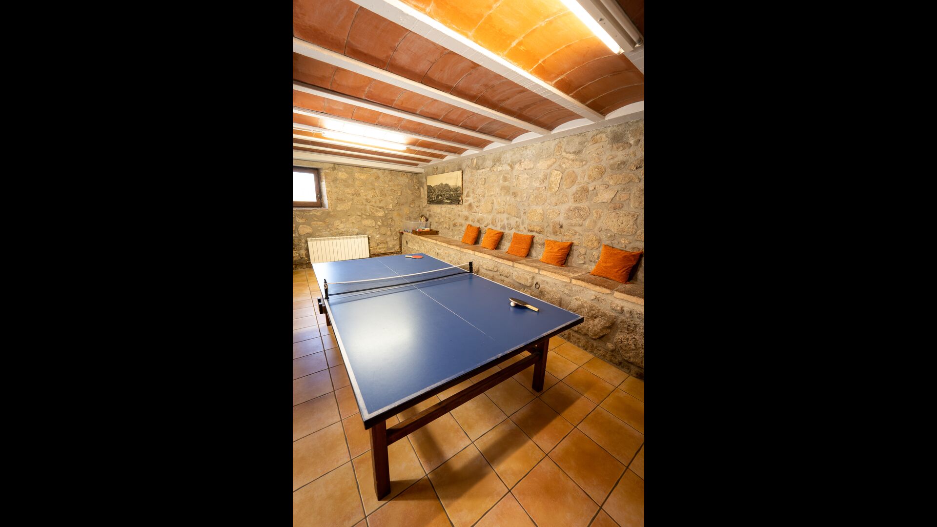 En la planta baja, los antiguos establos (hace muchos años los animales se guardaban en la planta baja de la casa) se han transformado en una zona de entrada que también cuenta con una fantásticasala de juegos con mesa de ping-pong</strong > y algunos trasteros. El lugar perfecto para que los niños pasen el rato y se diviertan.