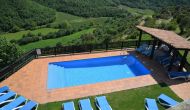 Destaca la zona de piscina de la vivienda vacacional. En primer lugar, la piscina es grande, con un tamaño de menos de 32 m2, y en segundo lugar, la vista es indescriptiblemente buena, porque la piscina llega al borde de la bandeja. Se ha puesto una valla por razones de seguridad. Además, hay tumbonas para todos los huéspedes de la casa. Justo al lado de la piscina hay una terraza cubierta, que probablemente será el punto de encuentro de las vacaciones. También hay otra terraza con acceso directo a la cocina. Aquí podrás disfrutar de la comida casera durante las largas y cálidas veladas catalanas.