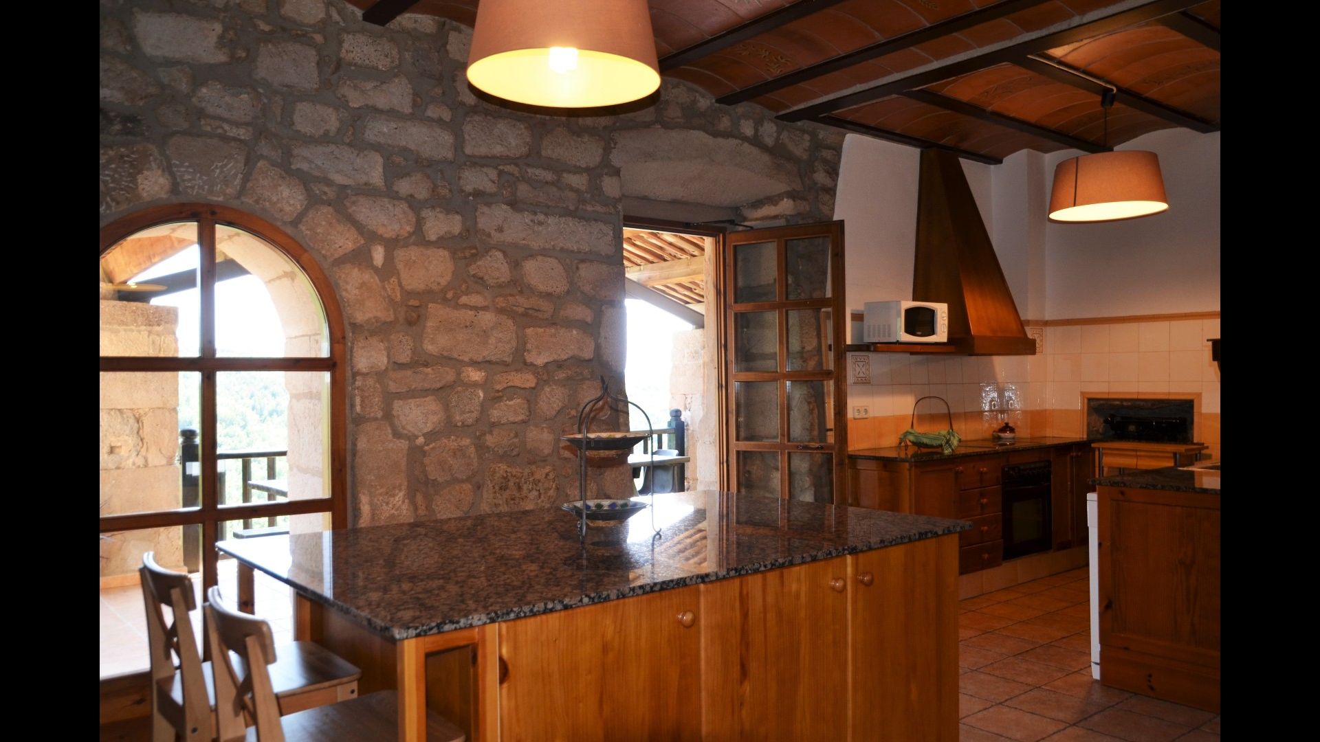 La hermosa y bien equipada cocina tiene, entre otros, microondas, lavavajillas, horno y mucho más. Incluso es posible reservar un chef privado una noche; es muy recomendable. Conectada a la cocina hay una amplia y clásica mesa larga catalana, donde poder disfrutar de la comida. En la misma habitación hay una pequeña zona de estar con mullidos sofás.