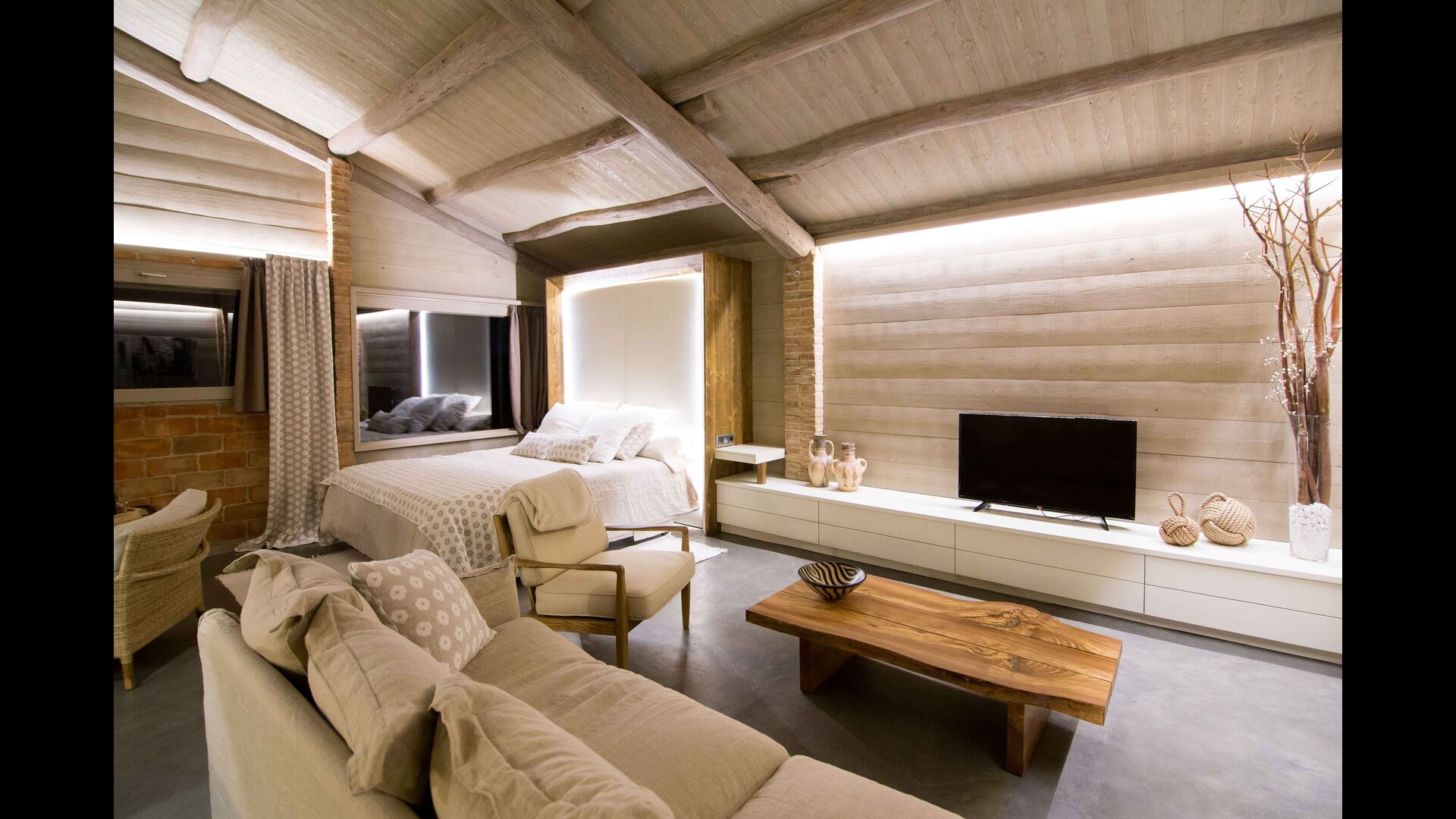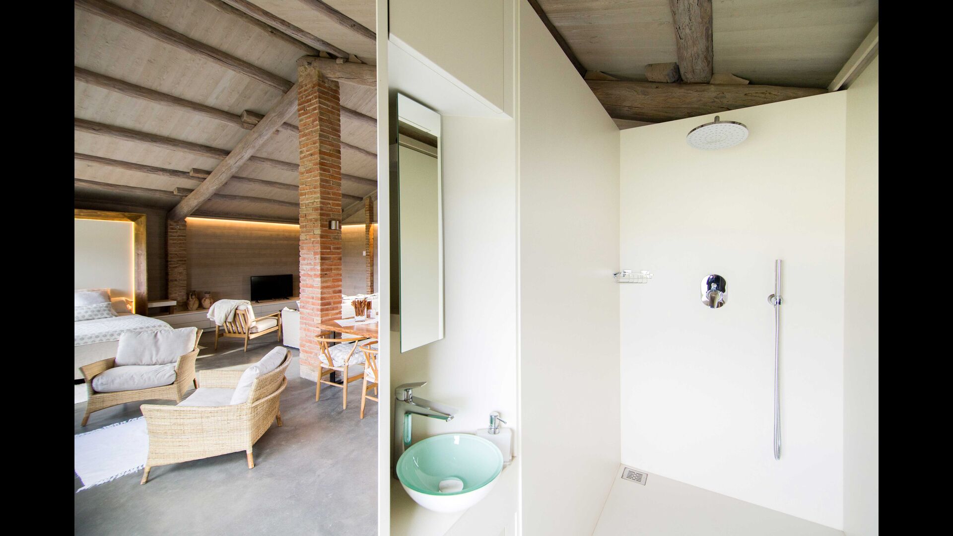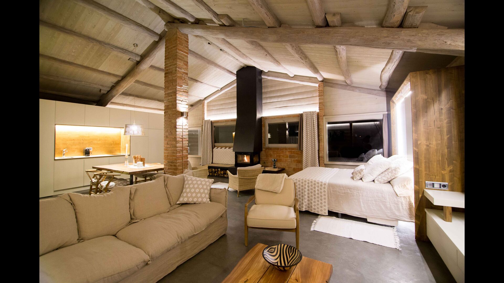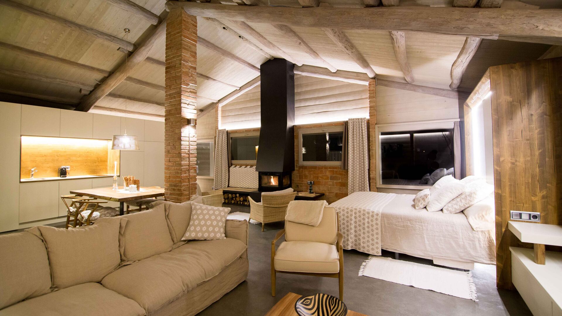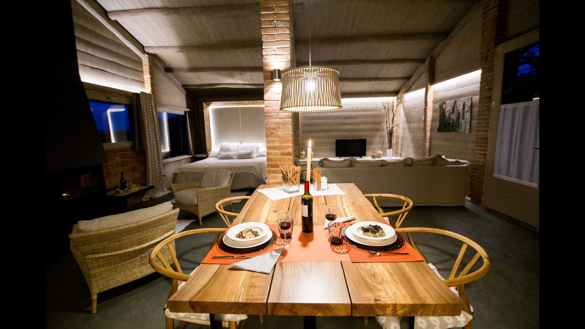 El Porxo de Casa Basque se puede alquilar conjuntamente con Casa Basque, siendo un espacio extra de la casa. Éste, se puede destinar como gran suite doble para dos personas o bien como un salón más de la casa.