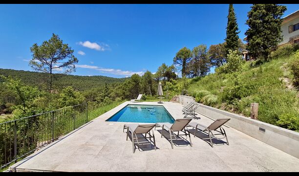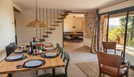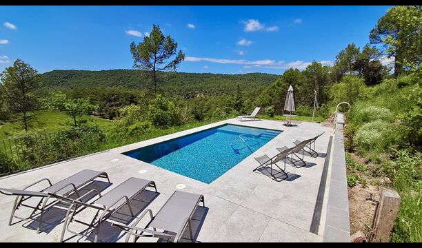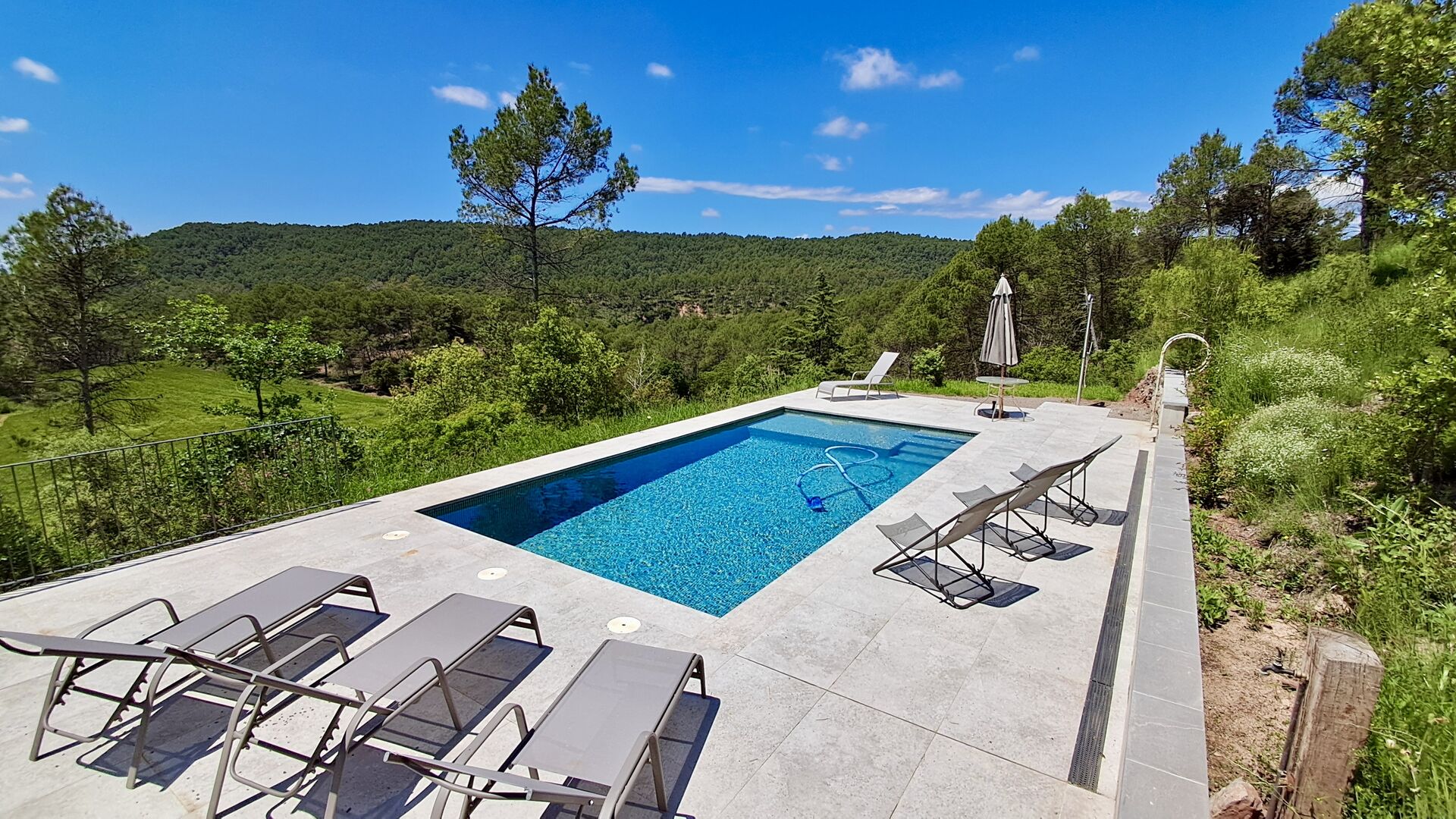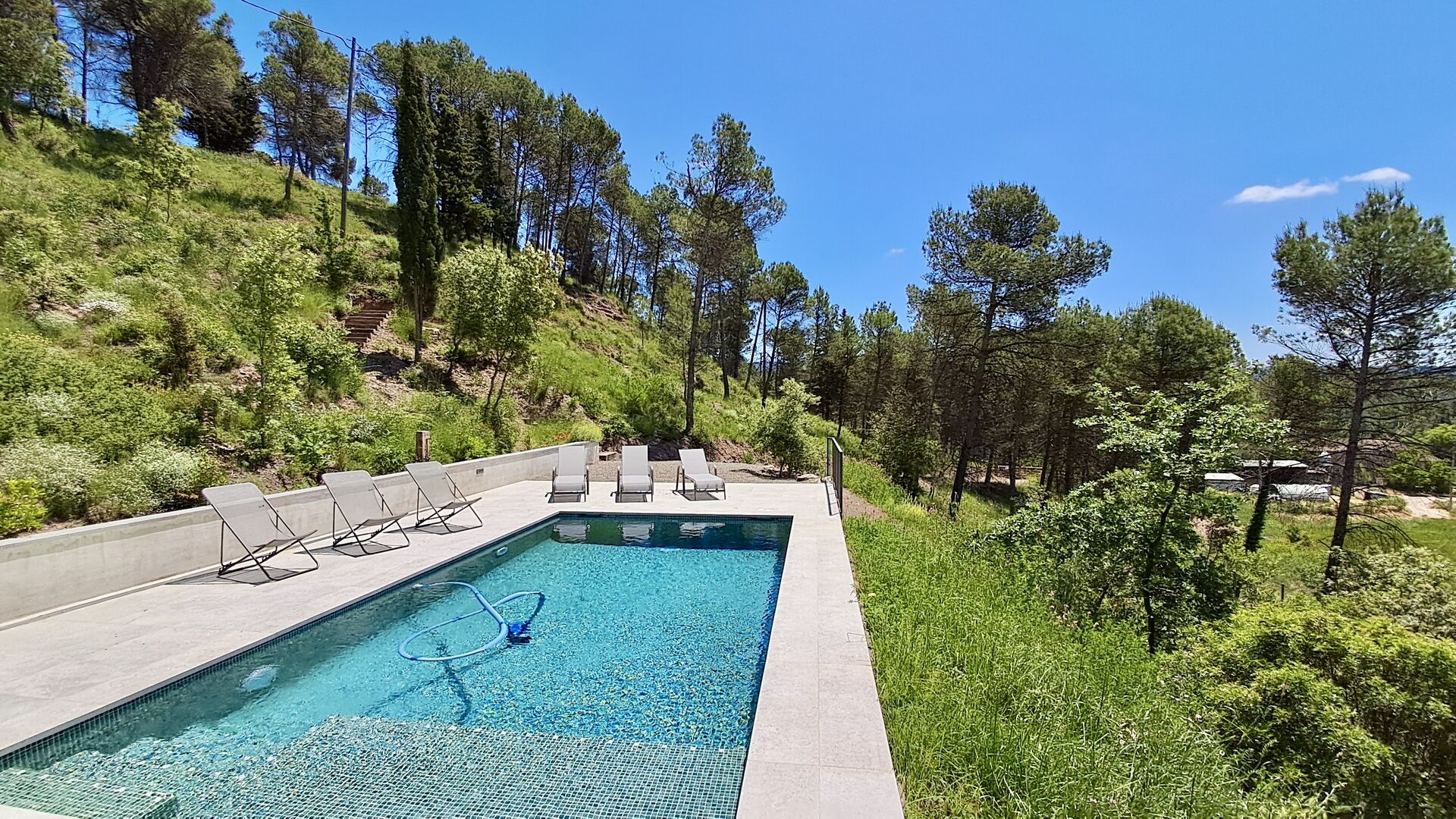 La propiedad cuenta con un amplio jardín con zonas boscosas privadas, perfecto para hacer senderismo o simplemente disfrutar de la belleza del entorno. La piscina de agua salada al aire libre ofrece una forma refrescante de refrescarse, mientras que la terraza ofrece espacio para relajarse. En el interior, la cocina totalmente equipada y los acogedores espacios de estar permiten a los huéspedes disfrutar de comidas y momentos juntos.