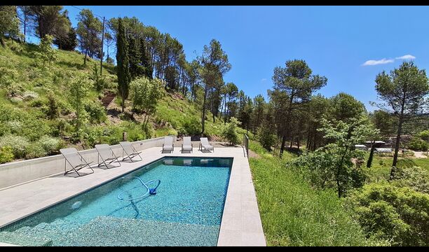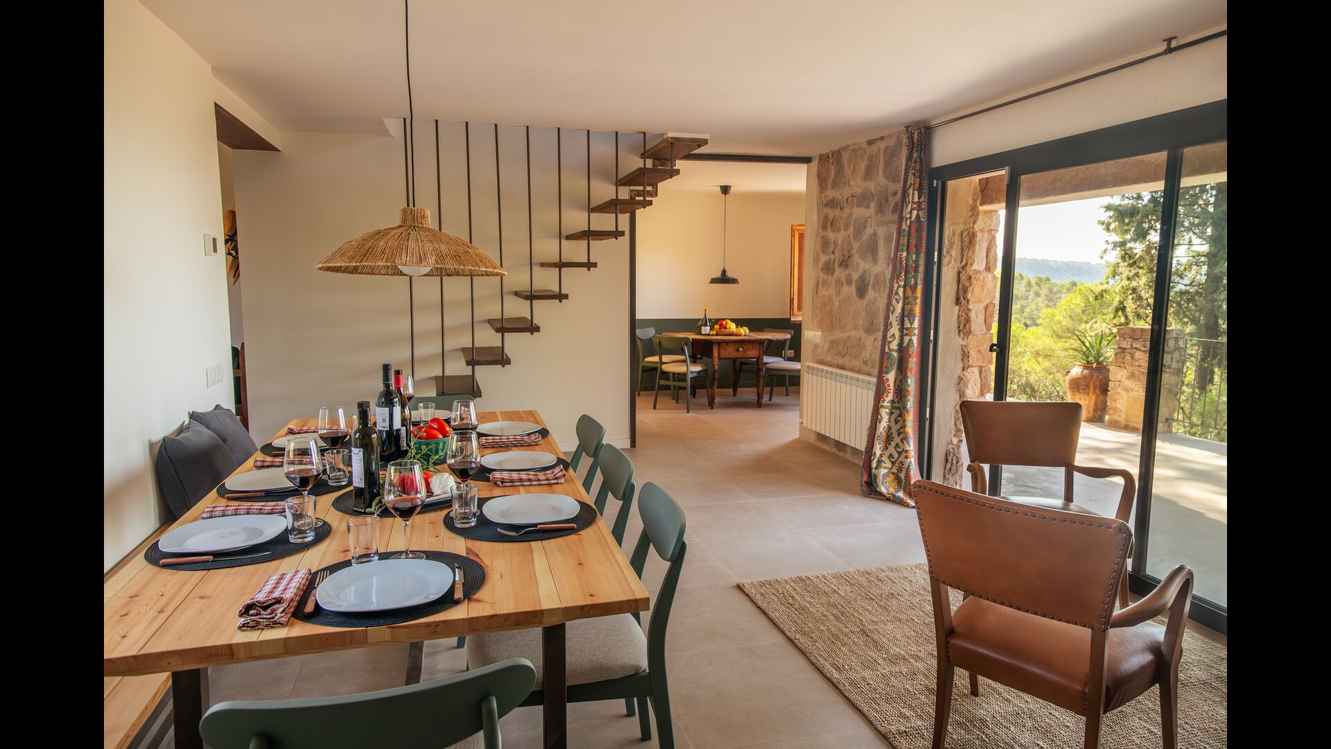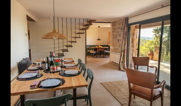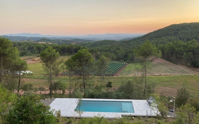 Esta impresionante casa de vacaciones ofrece la escapada perfecta al corazón de la naturaleza, situada en la región del Bages de Cataluña, cerca de los famosos viñedos de Celler Abadal. La Tor de Muñas se encuentra en una colina, con impresionantes vistas de frondosos bosques, colinas y las majestuosas montañas de Montserrat. Es el refugio ideal para familias, amigos y amantes de la naturaleza que buscan relajarse en un entorno tranquilo pero lujoso.