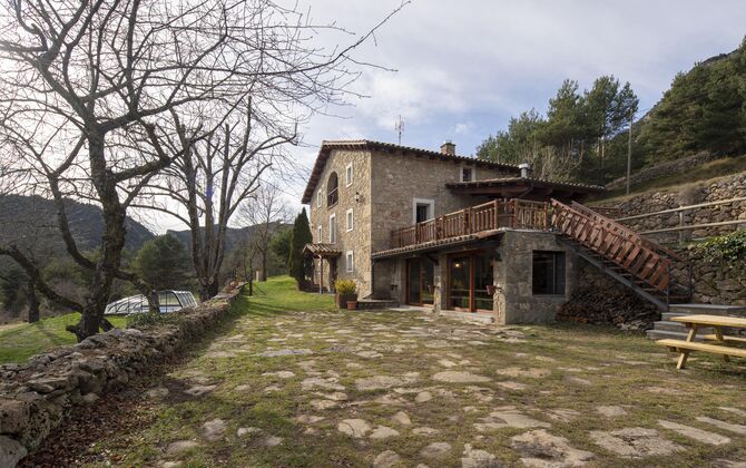 1,25 kilómetros en lo alto de la montañosa, idílica y pintoresca comarca catalana del Berguedà, se encuentra el Mas del Pintór; una hermosa casa de campo tradicional de mediados a finales del siglo XIX – cuidadosamente reformado con un toque moderno y todas las instalaciones necesarias - ¡justo en medio de algunos de los paisajes más pintorescos y la naturaleza que Cataluña tiene para ofrecer! La casa es un lugar ideal para alojarse con grupos de amigos o familiares, pudiendo alojar hasta 15 personas, equipada con 5 dormitorios y uno propio, en suite baños, televisores, chimenea y cocina para todas las necesidades básicas y más…y, en el exterior, la propiedad luce una piscina, porche (equipado con BBQ</strong > imprescindibles y más), así como un excelente solarium.
