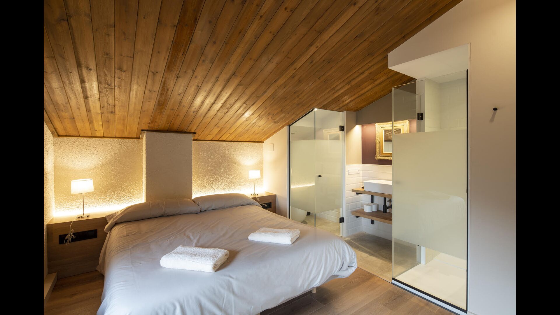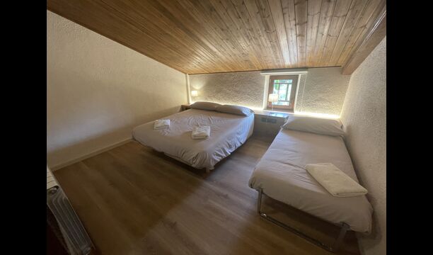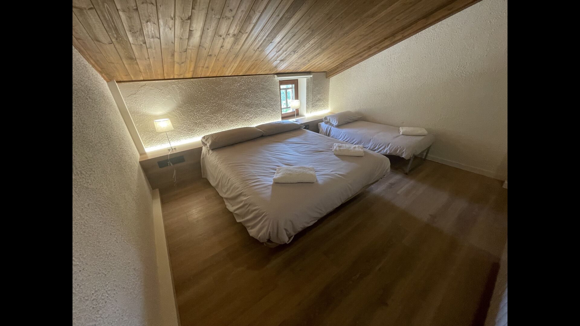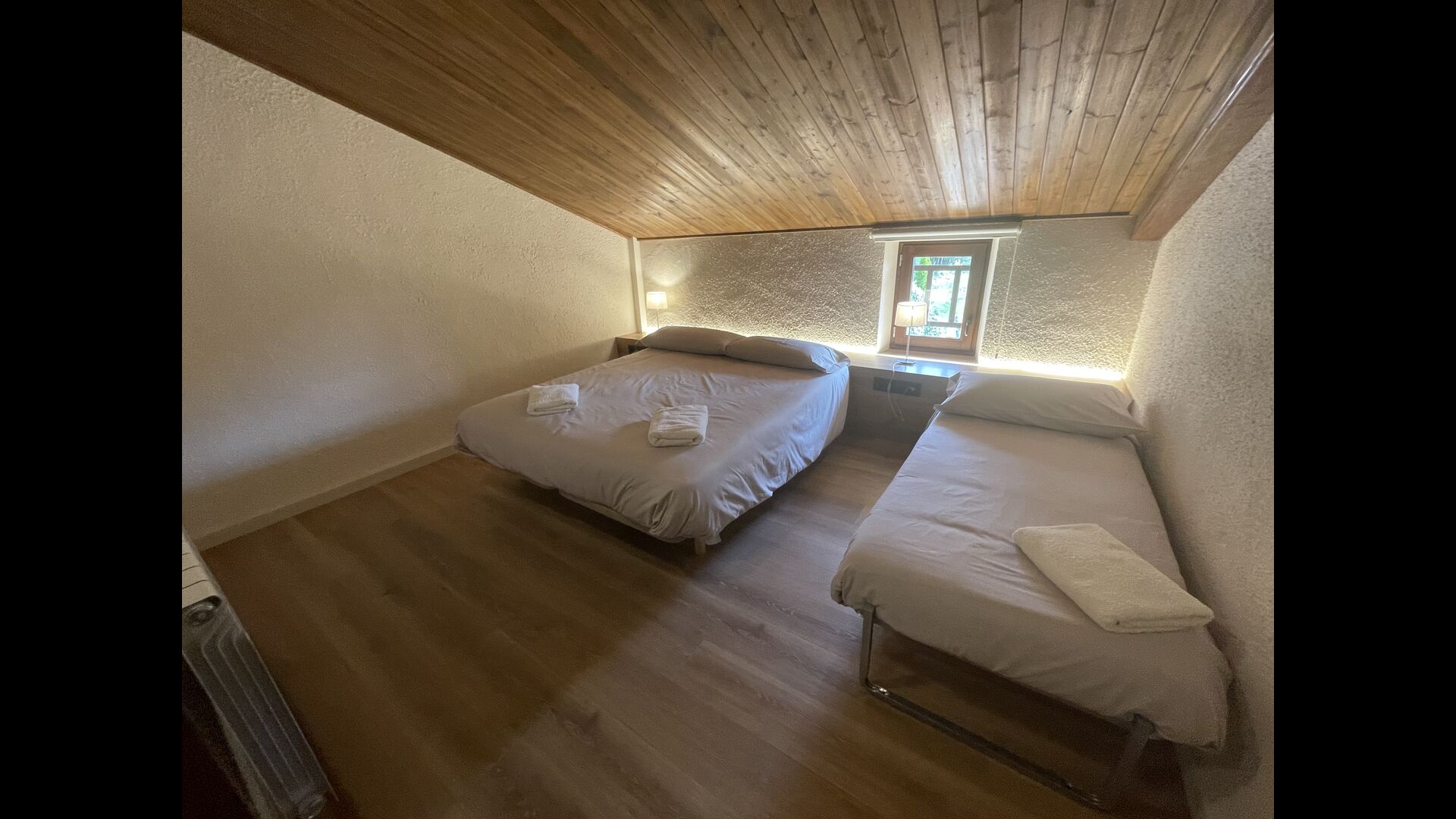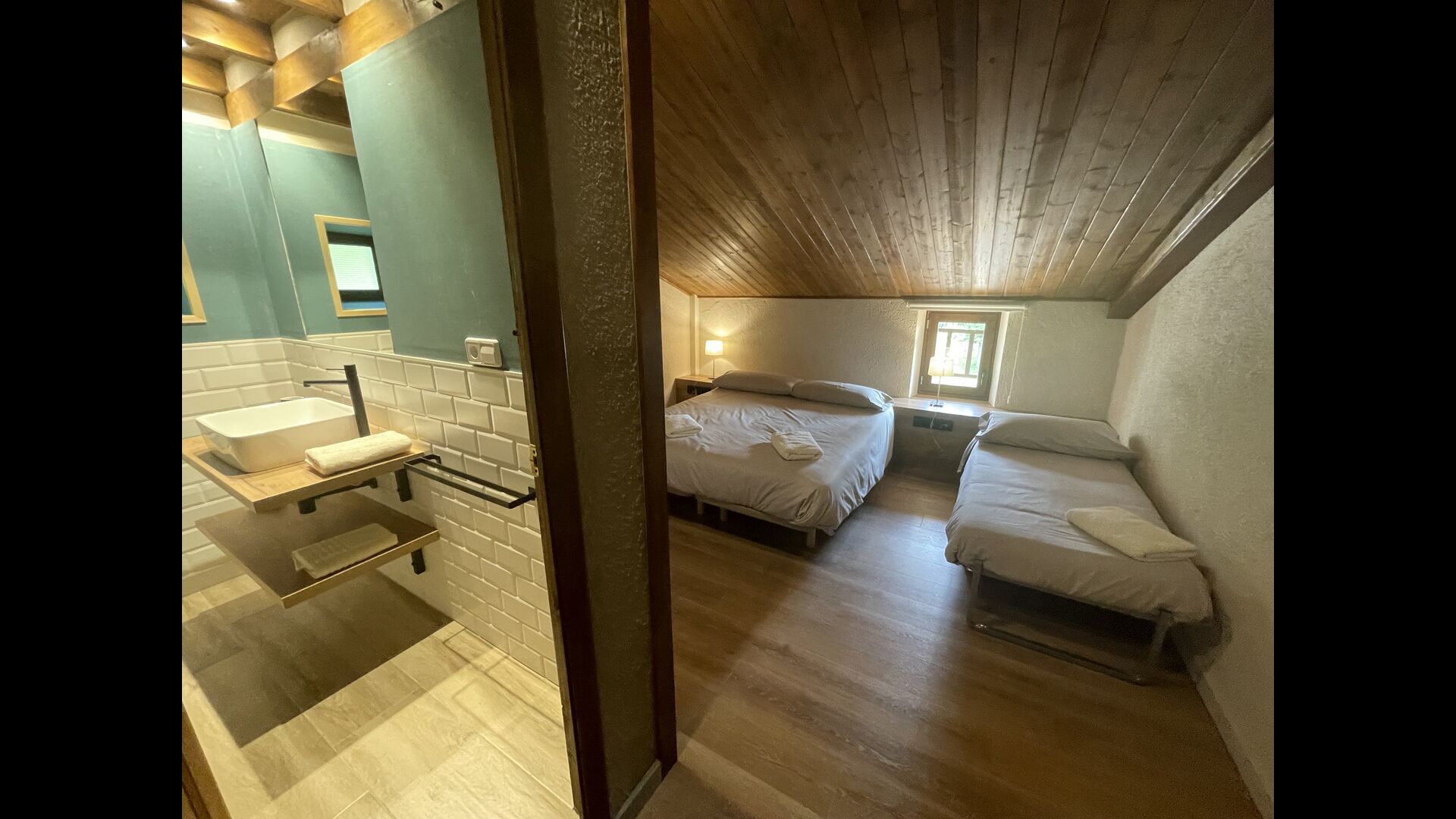 En laprimera planta, hay capacidad de alojamiento para hasta 11 personas – y excelentes vistas panorámicas. Todas las habitaciones cuentan con su propio baño privado equipado con duchas y toallas. El piso tiene 2 dormitorios dobles, 1 dormitorio doble con un sofá cama para 2 personas, y 1 dormitorio doble con un cama supletoria para una persona.