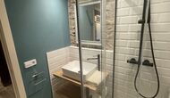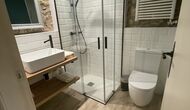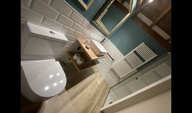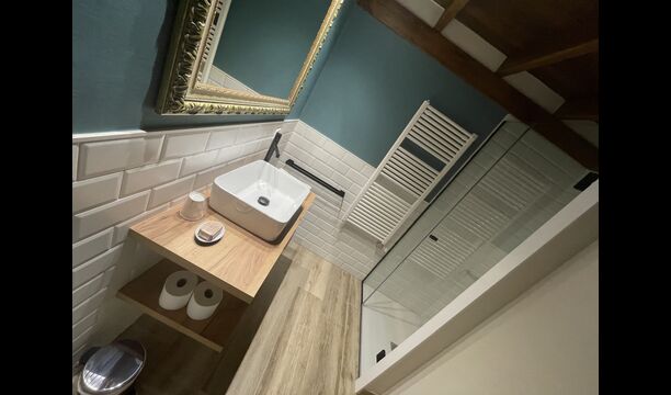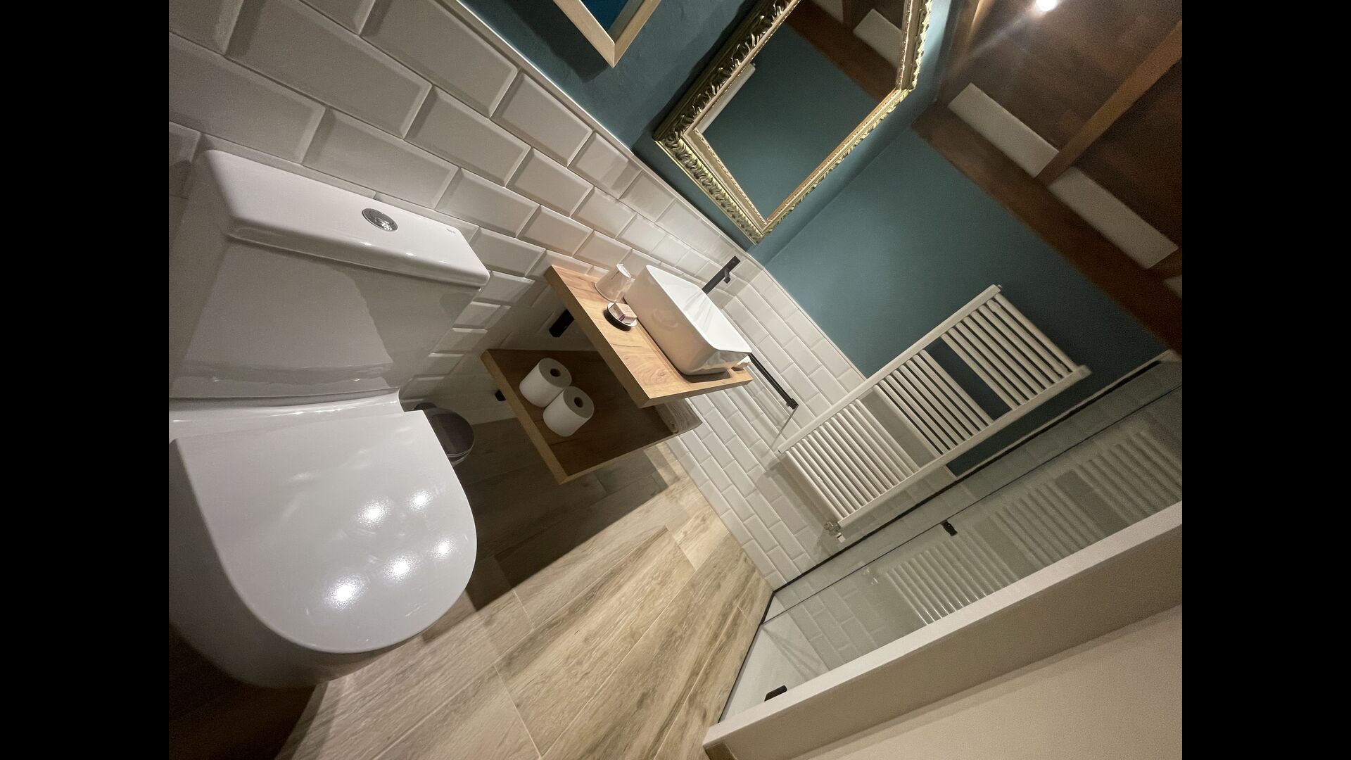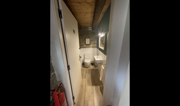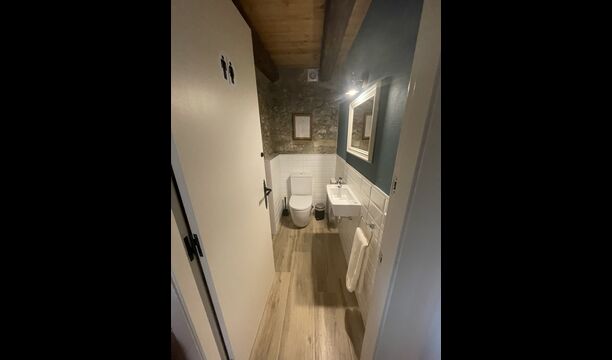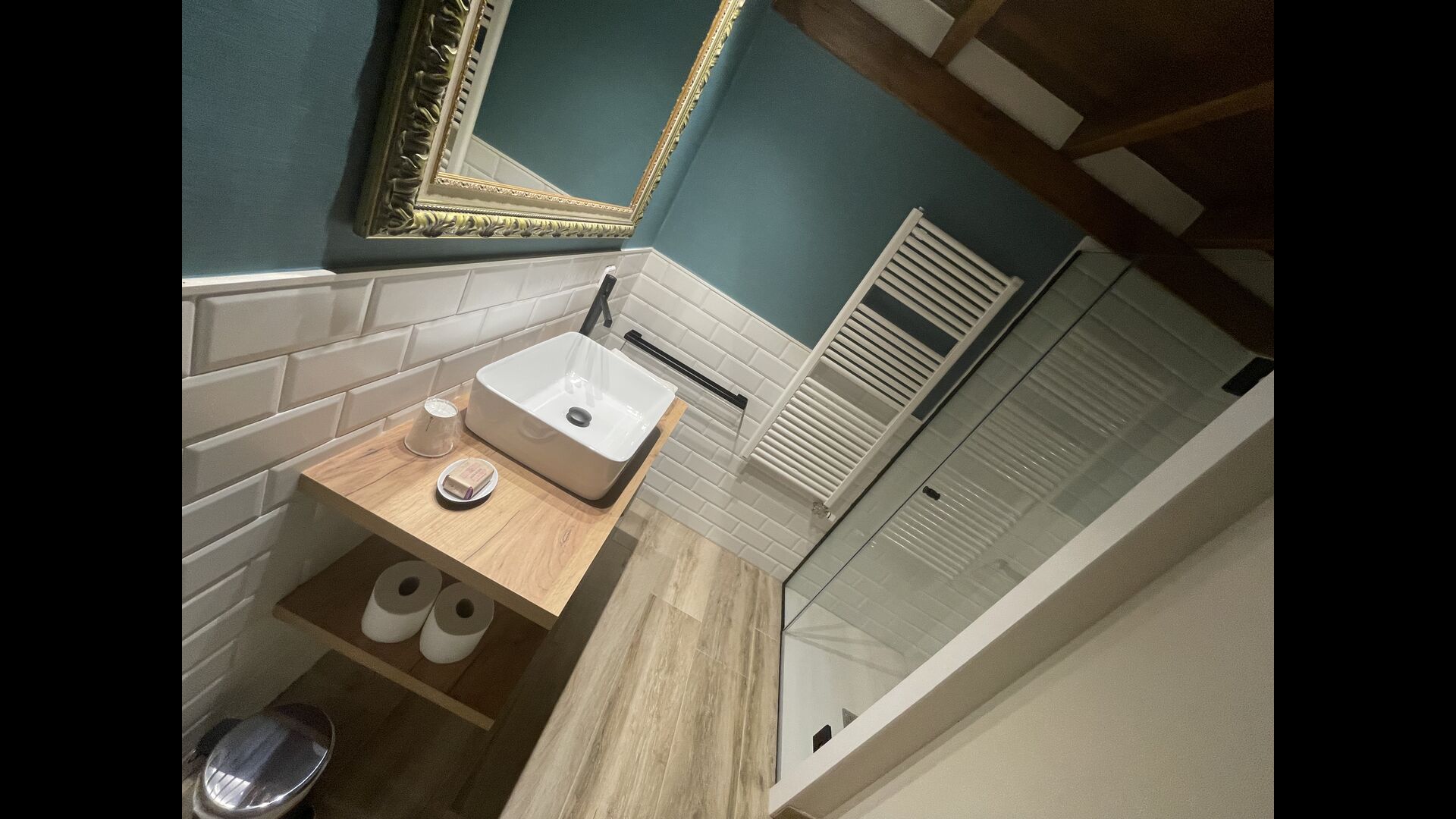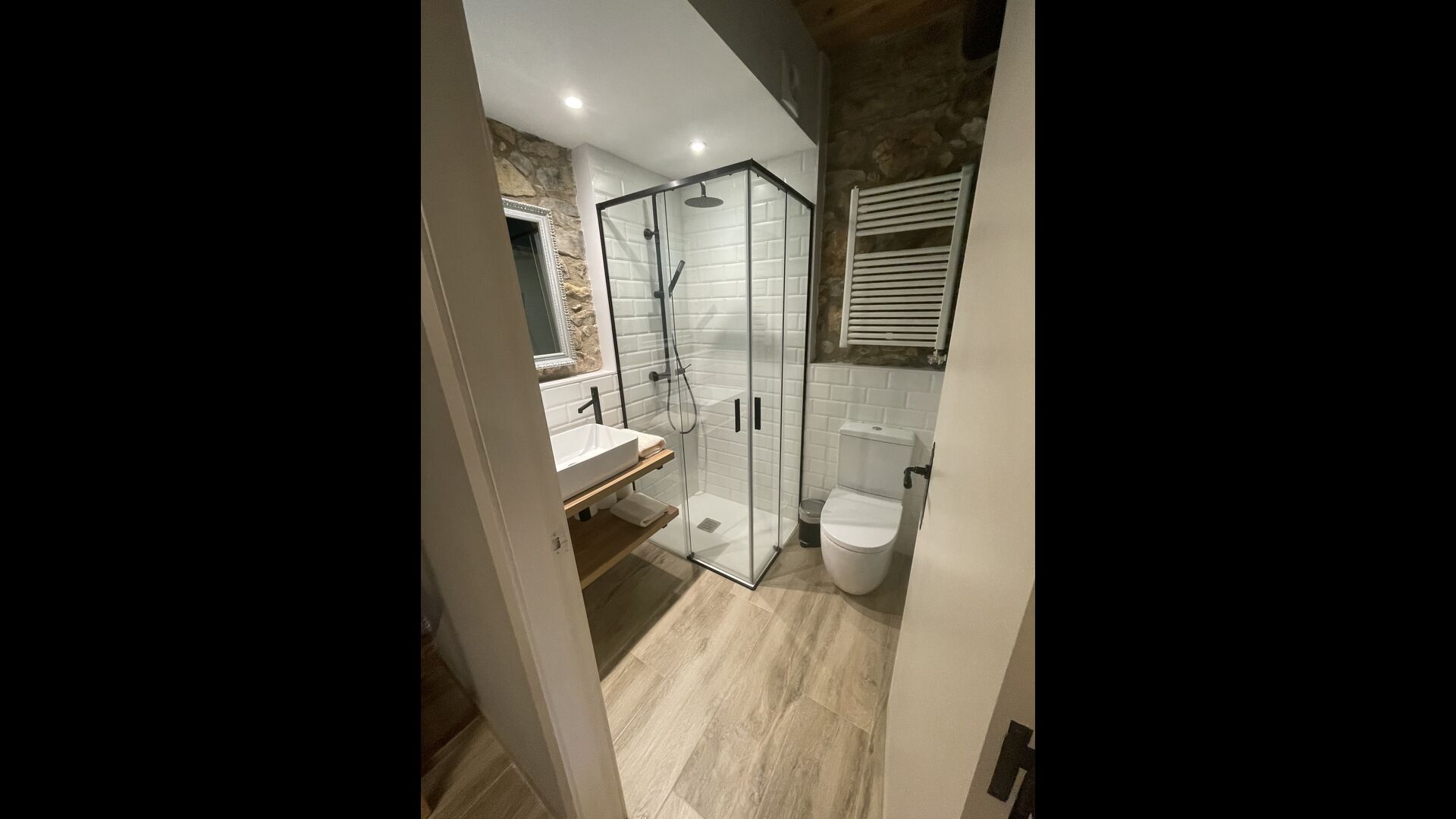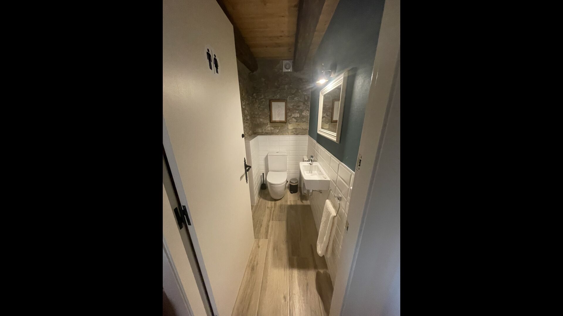 En la planta baja, encontrará un salón con smart TV, chimenea (leña incluida), mesa grande para hasta 14 comensales, un sofá cama, sillones múltiples y 4 camas individuales – anexa a una cocina equipada con cubertería y menaje de cocina completo, jabón y estropajos, dos frigoríficos, congelador, lavadora, microondas, cocina/horno eléctrico , cafetera Nespresso, tostadora, batidora, exprimidor, lavavajillas, así como vitrocerámica eléctrica y 3 fuegos. Además, la planta baja también tiene su propio baño privado con ducha.