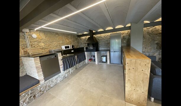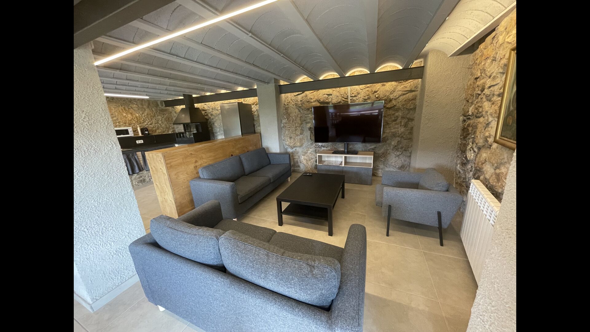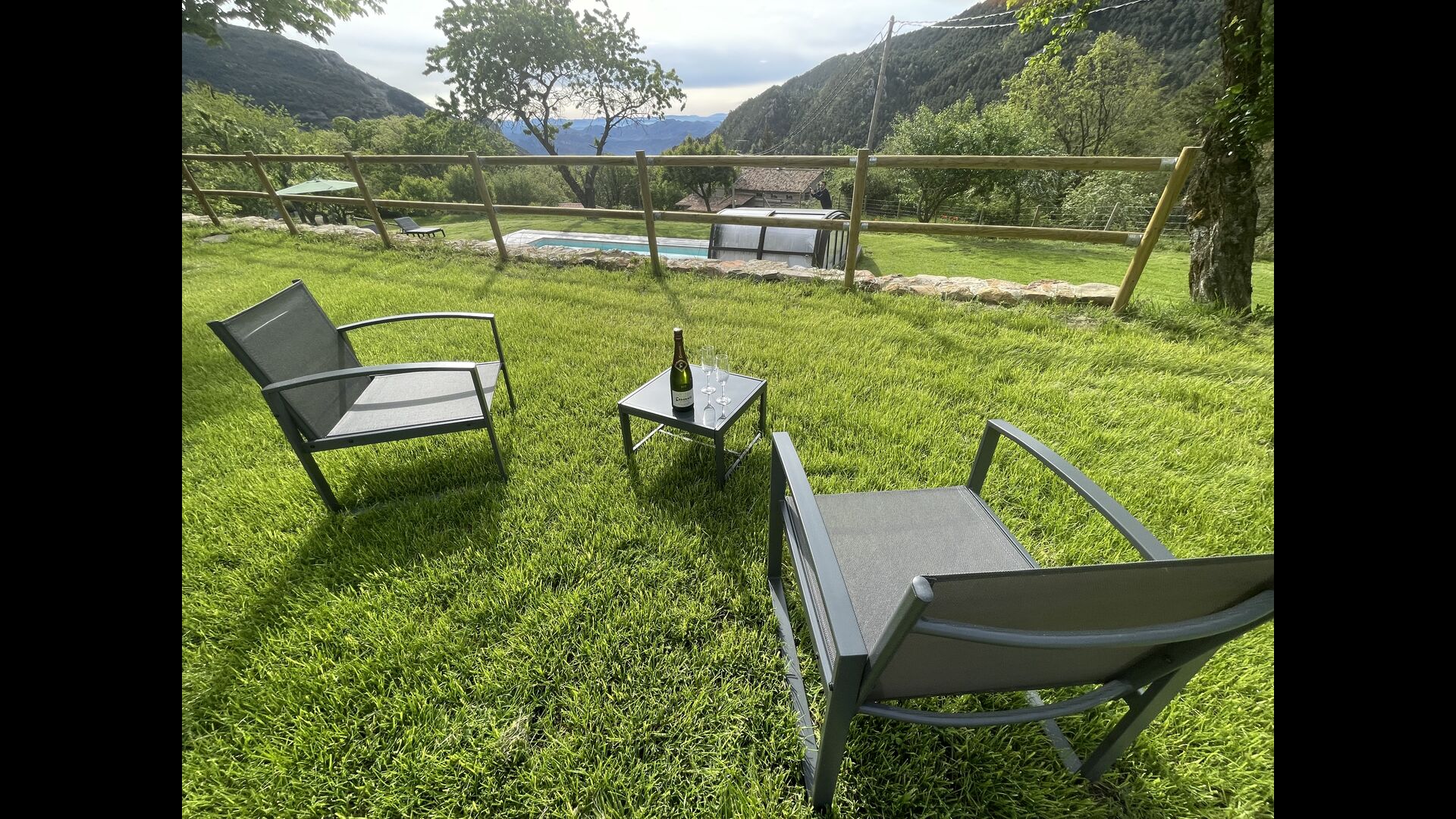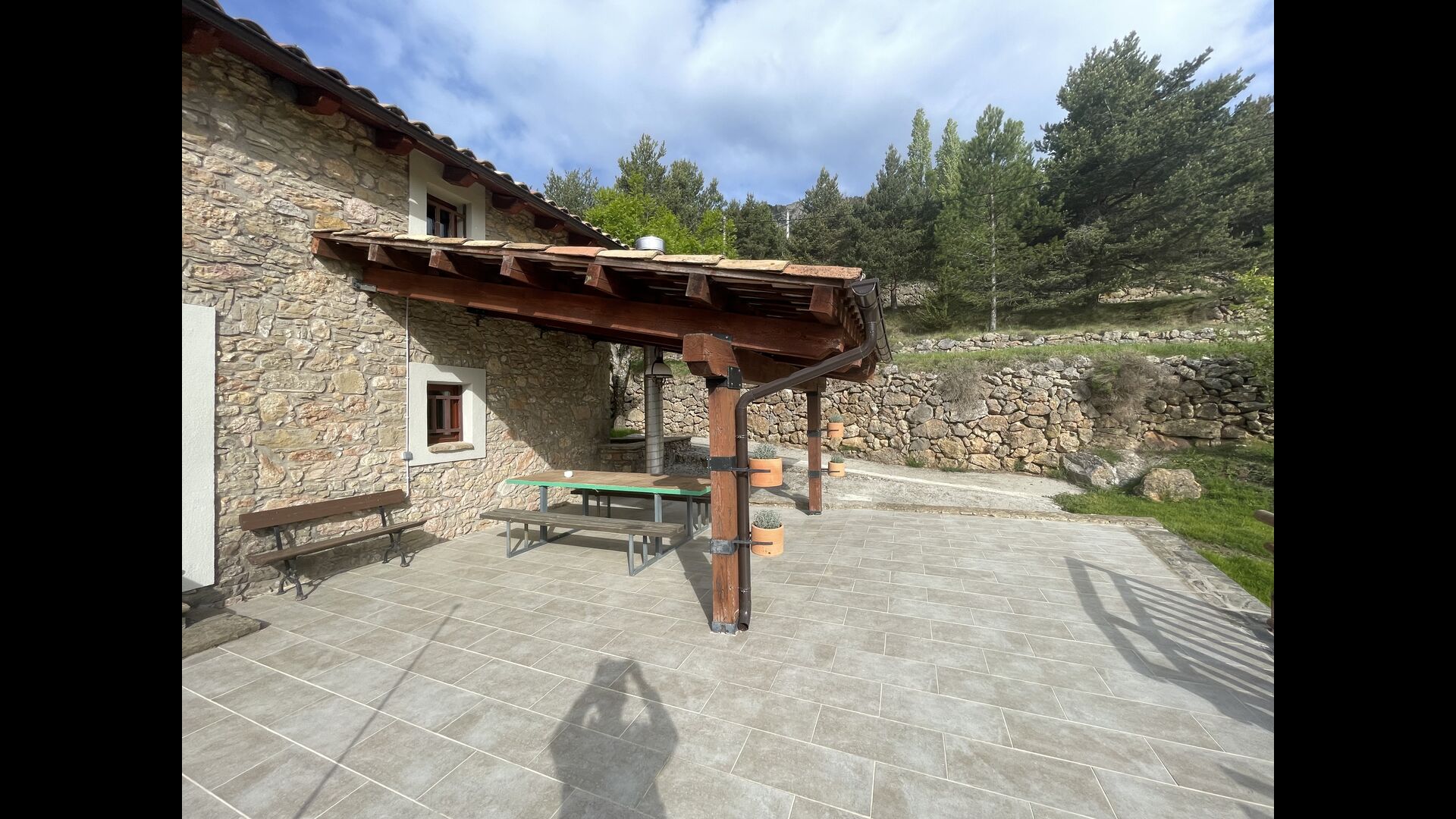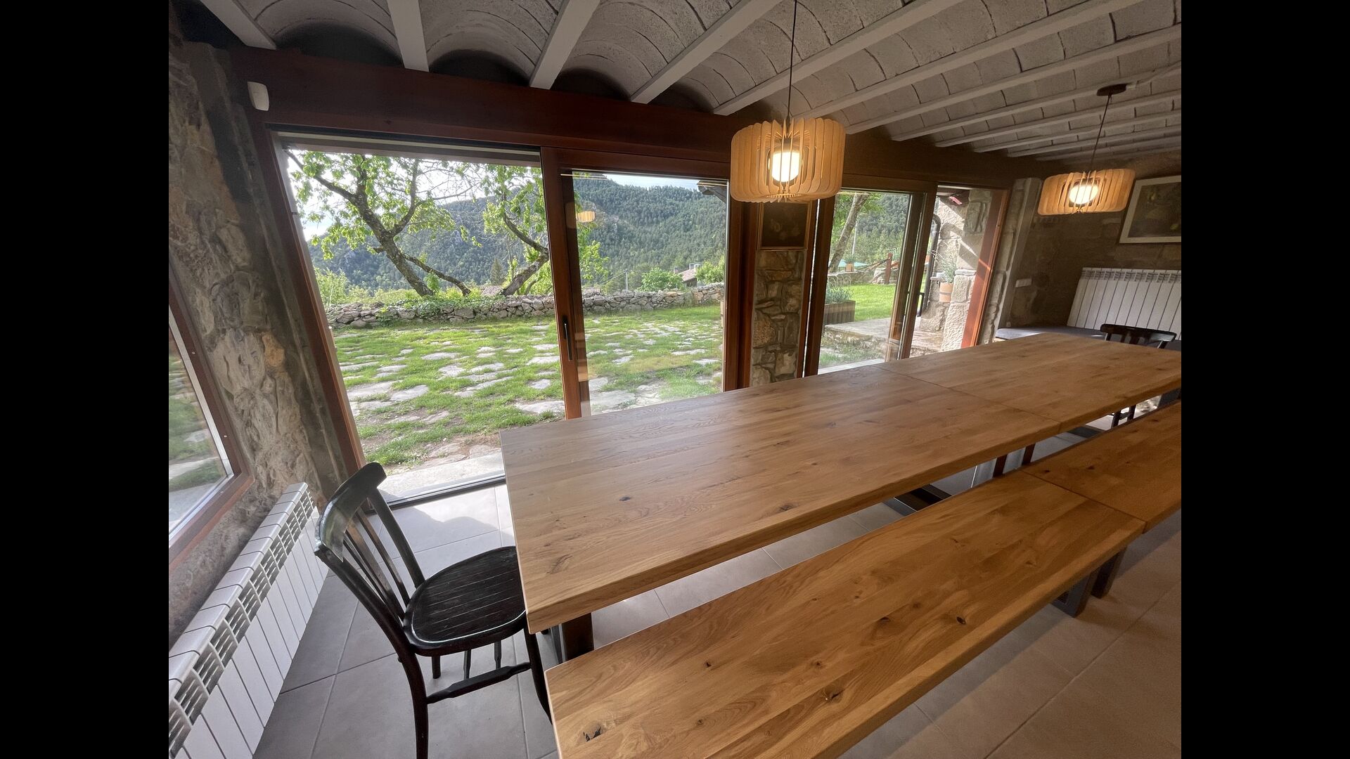 La casa también posee un maravilloso porche/patio, completo con su mesa grande (hasta 14 personas), su nevera/congelador< /strong> y una barbacoa para asar a la parrilla. Perfecto para cenar mientras el sol se pone en el sereno paisaje montañoso que se despliega ante tus ojos, tardes de juegos de mesa y largas charlas con amigos o familiares hasta altas horas de la noche con una buena botella de vino catalán.