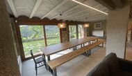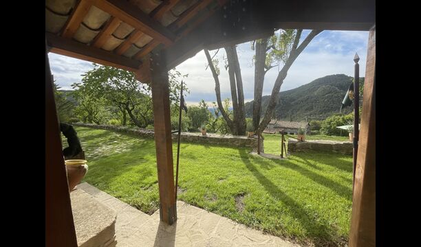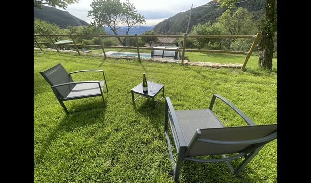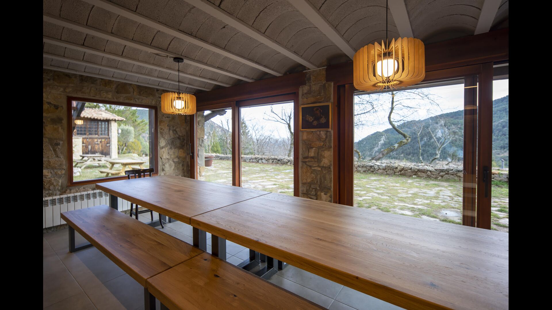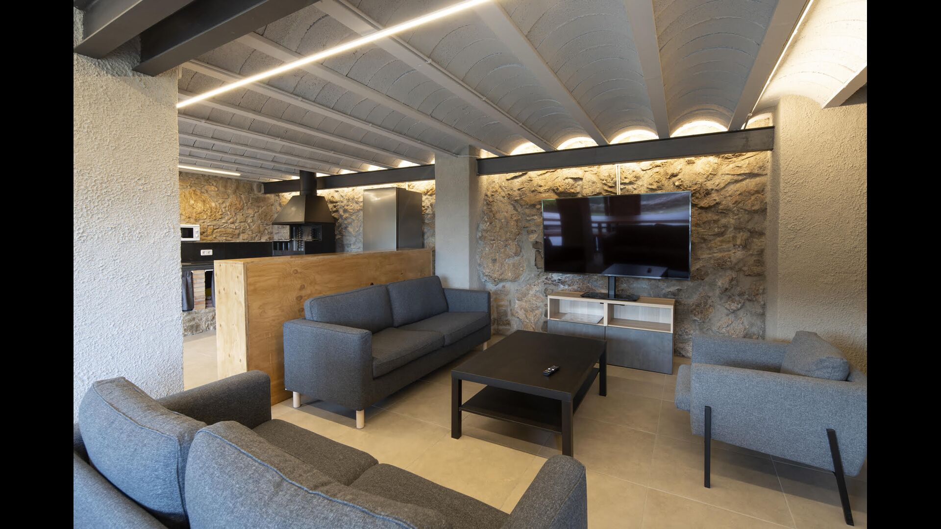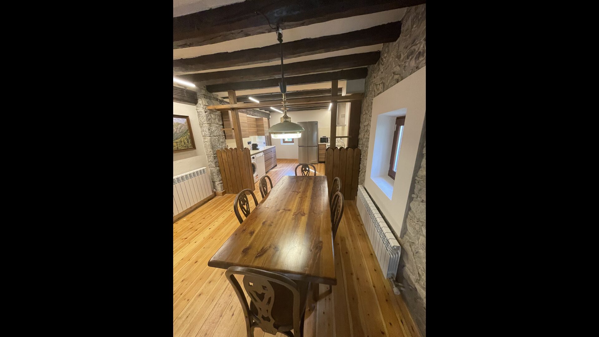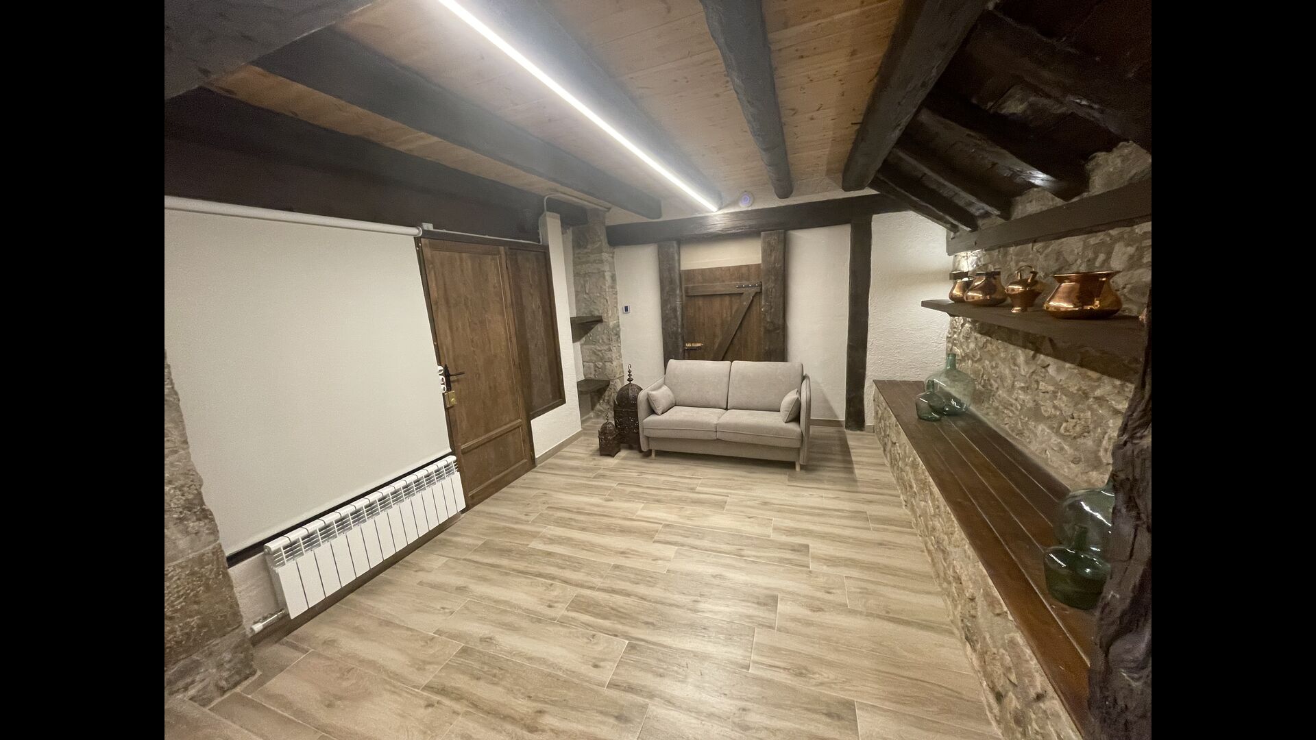 La casa también posee un maravilloso porche/patio, completo con su mesa grande (hasta 14 personas), su nevera/congelador< /strong> y una barbacoa para asar a la parrilla. Perfecto para cenar mientras el sol se pone en el sereno paisaje montañoso que se despliega ante tus ojos, tardes de juegos de mesa y largas charlas con amigos o familiares hasta altas horas de la noche con una buena botella de vino catalán.